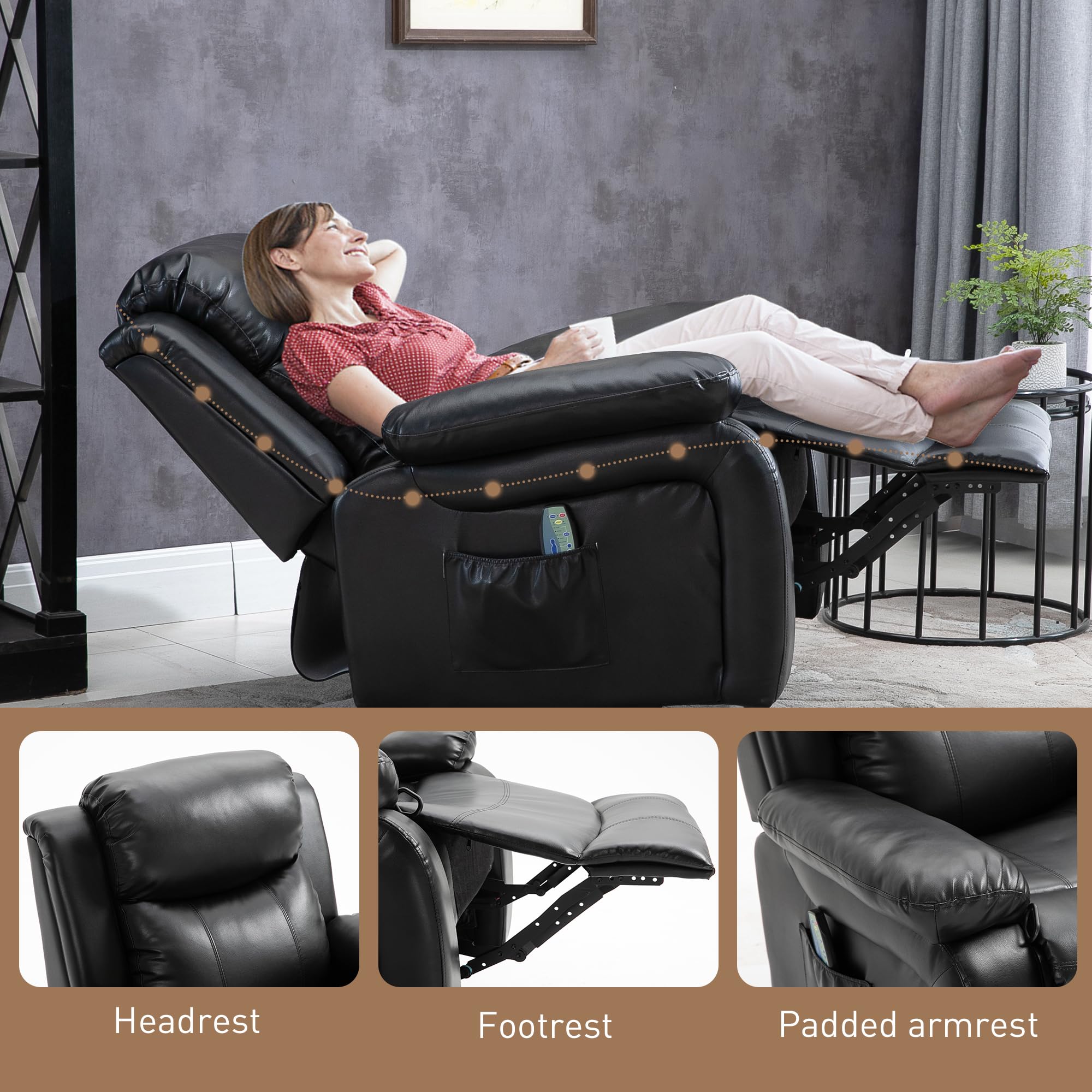 - 8 Massage Points: The leather recliner chair features eight powerful vibration motors to relax the upper/lower back, lumbar, thigh, and legs for exceptional comfort.
