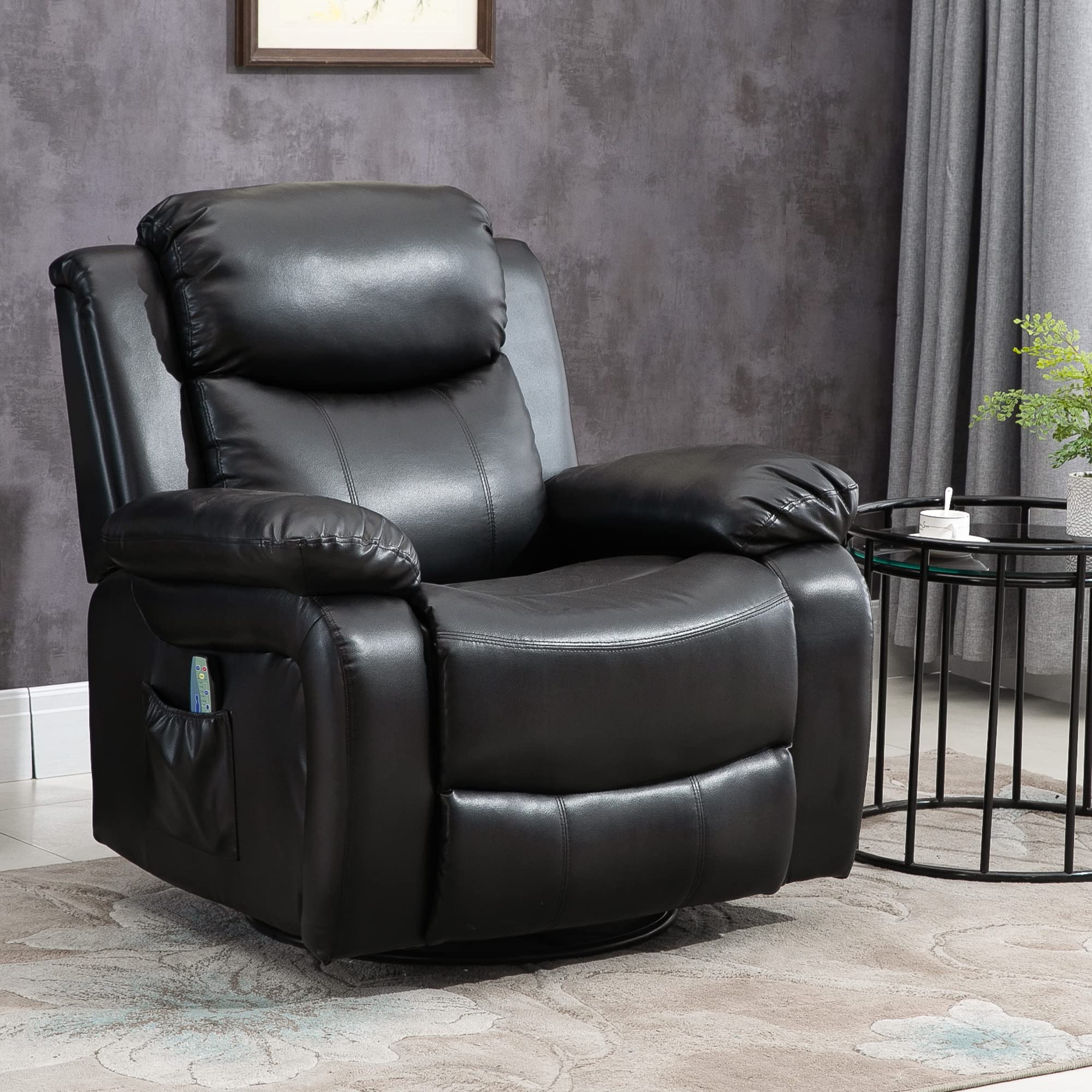 HomCom PU Leather Massage Recliner Chair, Swivel Rocker Sofa with Remote Control, Footrest, - B0BG7VCSHM