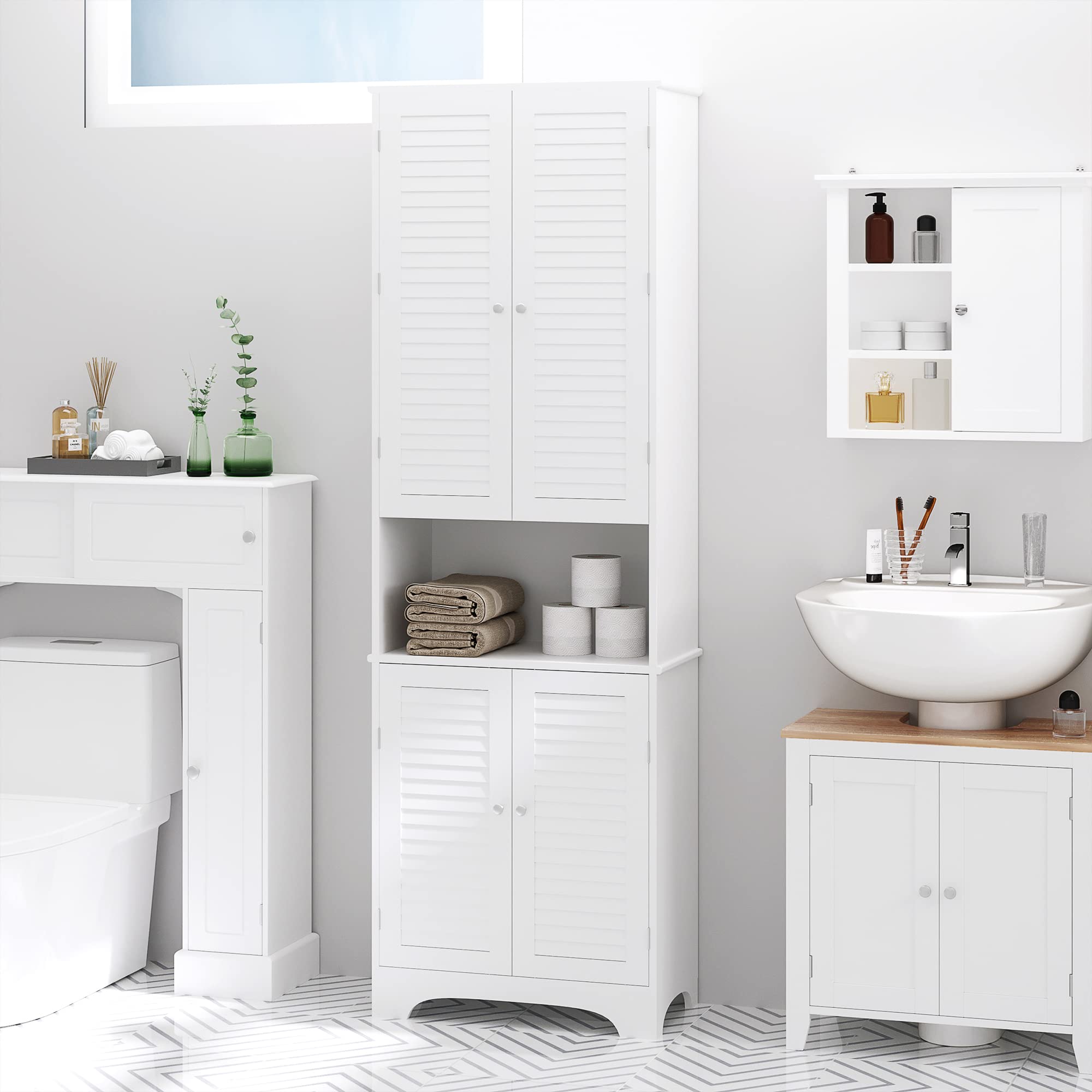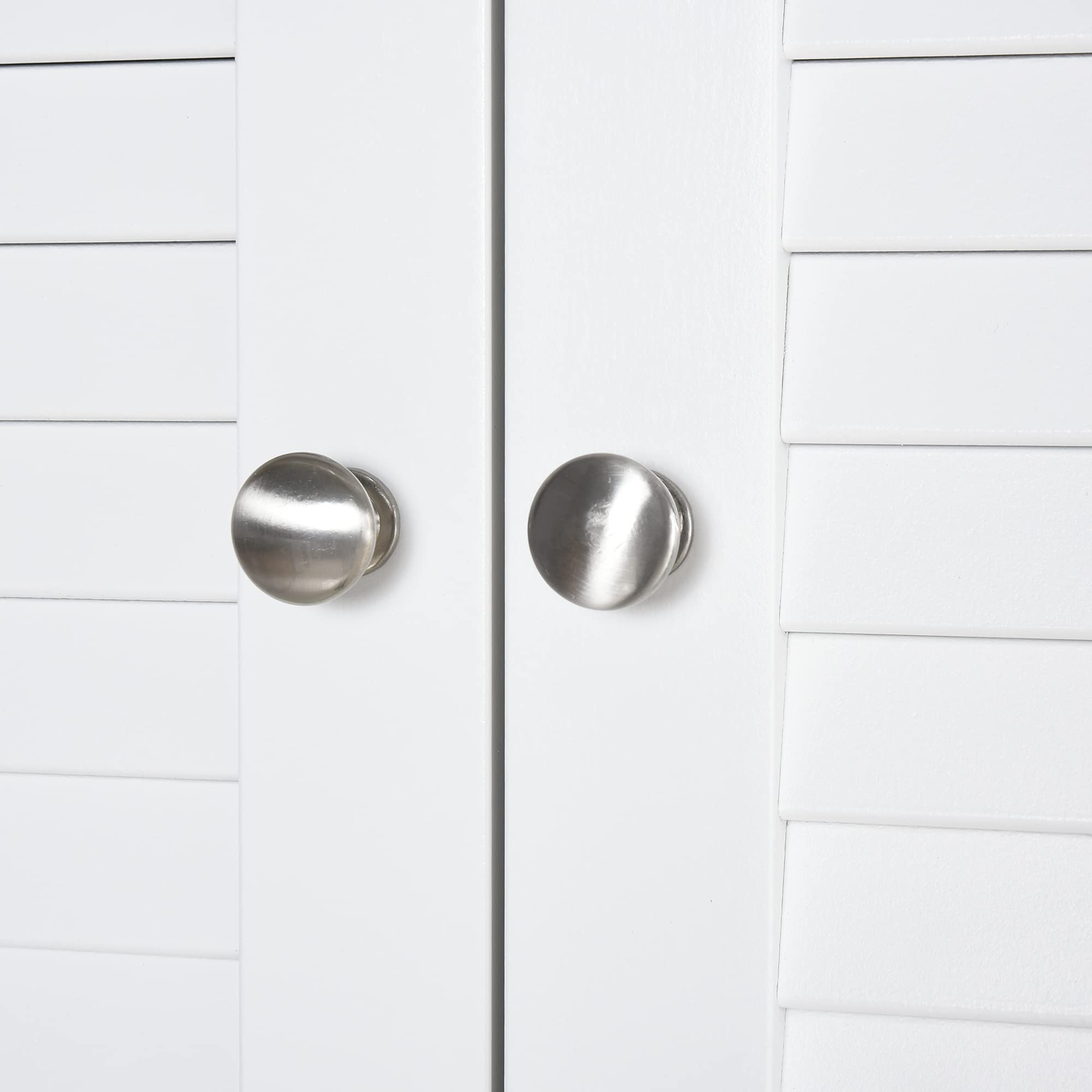 - Reliable Construction: Made of painted P2 grade MDF and particleboard with a melamine-coated surface, the bathroom cabinet is stable, natural, and withstands water splashes without damage. An anti-tilt design creates extra stability, and while shutters ensure the internal storage of the towel cabinet is extra breathable.