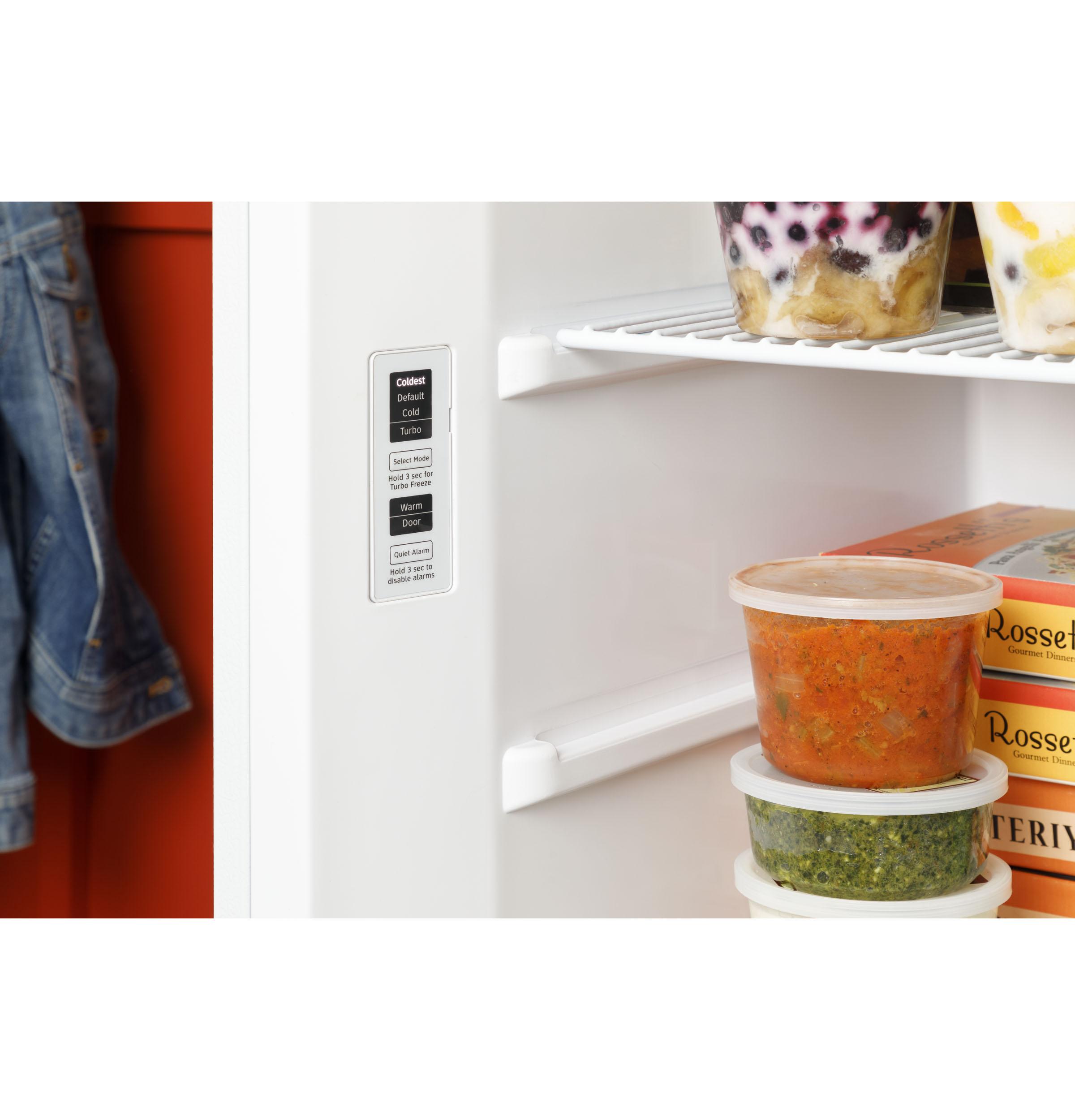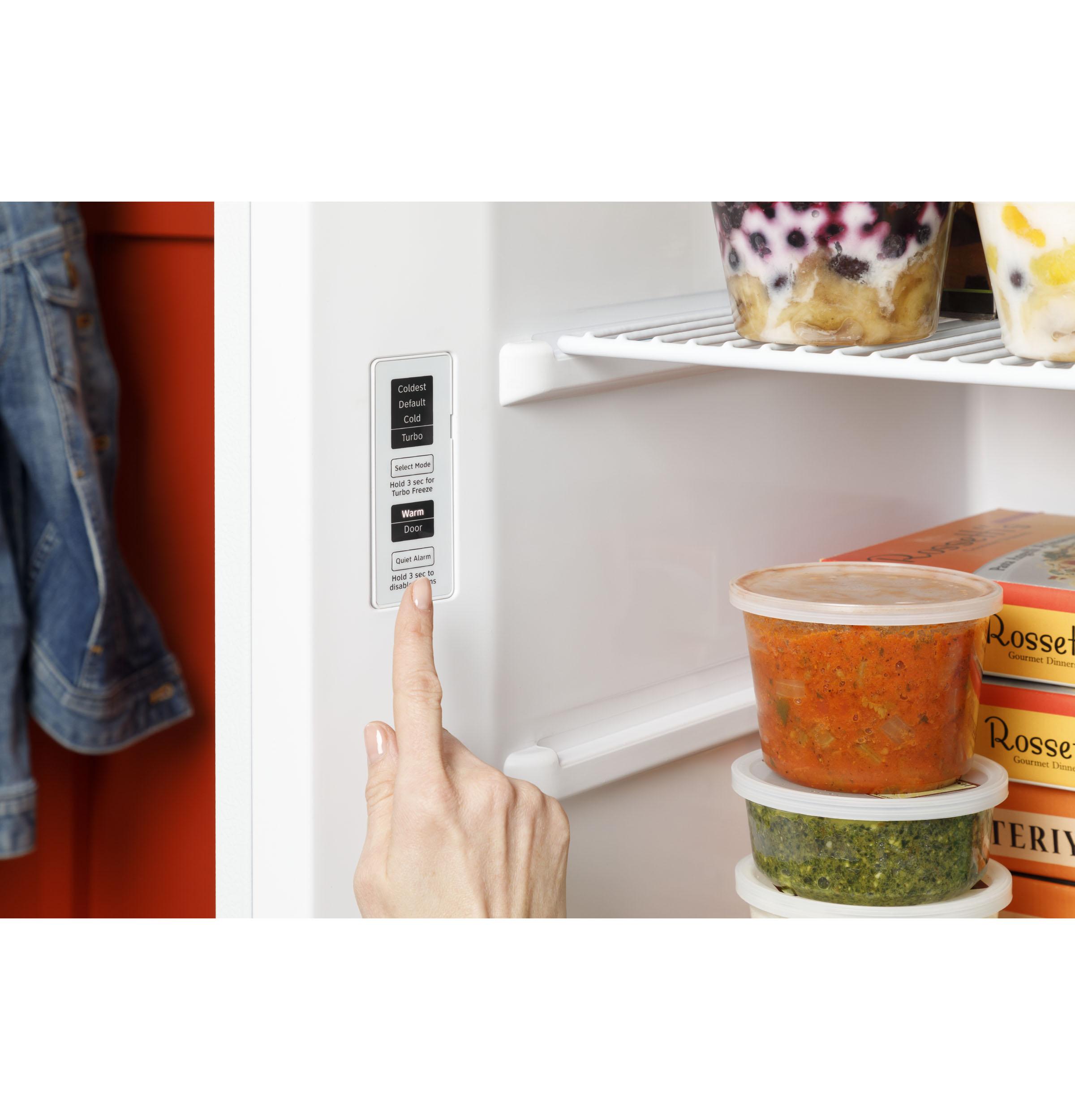 (BR)(B)Built for Durability(/B)(P)Designed & tested to withstand real life(/P)(BR)(B)Gloss Doors with Integrated Handle(/B)(P)The sleek recessed handle creates a flush minimalist aesthetic that takes up minimal space(/P)(BR)(B)LED Interior Lighting(/B)(P)Interior lighting automatically illuminates when door is open(/P)(BR)(B)Audible Temperature Alarm(/B)(P)The easy-to-hear alarm alerts you if the temperature rises(/P)(BR)(B)Open Door Alarm(/B)(P)Freezer alarm goes off when the door is left open(/P)(BR)(B)Turbo Freeze(/B)(P)The fast freeze feature restores set temperature for optimum food freshness(/P)(BR)(B)Interior Storage(/B)(P)Clear slide out storage bin(/P)(BR)(B)Door Storage Bins(/B)(P)3 full-width, adjustable door storage bins help with upright freezer organization(/P)(BR)(B)Hidden Hinges(/B)(P)Enjoy a streamlined appearance thanks to hidden hinges on the upright freezer door(/P)(BR)(B)Interior Electronic Controls(/B)(P)Convenient temperature controls make maintaining the ideal environment inside the upright freezer simple(/P)(BR)(B)Chest Freezer Storage(/B)(P)This accessible freezer makes it easy to organize and find your favorite frozen foods thanks to 3 wire shelves, which are all adjustable, and 1 glass bin cover(/P)