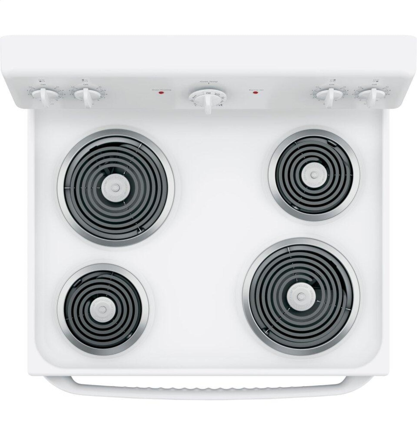 (BR)(B)Standard clean oven(/B)(P)Smooth surface makes cleaning by hand easier(/P)(BR)(B)Sensi-temp technology(/B)(P)Enjoy the same cooking power as a traditional coil with an added safety feature that meets the new UL858 Household Electric Ranges Standard for Safety(/P)(BR)(B)Porcelain upswept cooktop(/B)(P)Raised edges contain spills, while the surface is easy to wipe clean(/P)(BR)(B)Chrome drop bowls(/B)(P)Contain spills and remove for easy cleaning(/P)(BR)(B)Two oven racks(/B)(P)Feature a durable construction to help accommodate any size or type of cookware(/P)(BR)(B)Removable full-width storage drawer(/B)(P)Store cookware or kitchen accessories(/P)(BR)(B)5.0 cu. ft. oven capacity(/B)(P)Cook more dishes at once(/P)(BR)(B)Broiler pan with grid(/B)(P)Convenient broiler pan can be used when broiling for crisping and browning(/P)(BR)(B)Visor handle(/B)(P)Features a classic design and easy cleanability(/P)(BR)(B)Cooktop "On" Indicator Light(/B)(P)Know when an element is on(/P)(BR)(B)Lift-up cooktop(/B)(P)Quickly clean up spills and remove crumbs from the subtop(/P)