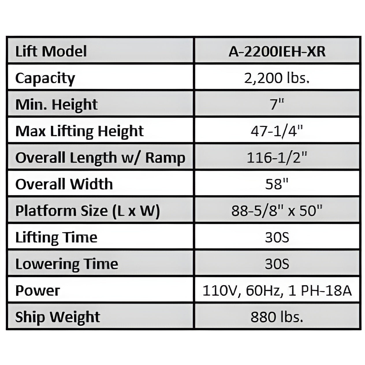 Capacity | 2,200 lbs. |