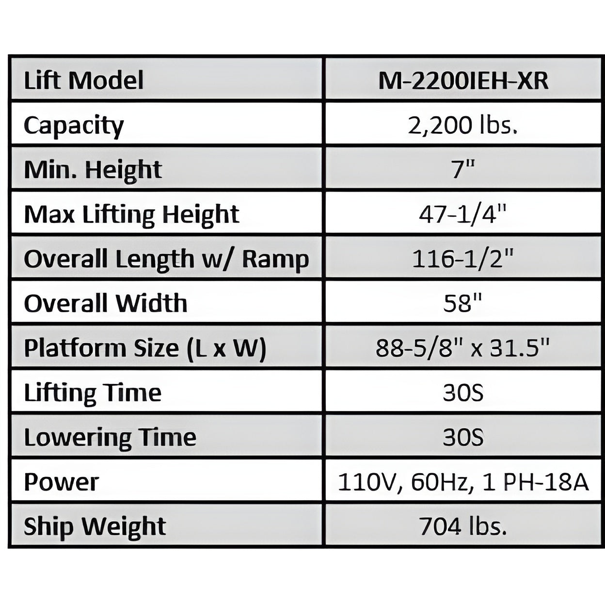 Lift Model | M-2200IEH-XR |