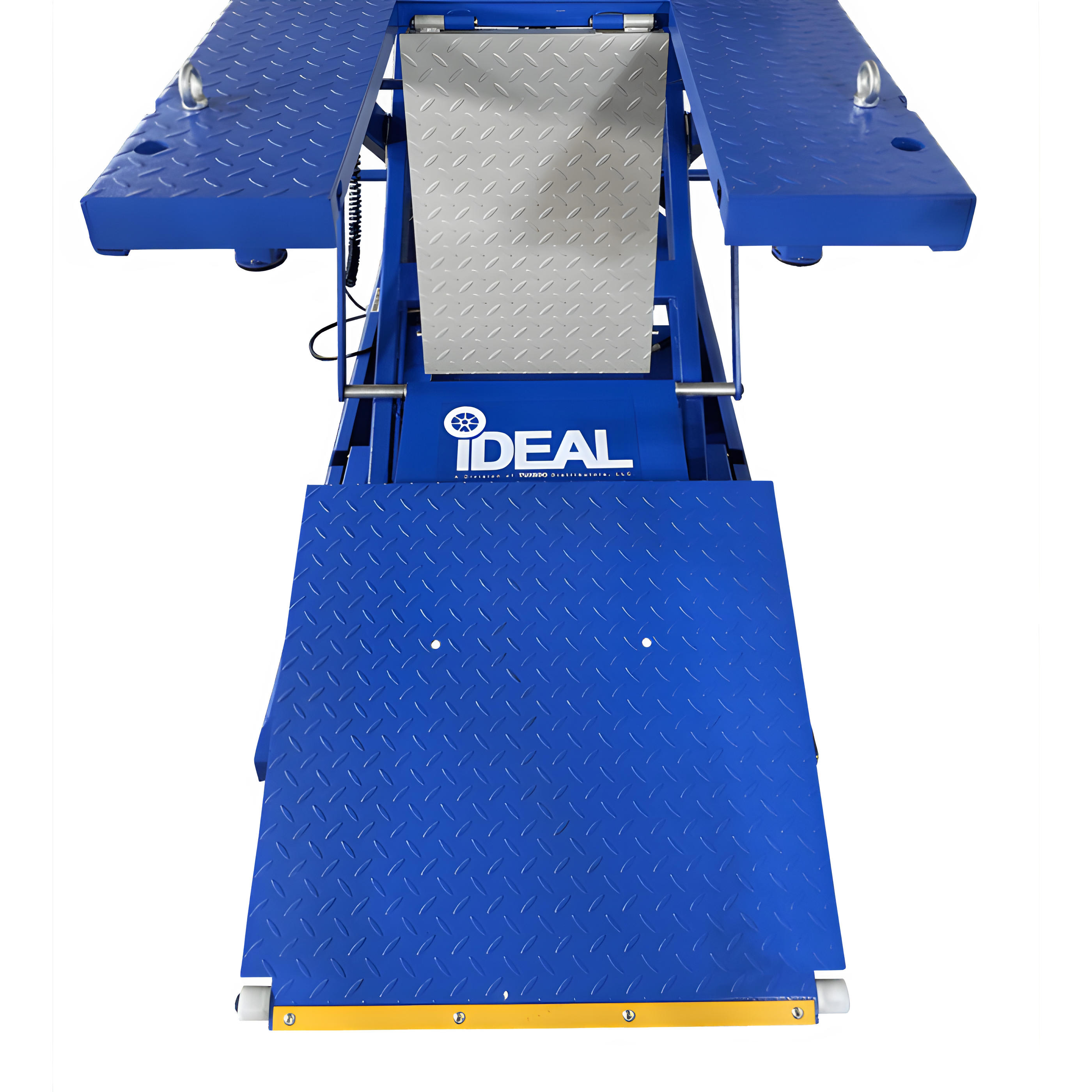The M-2200IEH-XR Motorcycle lift features our innovative retractable approach ramp system which automatically retracts the approach ramp from the work space while the lift is rising. A spring loaded drop down panel for improved rear wheel service access is integrated into the table. The drop down panel swings out of the way and quickly clips back into place when not in use. We have maintained our hand held pendant for complete operation. No need to put hands or feet in harms way when disengaging safety latches. Vise and Chock sold separately.