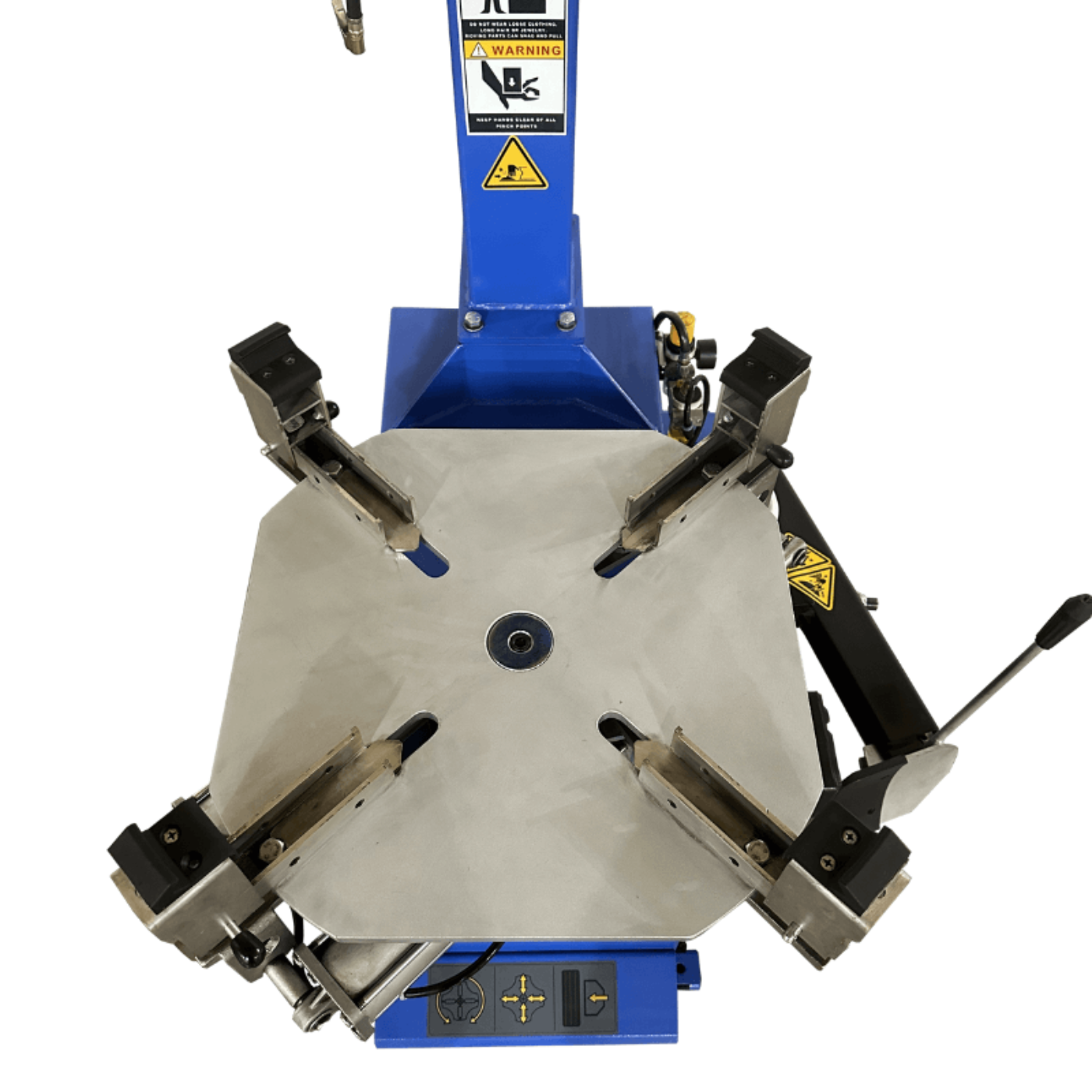 User-Friendly Setup: A swing arm design and pneumatic clamping system allow for efficient tire swaps, while protective plastic clamps help prevent rim damage during operation.