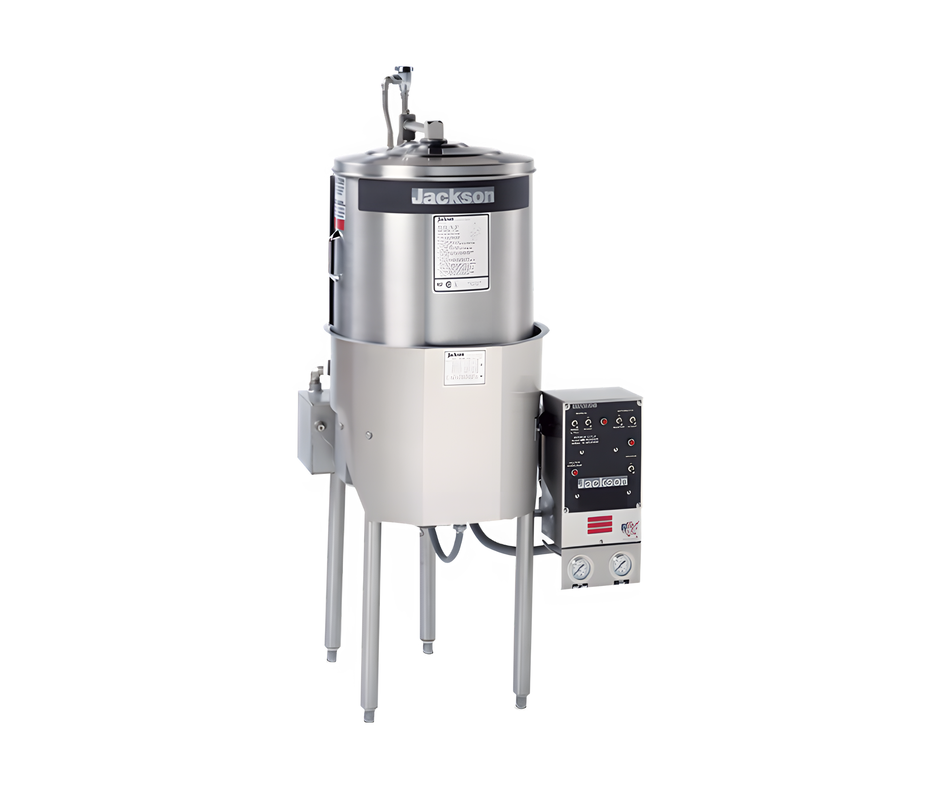 Jackson has been manufacturing the Model 10 for over 80 years. Counter-rotating wash arms and round design provide superior wash action. Standard features are an external vacuum breaker, electric wash tank heat and an incoming water pressure regulator.