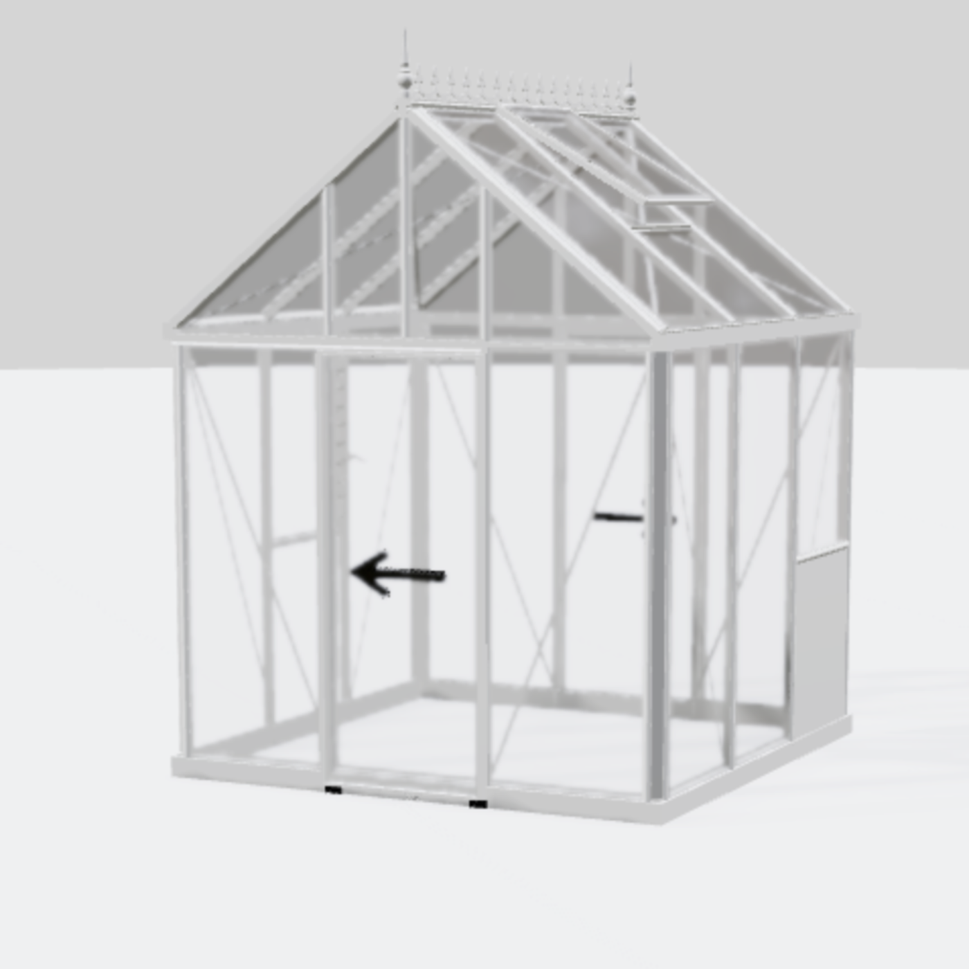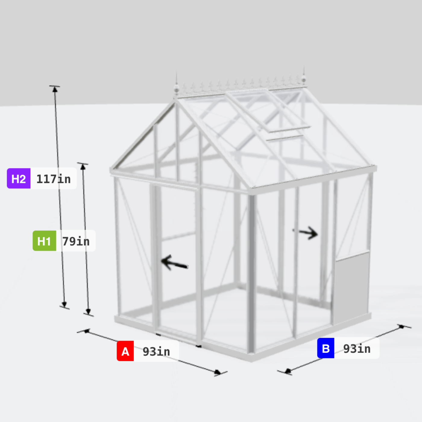 The 7ft 9in x 7ft 9in Small EOS Victorian Glass Greenhouse Kit is a unique romantic style greenhouse with Victorian elements. It fits in nicely with any garden style. Thanks to the classic shape and pointed roof of this model, you will enjoy a lot of space and light in this compact greenhouse. The roof has a dramatic 38º slope. The design features a low door threshold for easy entry.