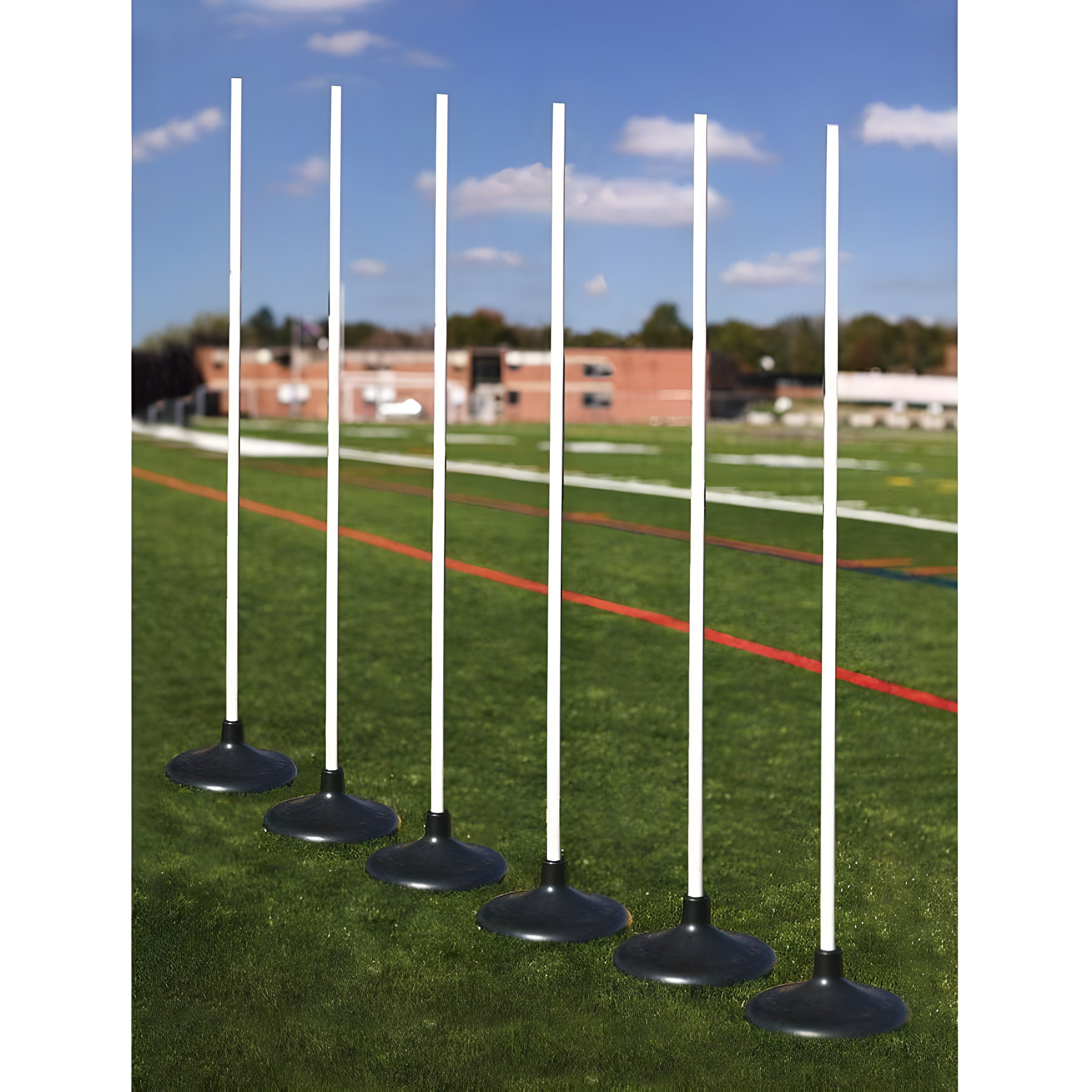 A: Jaypro Coaching Sticks are durable training tools designed to help coaches mark boundaries, set up drills, and improve player positioning. The set includes 6 sticks with a rubber base for stability.