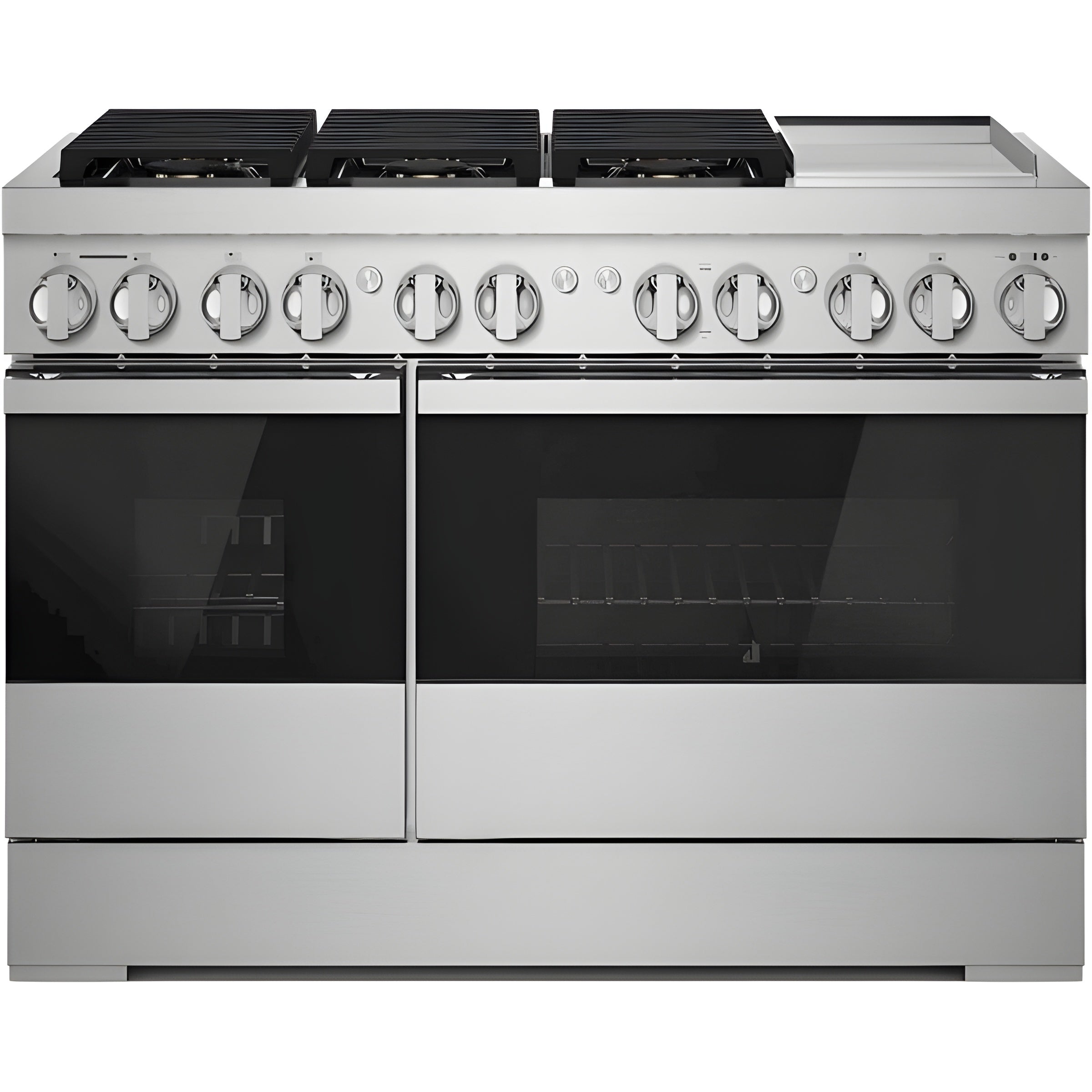 A: Its dual fuel system, dual ovens, True Convection, griddle, and striking design make it an excellent choice for high-end cooking
