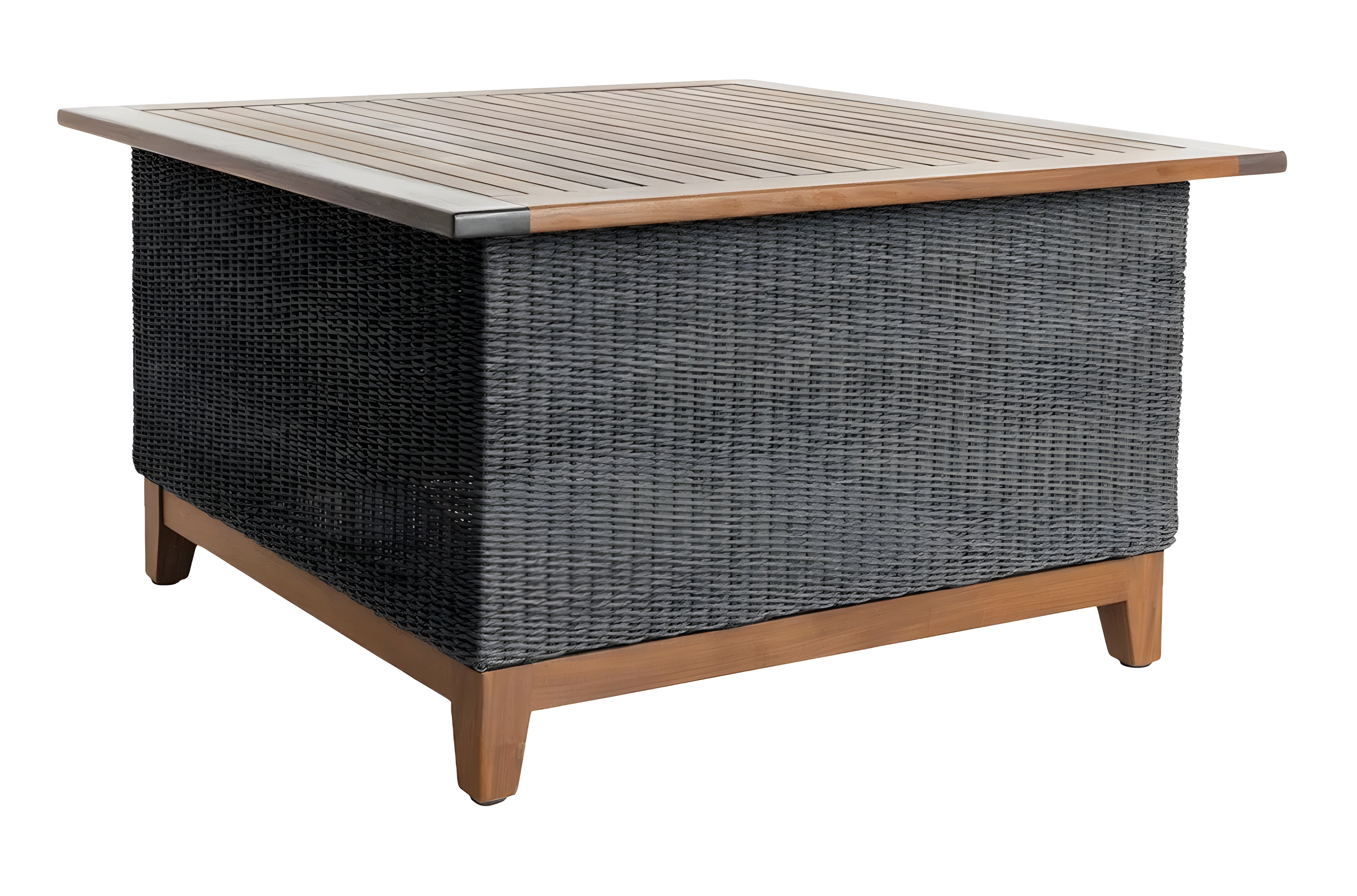 Cocktails and conversation flow around the Coral 42" Square Chat Table from Jensen Outdoor. All your guests will be talking about the stylish basketweave design of the eco-friendly Viro Fiber material, which is intricately woven on a commercial grade, powder coated aluminum frame. The chic accents of chocolate brown, 100% FSC certified Ipe timber on the tabletop, base and feet will render all of your guests speechless in admiration.