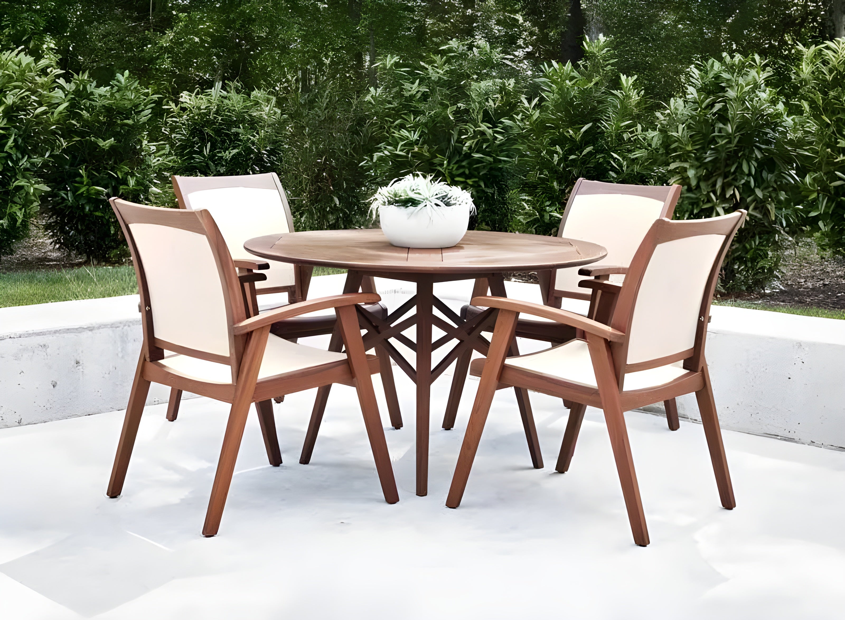 A: The Topaz Sling Arm Chair combines a modern design with comfort and durability, making it an excellent addition to any outdoor seating area.