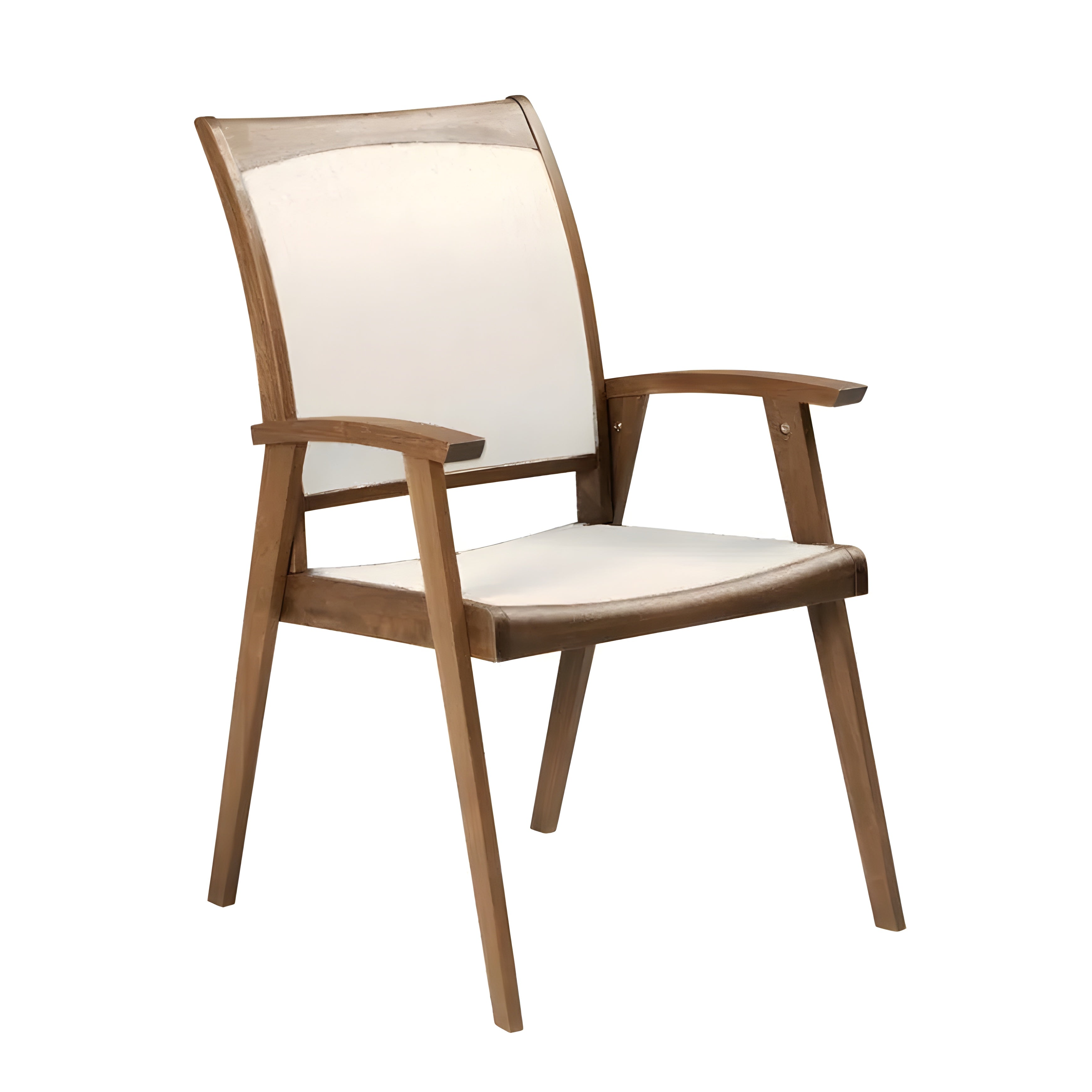 Get back in the “sling” of things with the Topaz Sling Arm Chair with Beige Sling from Jensen Outdoor. Enjoy alfresco dining any time you wish by pairing these tasteful chairs with any Ipe dining table from Jensen Outdoor. The contoured backrest and supple seat made of airy outdoor sling fabric is a breath of fresh air when supported by the clean lines of a sturdy frame, curving arms and tapered legs fashioned from glass-smooth Ipe timber.