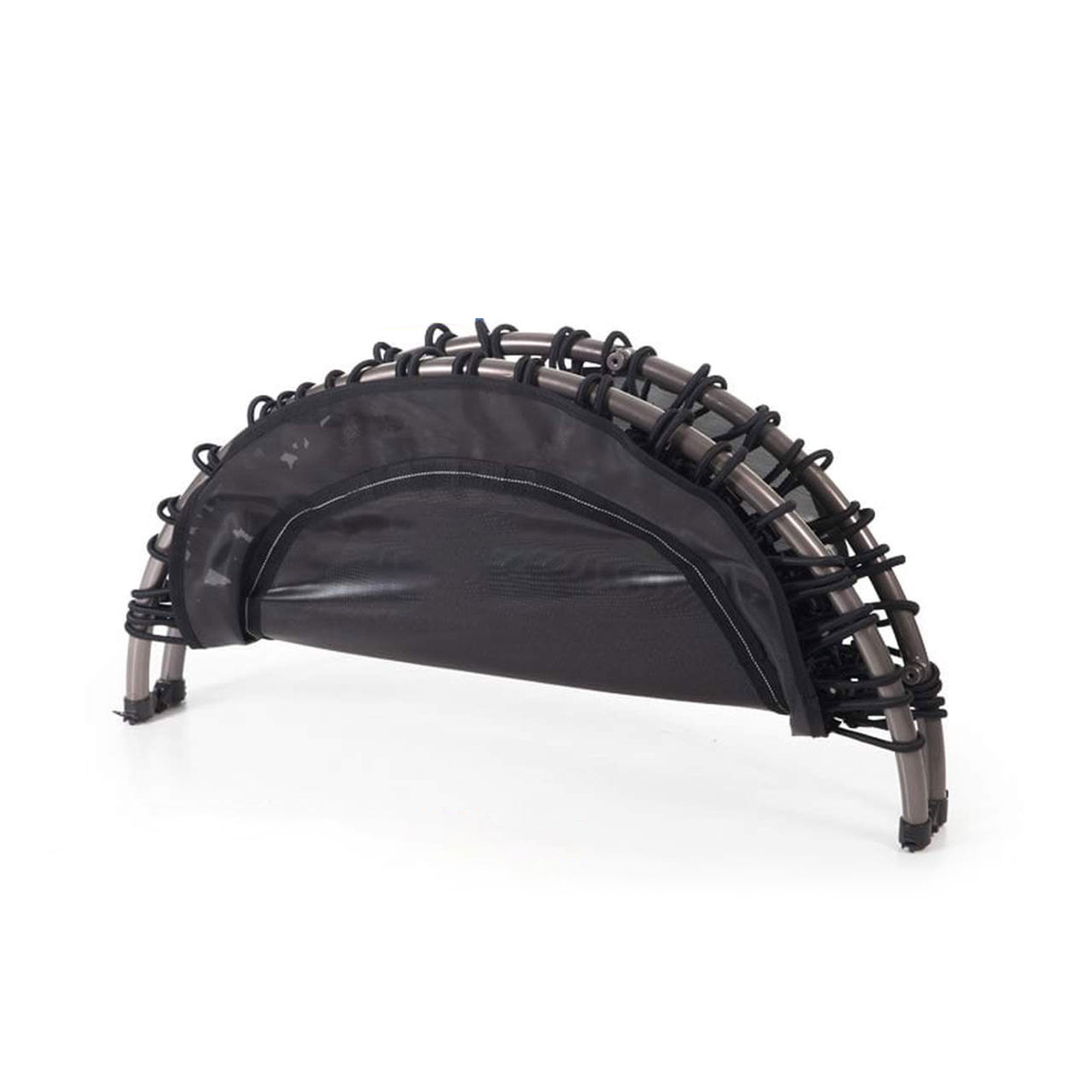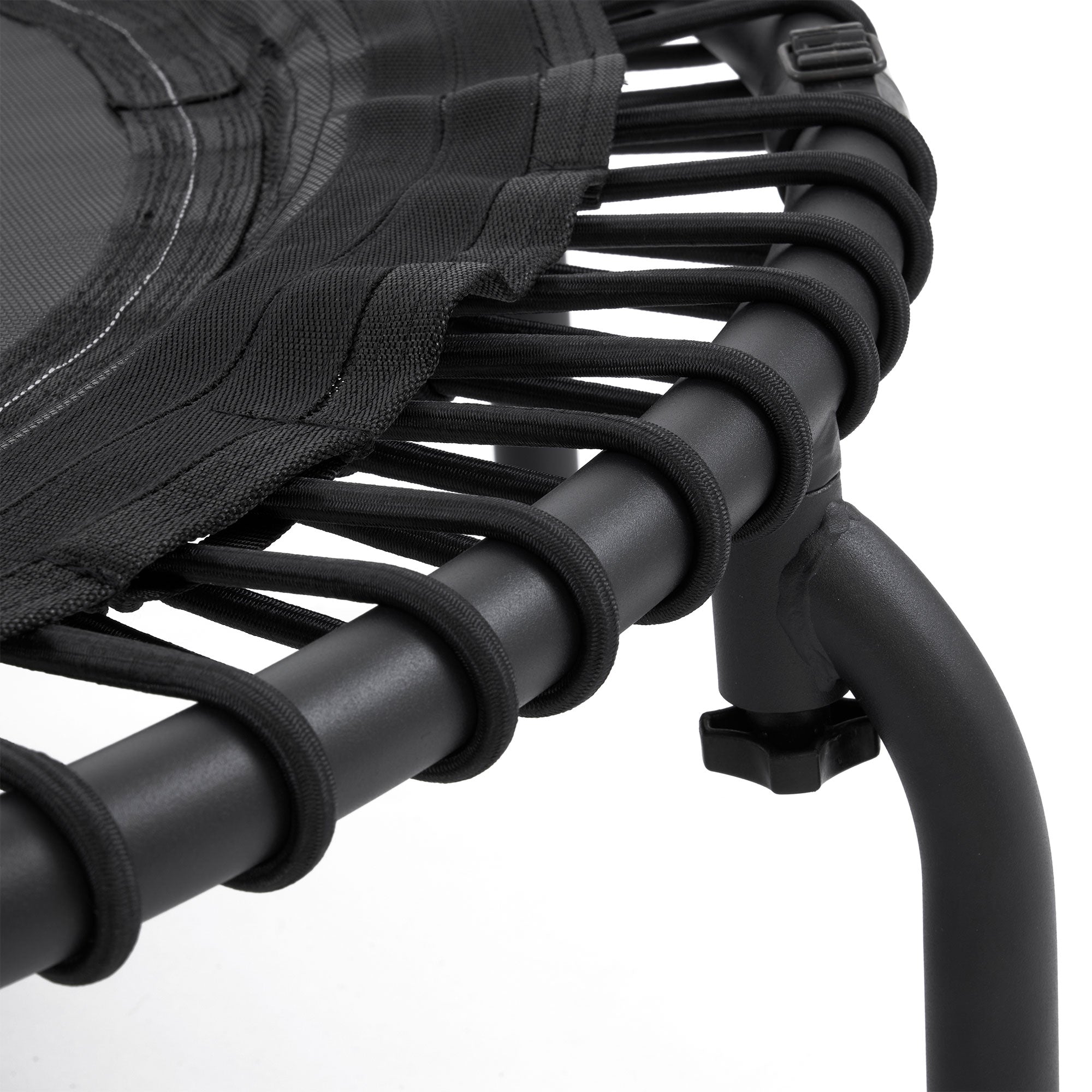 JumpSport Fitness Trampoline delivers the smoothest, deepest, and most supportive low-impact bounce. Featuring EnduroLast Elastic Cords that are uniquely formulated to stretch 2 times the resistance length. This half-fold frame design incorporates a unique locking hinge, providing a steady, no-wobble, platform when engaged. The 550f has a large, 37.5-inch jumping surface, 7 easy-to-adjust firmness settings, and lasts at least 1.6 million bounce cycles so you can exercise hard and pursue your fitness goals.