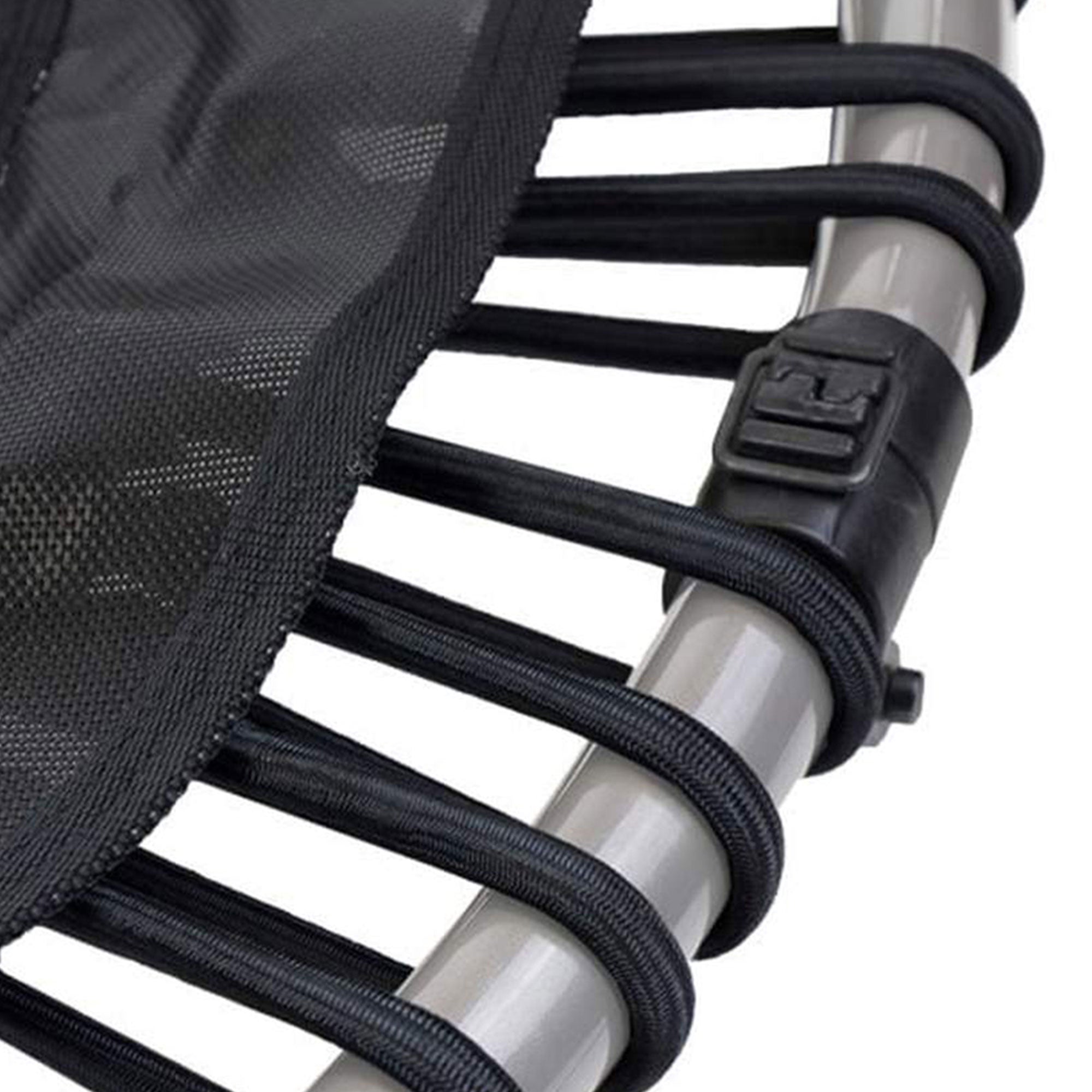 A: It features a spacious 44-inch frame, 36 premium EnduroLast elastic cords for a smooth, quiet bounce, and a foldable design for easy storage and portability.