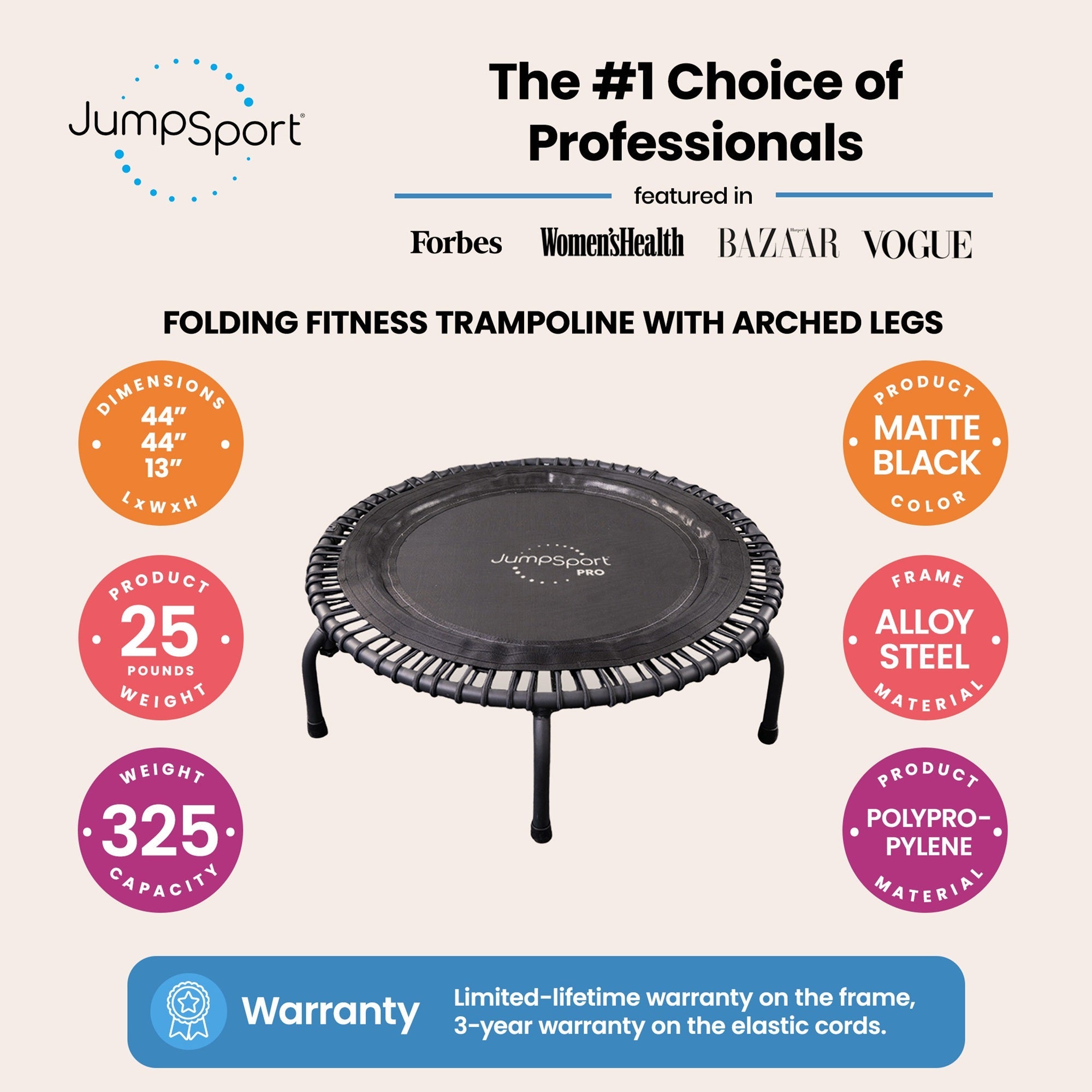 Whether you workout in a studio, apartment, office, or home gym, the JumpSport Fitness Folding Trampoline offers the variety you need to workout whenever, wherever.