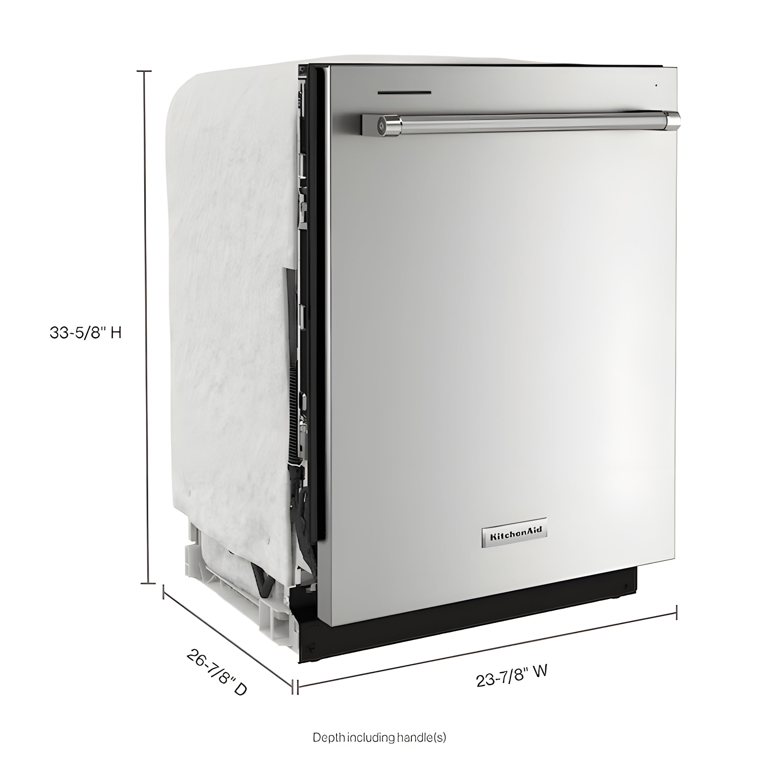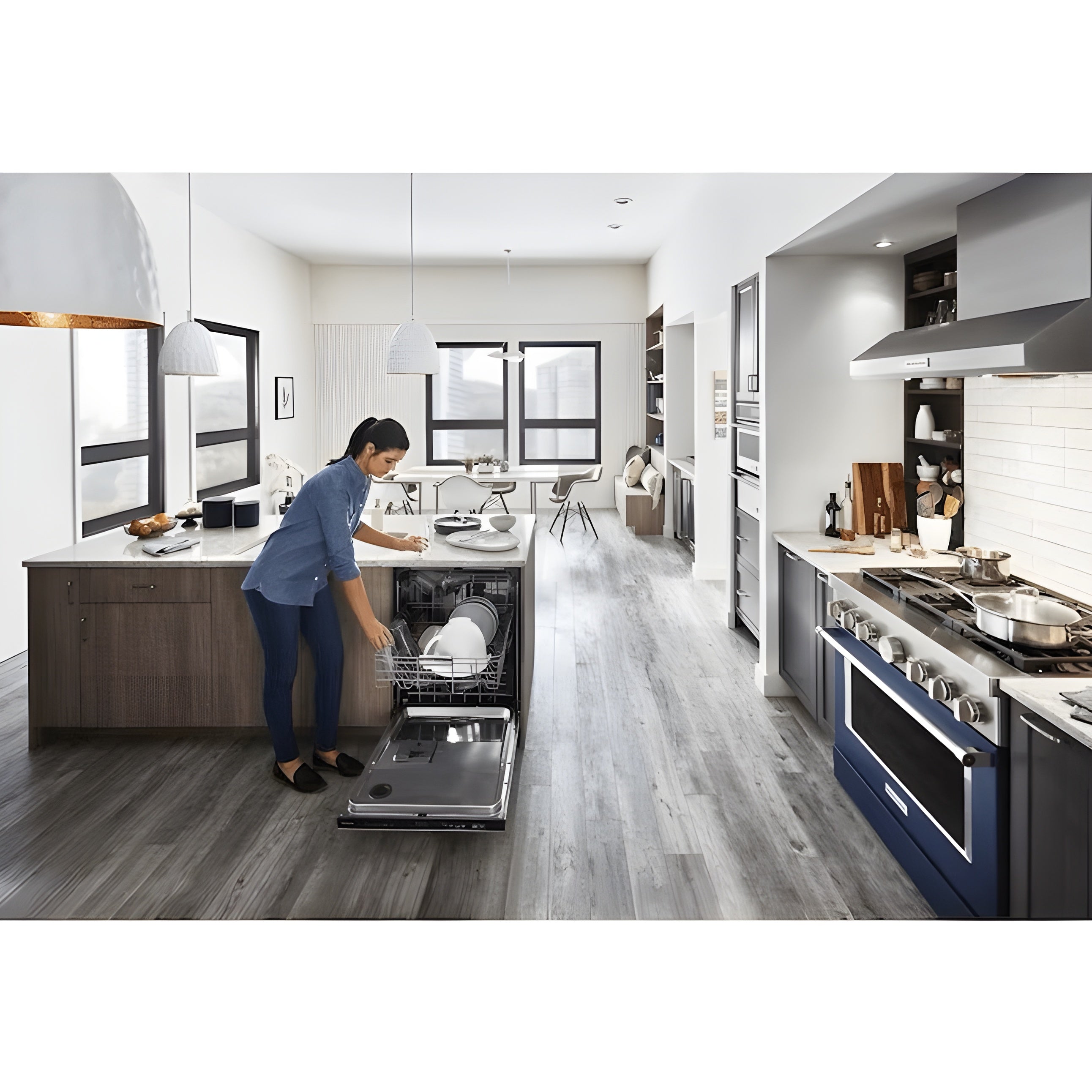 The KitchenAid FREEFLEX With Third Rack Top Control 24-in Built-In Dishwasher (KDTM404KPS) offers outstanding performance and a sleek design, perfect for busy households. Here’s why it’s a top choice: