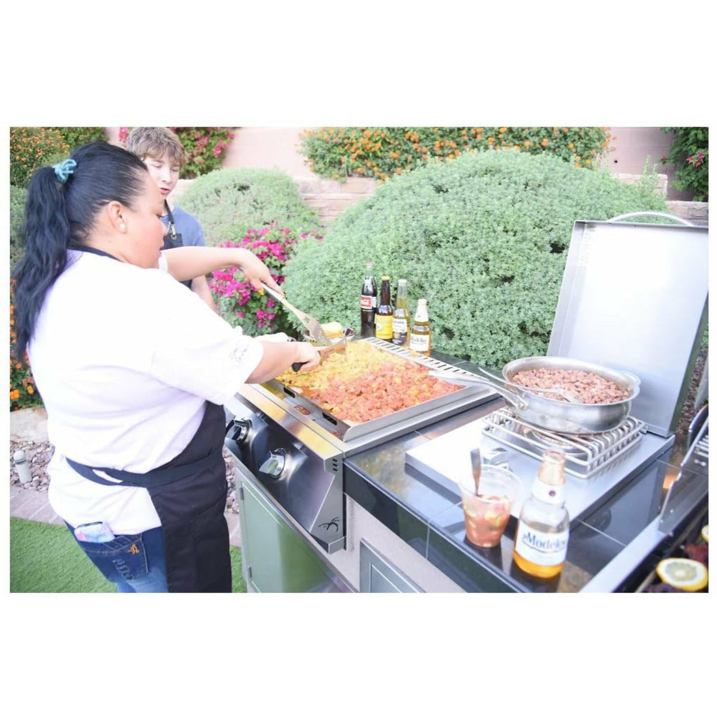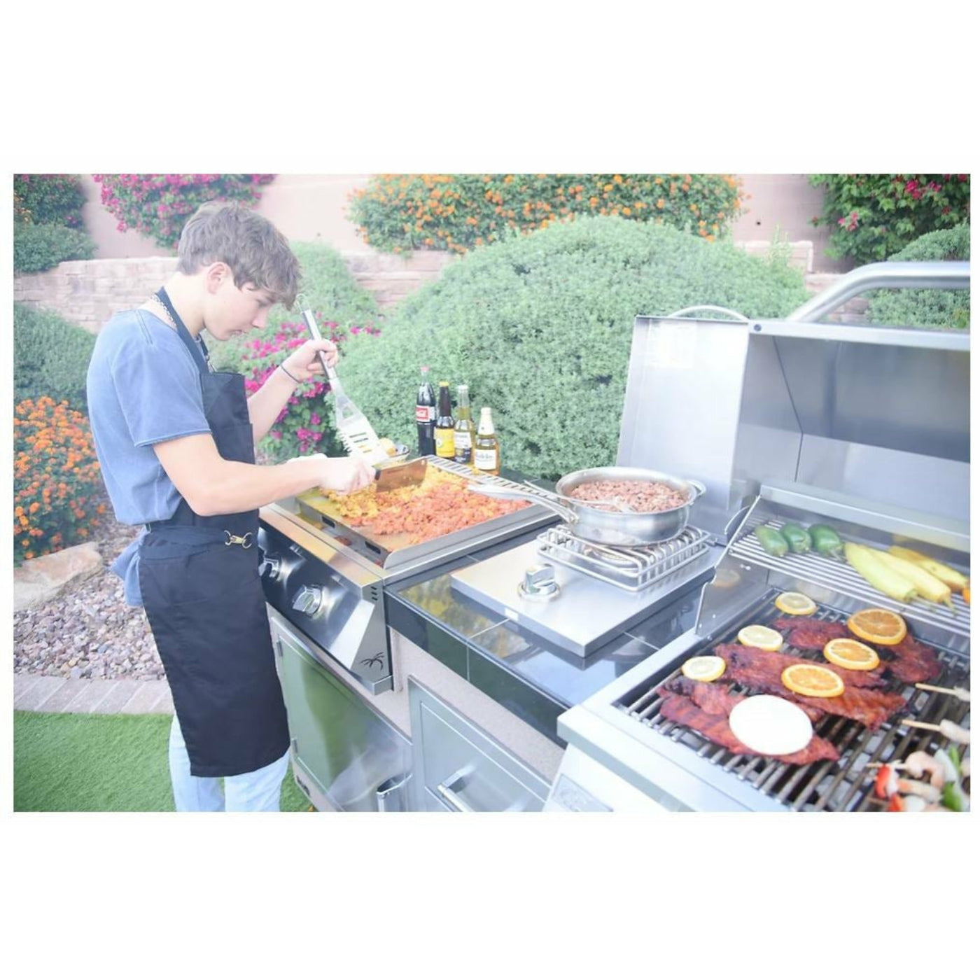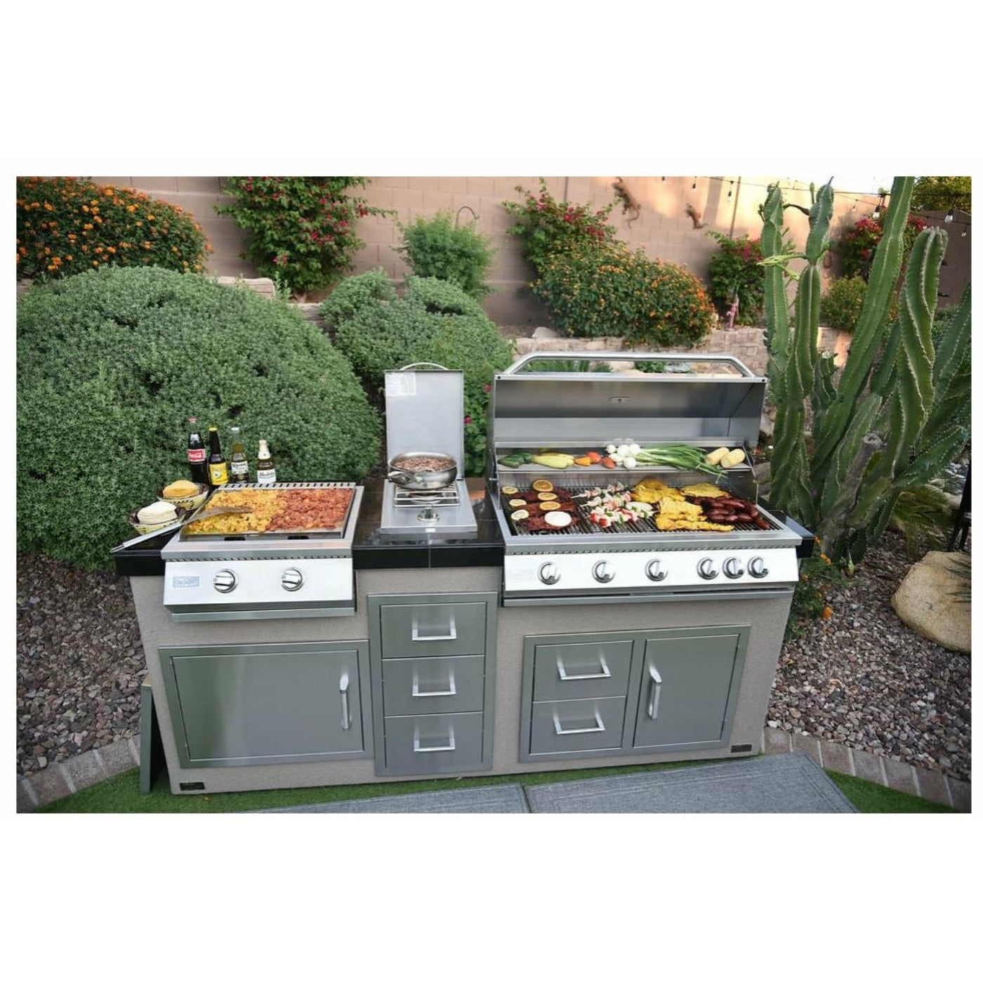 A: Its sleek design and versatile cooking surface allow you to easily prepare a variety of dishes, from pancakes to stir-fries, with the convenience of a built-in setup that blends seamlessly into your outdoor kitchen.