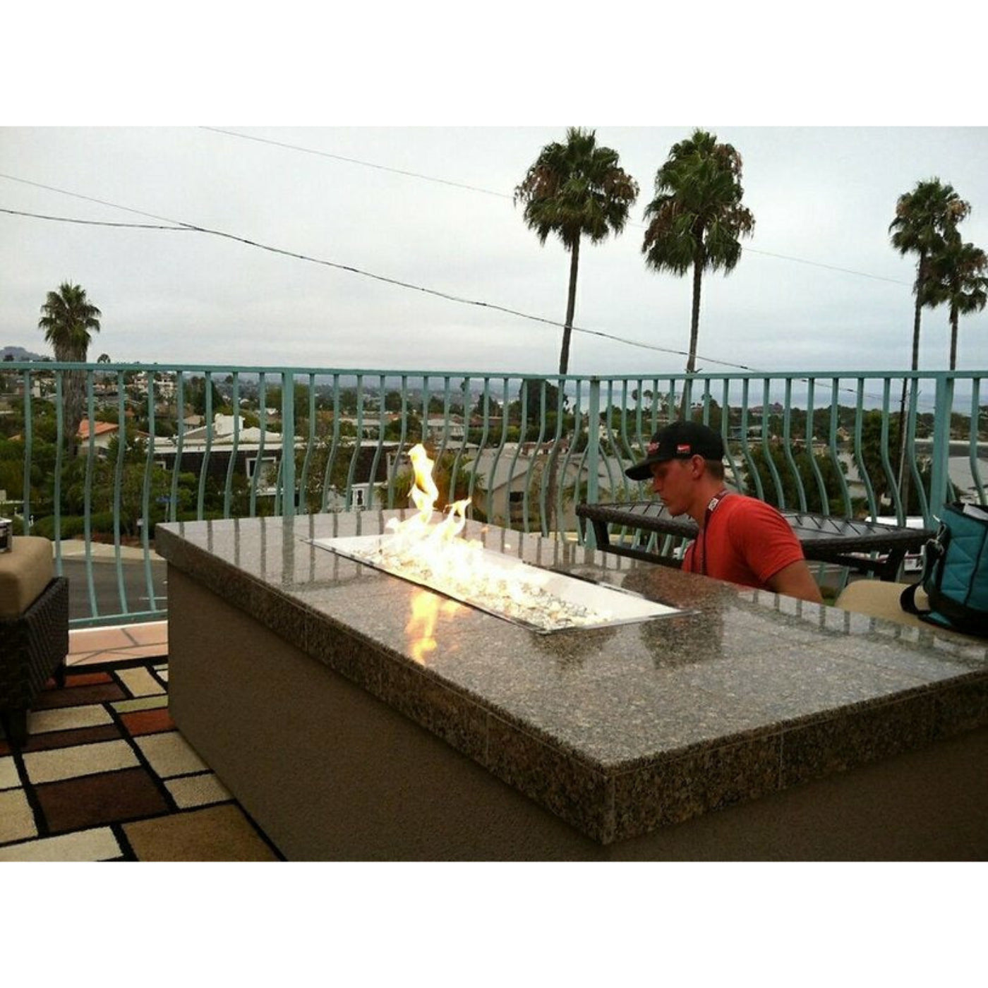 Designed to be the heart of your outdoor space, this fire pit adds warmth, ambiance, and a modern touch with sparkling fire-glass.