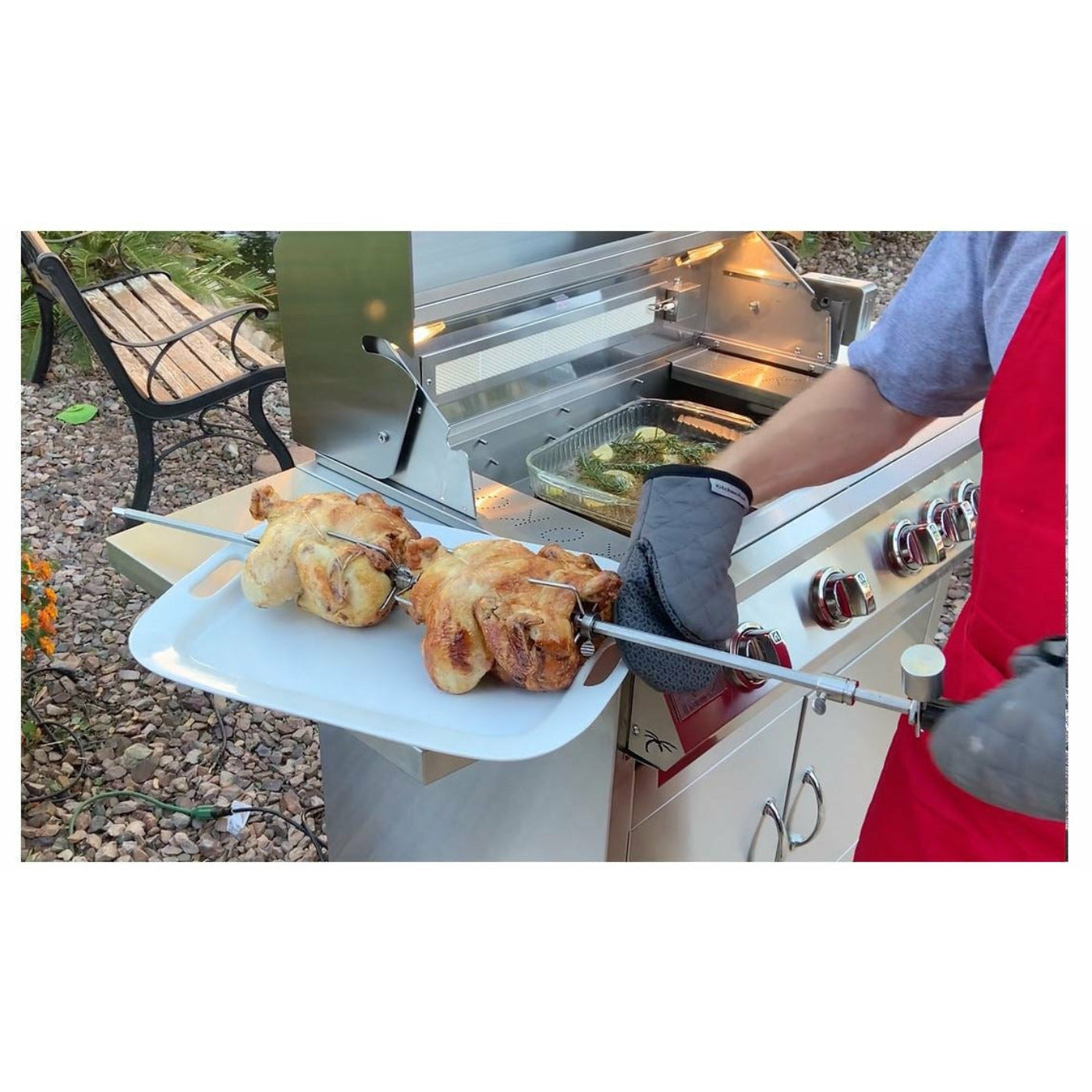 Includes rear infrared burner for rotisserie cooking, expanding your grilling options.