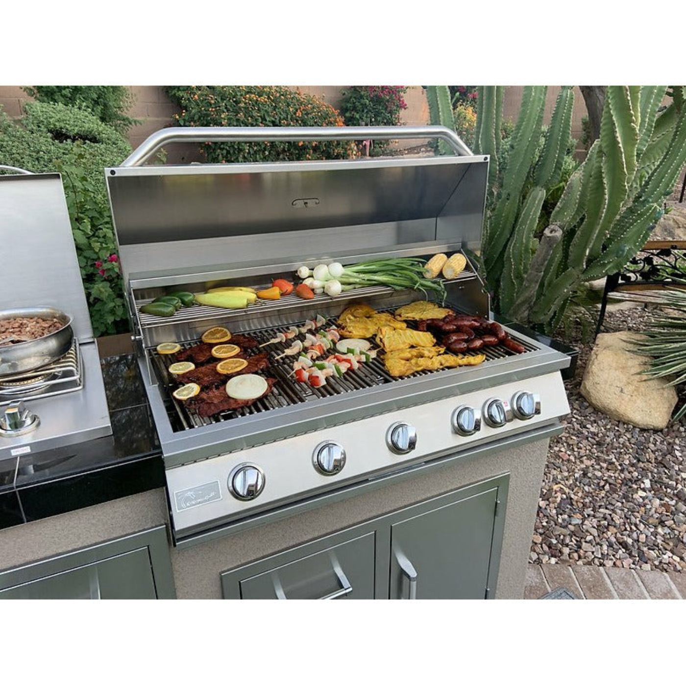 This complete KoKoMo Grills 7' 6" Long BBQ Island Package has everything an outdoor professional griller would want. You will be able to entertain your outdoor barbecue parties with the best outdoor kitchen BBQ Island and utilize all your space with the grills you would want and complete control of your barbecue tool storage area with a total of 5 enclosed storage drawers where you can store BBQ tools, cleaning supplies, plates and silverware.