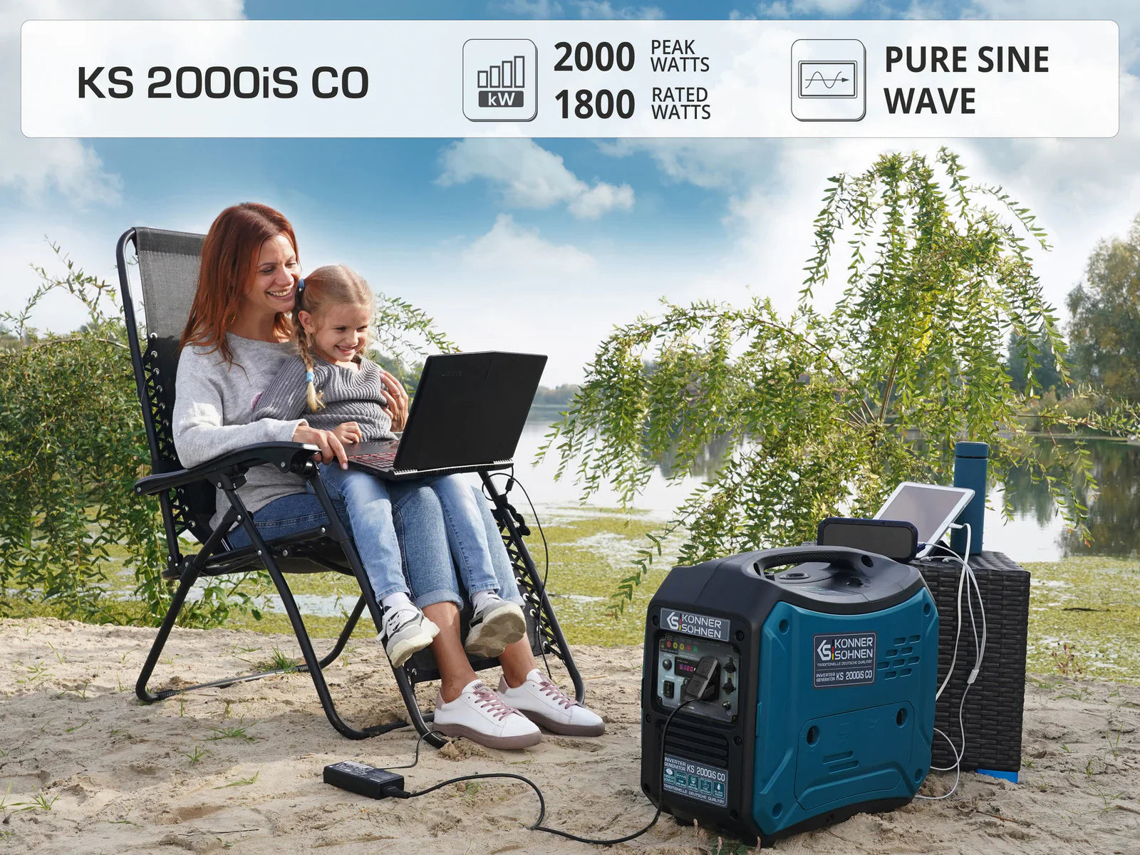 A: The Konner Sohnen KS 2000iS CO is a gas-powered 1800W/2000W inverter generator that features a CO sensor and pure sine wave technology, making it ideal for safely powering small appliances and electronics.