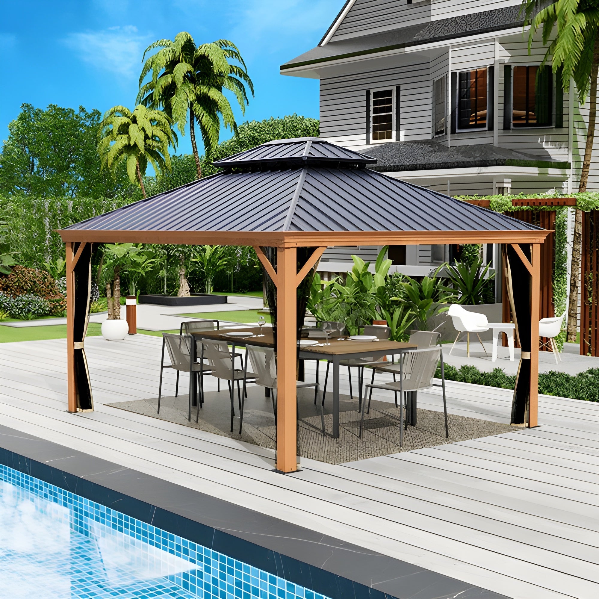 Elevate your outdoor living with the Kozyard Apollo 12' x 14' Hardtop Gazebo, expertly crafted to offer both durability and elegance. This gazebo is designed to enhance your patio, backyard, or deck, creating a stylish and functional space for relaxation and gatherings.