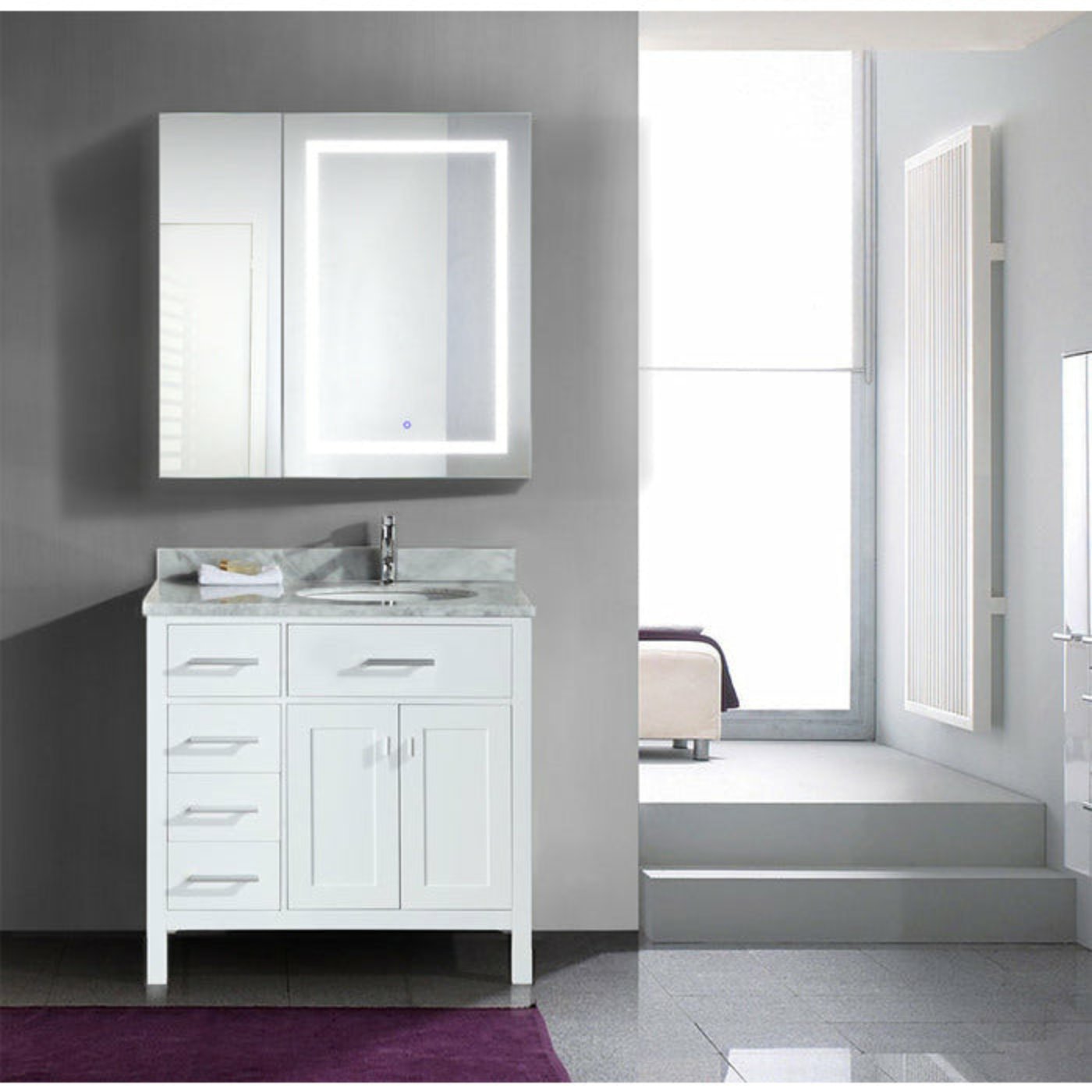 Our LED Medicine Cabinet is a symphony of design elements. We’ve combined our most powerful lighting advancements to create a beautiful storage solution—an expression of luxury and function for your bath. From a distance, the LED border produces a striking, modern glow. Up close, enjoy unparalleled light dispersion on the face and body. Effortless to use, a revolutionary touch icon is integrated into the mirror face for seamless on/off toggling and dimming with memory functionality. Our LED Medicine Cabinet is a symphony of design elements.