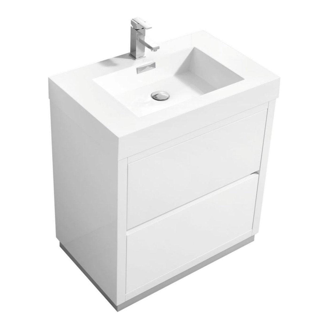 The De Lusso Vanity by KubeBath is a minimalist piece you’ll cherish for years. Ingenious, this Vanity has two push-open drawers, perfect for storing bathroom essentials, and features a white reinforced Acrylic Countertop with integrated Sinks, crisp clean lines, and pre-drilled for single hole Faucets. An easy-to-care-for item that will add a modern touch to your Bathroom for a refreshing sleek look.