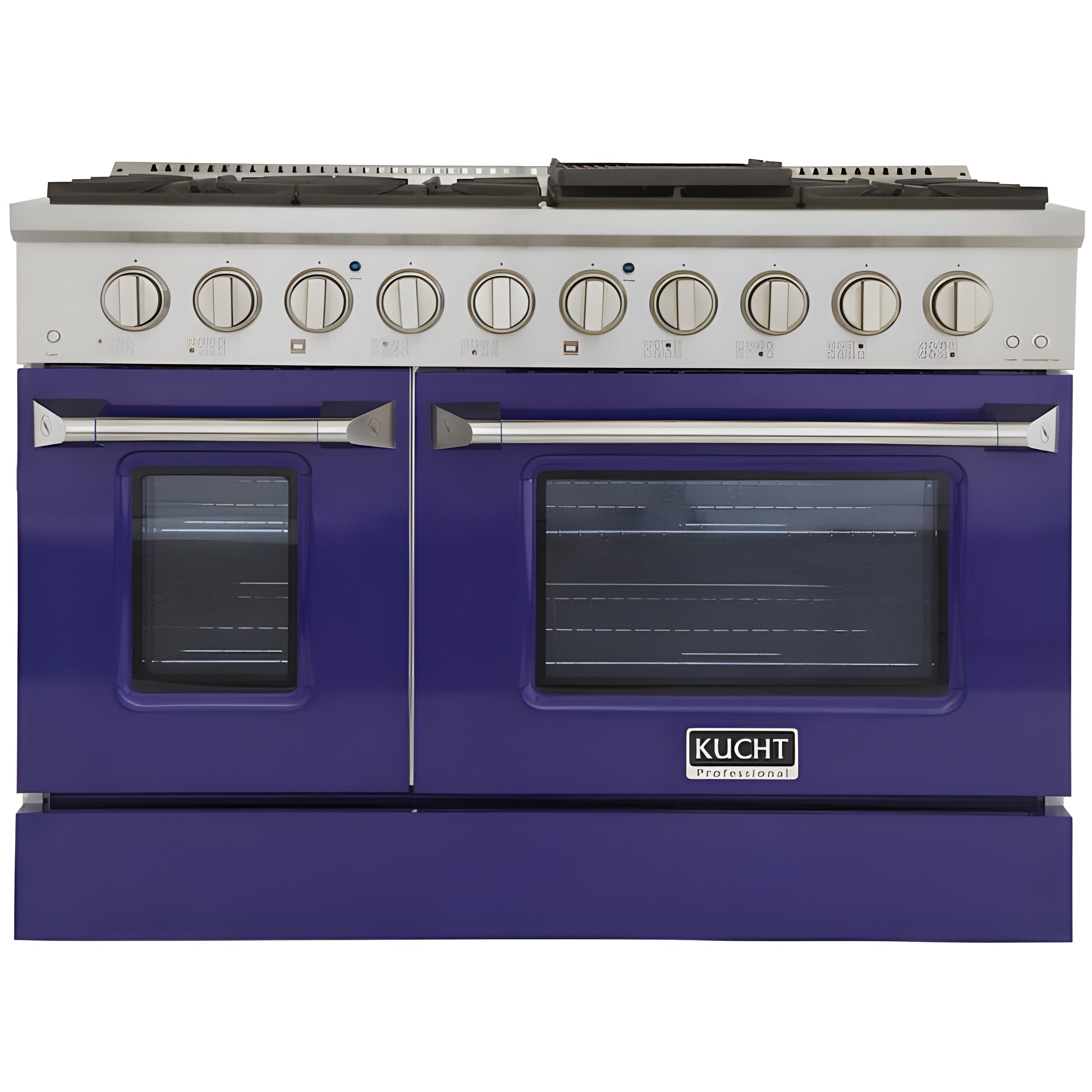 Kucht Professional 48 in. 6.7 cu ft. Natural Gas Range with Blue Door and Silver Knobs - KNG481-B