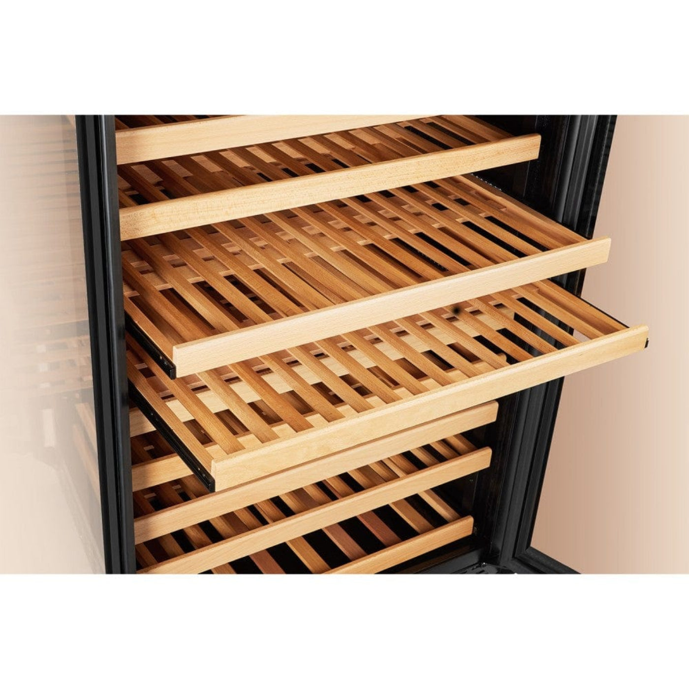 WOODEN SHELVES - 34 wooden beech shelves can accommodate up to 289 standard 750ml Bordeaux bottles. If you prefer to store Burgundy, Pinot Noir, or Champagne, simply remove 1-2 shelves. Storage capacity will be reduced for larger bottles.