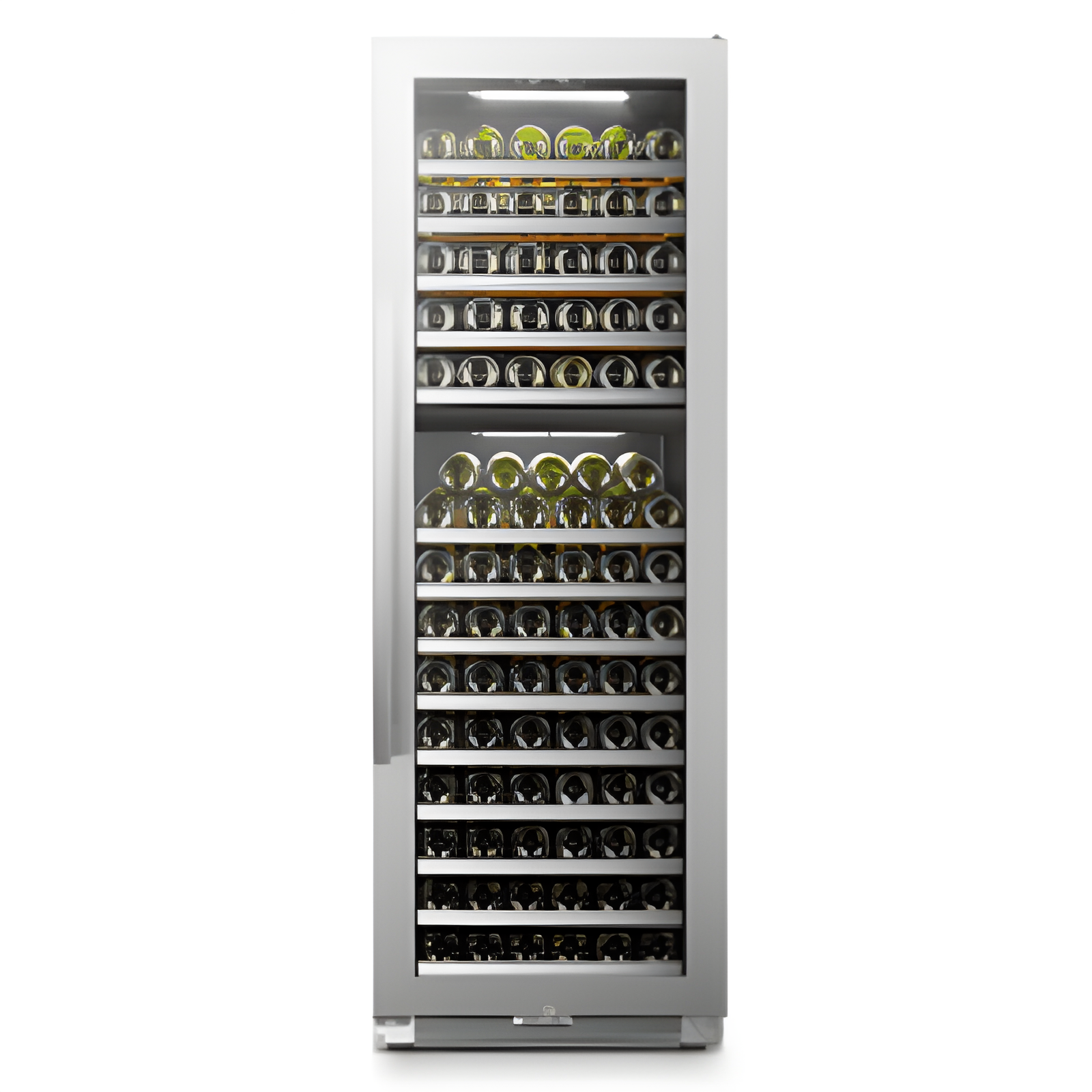 The LanboPro 153 Bottle Dual Zone Wine Cooler - LP168D is the ultimate solution for wine enthusiasts who need versatile storage for their diverse collection. With the capacity to hold up to 153 standard 750ml bottles, this cooler is perfect for accommodating larger bottles by simply removing one or two shelves. The dual zone temperature control allows you to store both red and white wines at their ideal temperatures, ensuring your collection is always at its best. The advanced compressor cooling system, combined with fan-circulated air-cooling, maintains consistent temperatures and humidity levels throughout the cooler, providing a stable environment for your wines.