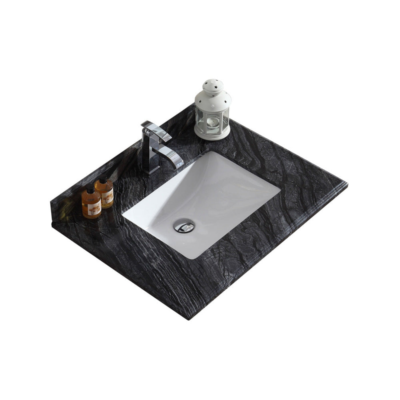 A: The Laviva Black Wood Countertop adds a bold, modern touch to your bathroom vanity with a sophisticated black wood design, crafted from high-quality materials.