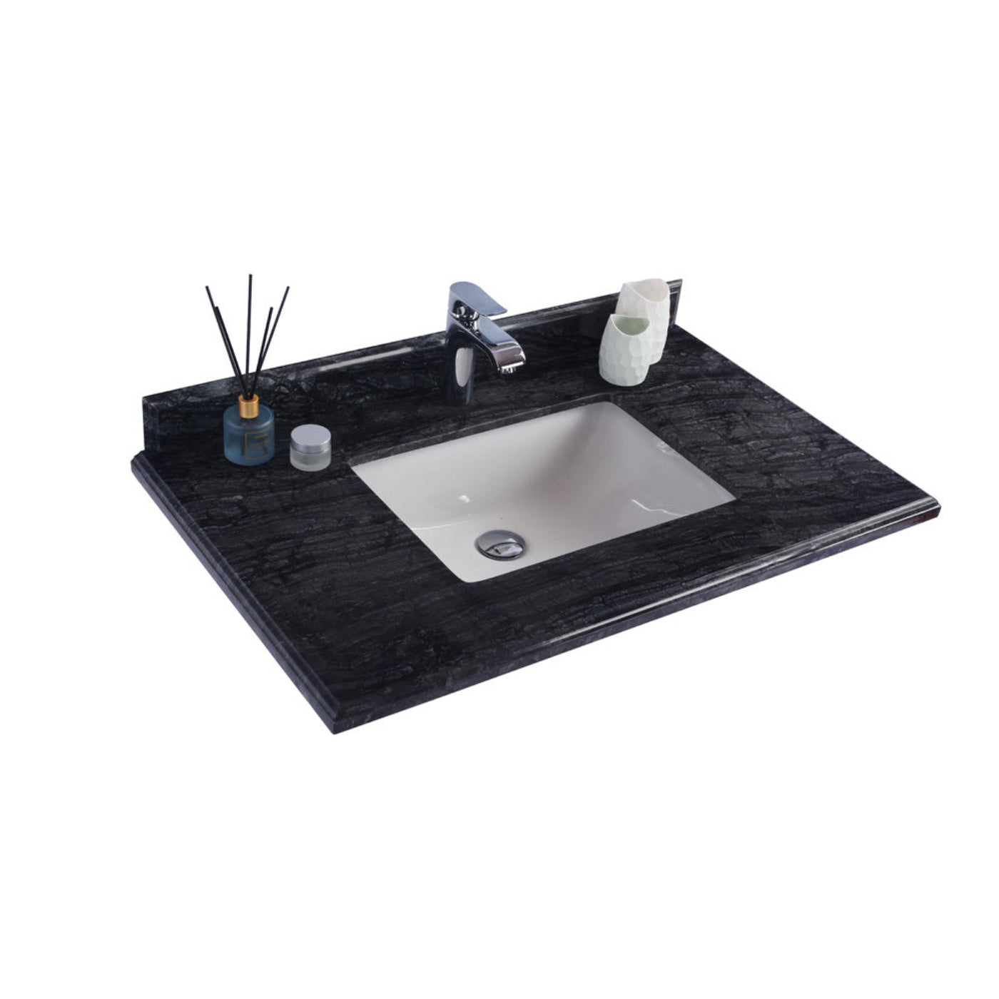 Unique Touch: The striking black wood pattern adds elegance and a touch of warmth to your vanity, making each piece unique.