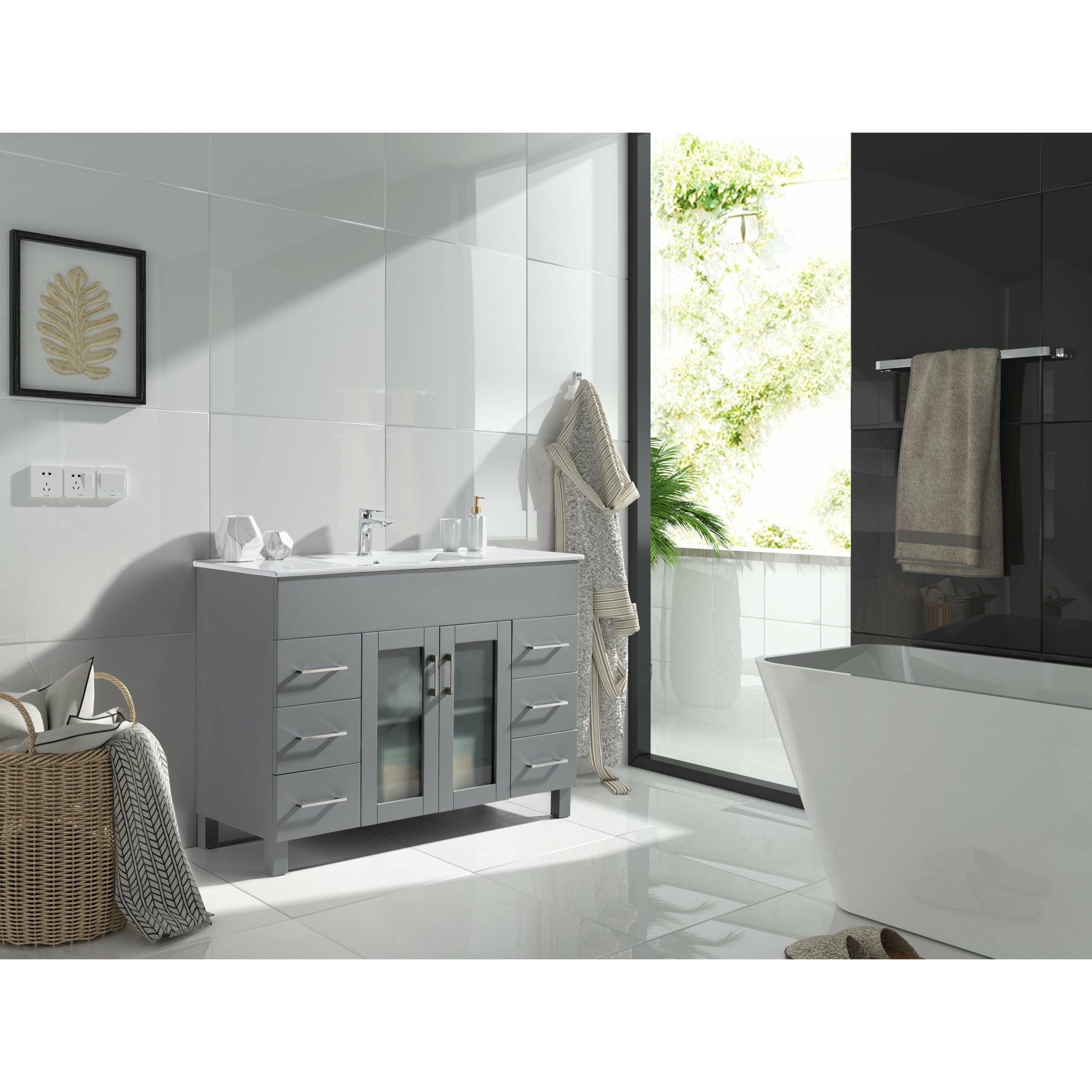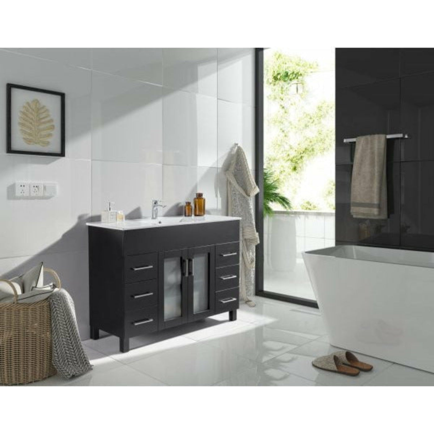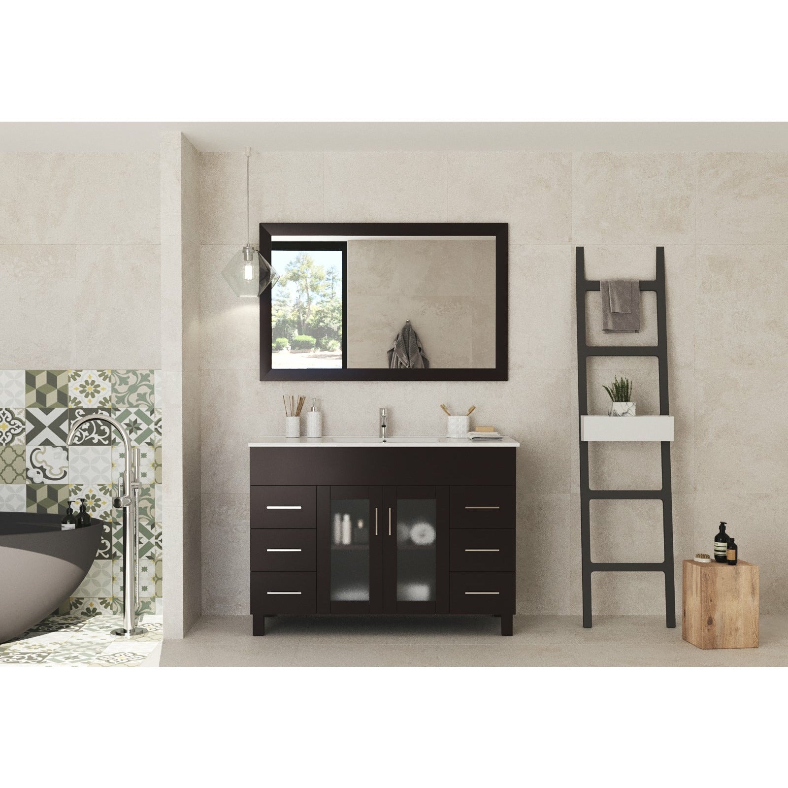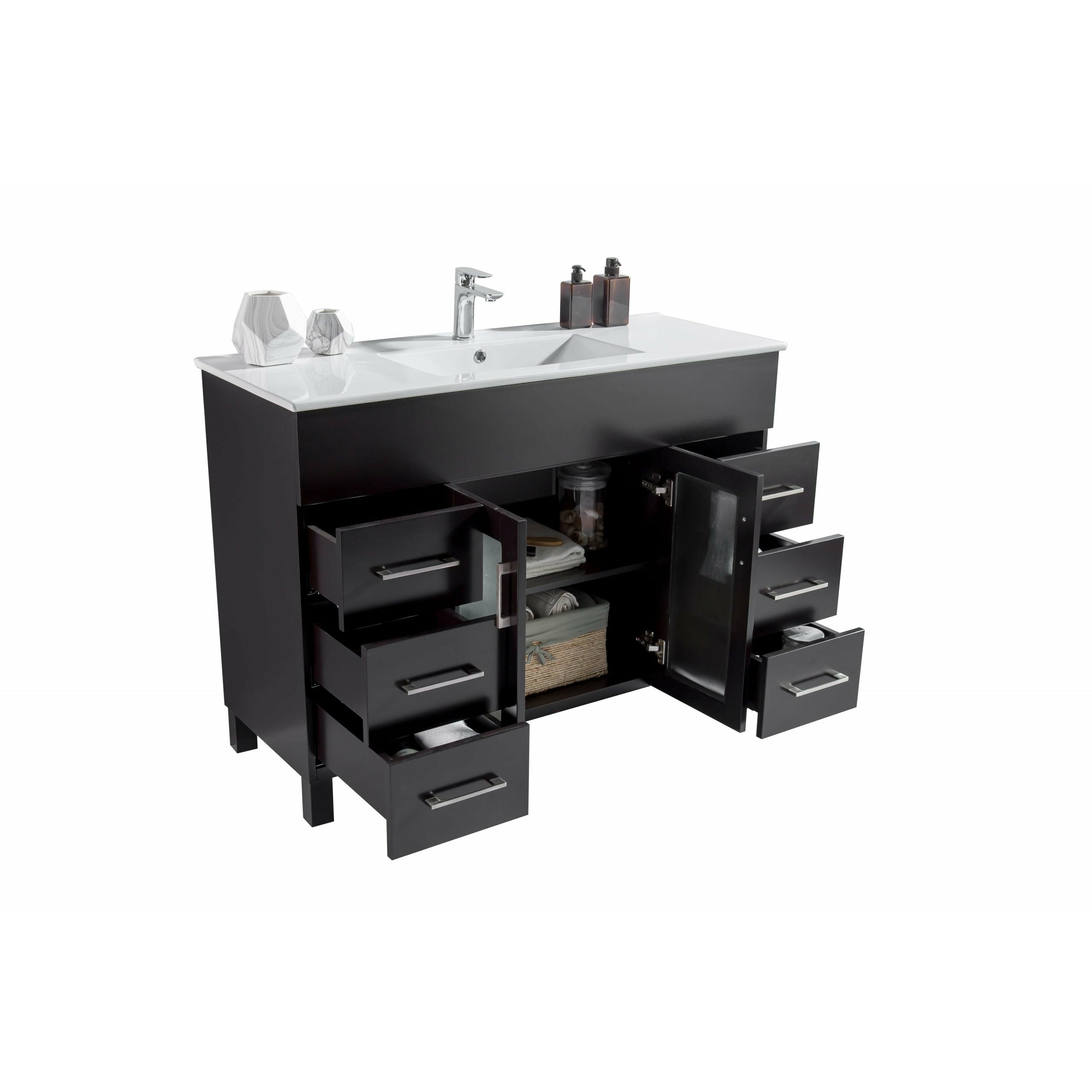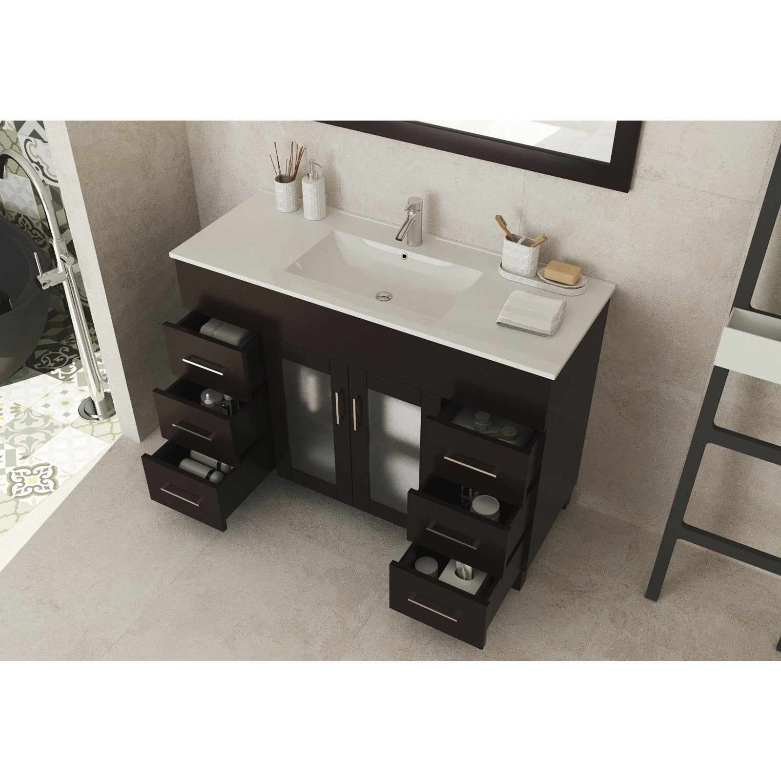 The Nova Collection offers a modern yet contemporary design without sacrificing functionality. This elegant collection offers 2 doors and many full extension drawers with soft closing hinges and rails, so you’ll never hear the door slam. The sleek ceramic basin has a modern rectangular seamless sink that is 18” wide with an overflow to protect from any clogging. This stylish vanity has immaculate finish options including: White, Grey, Espresso, and Brown.