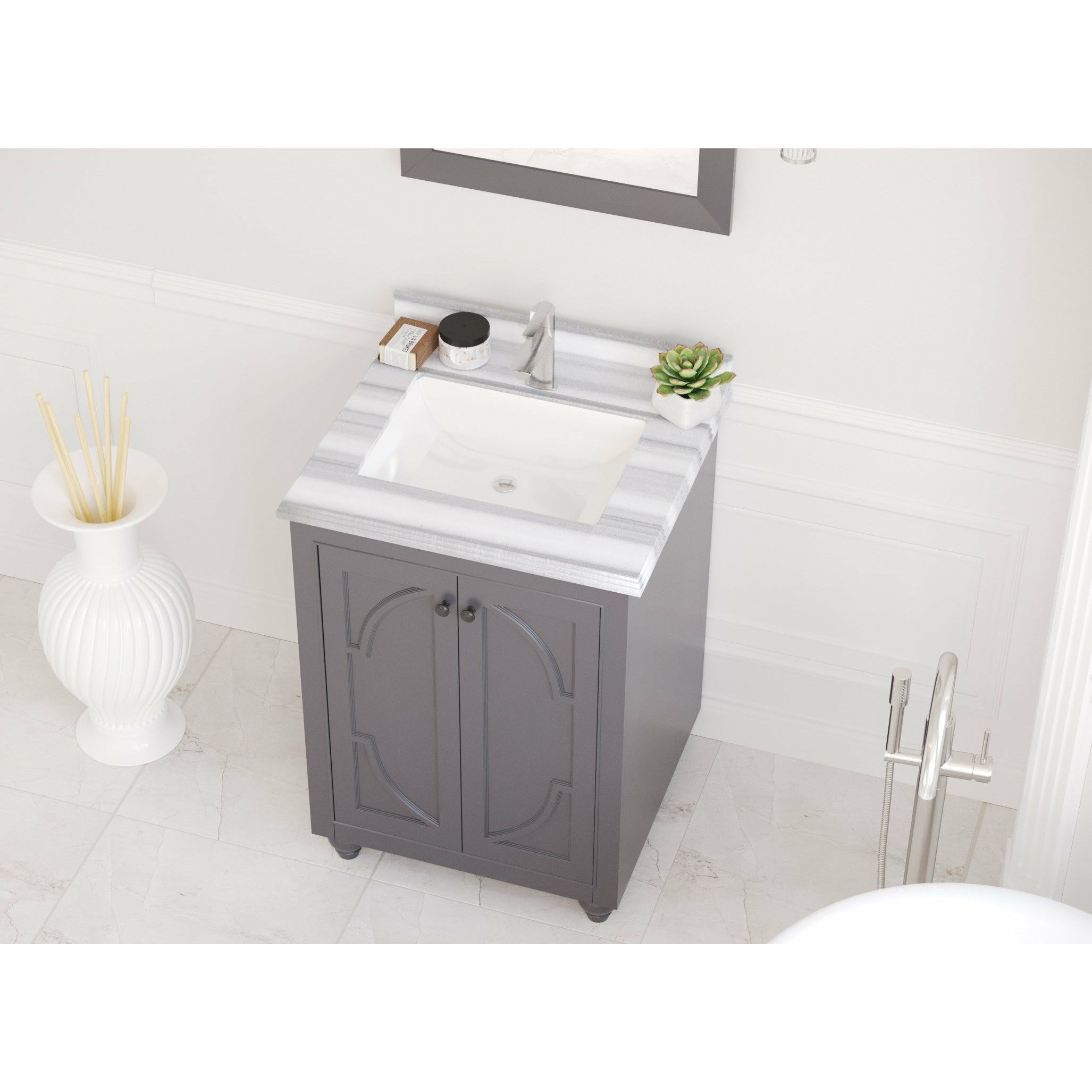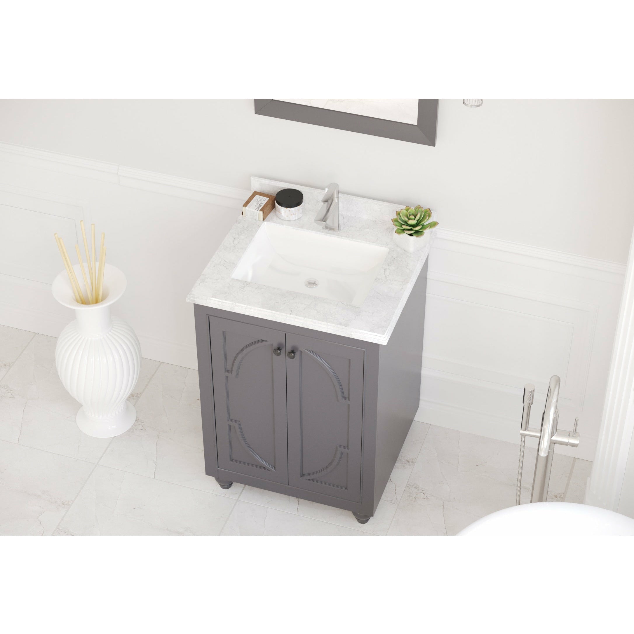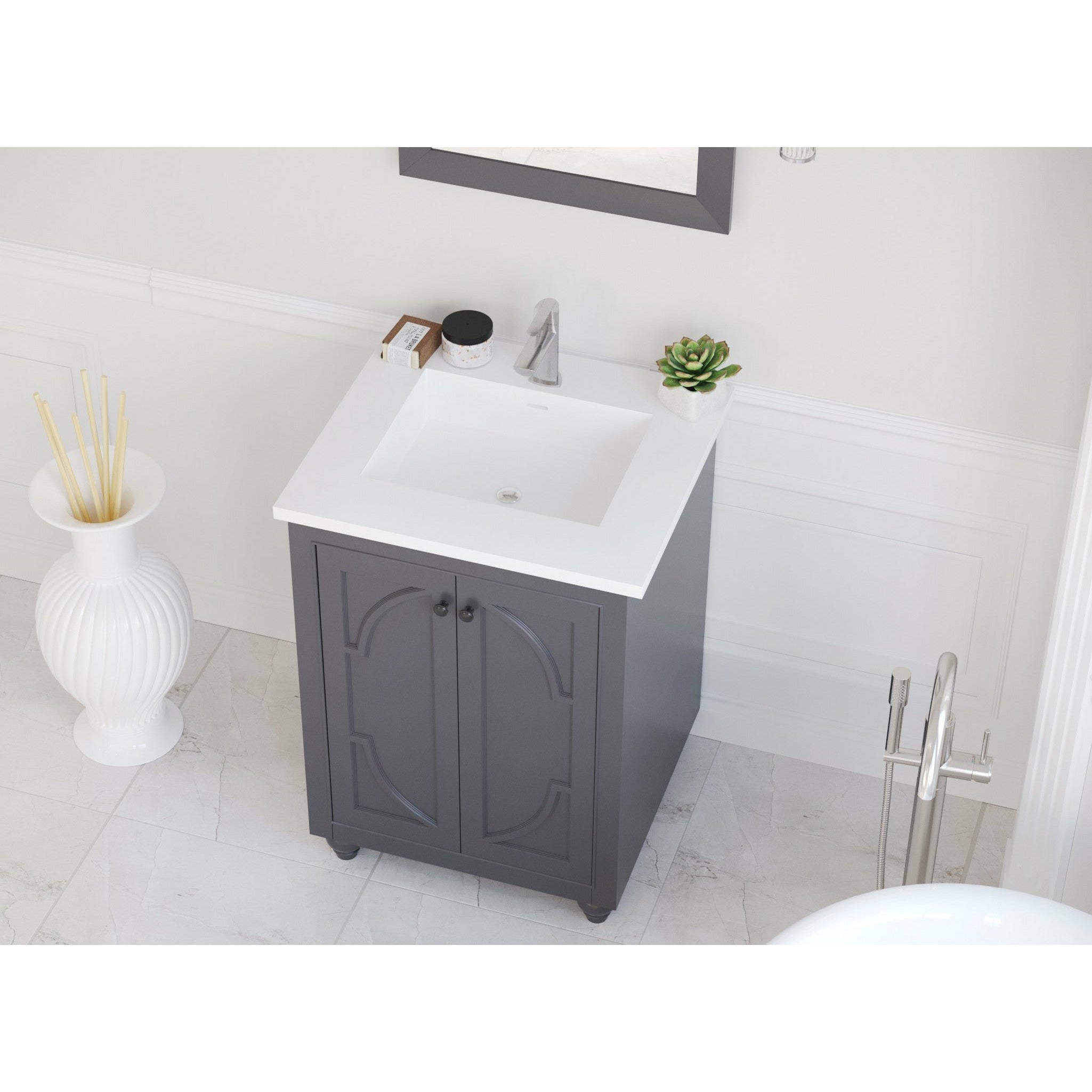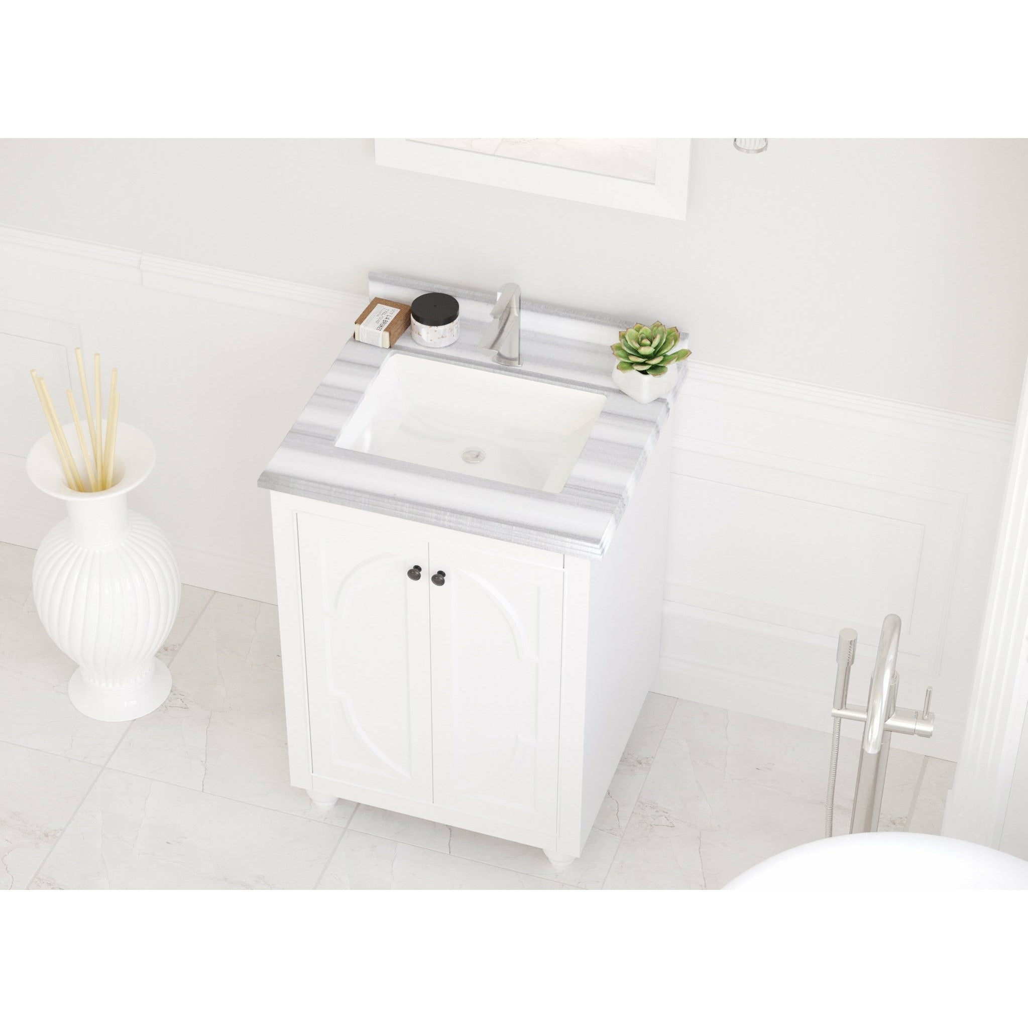 The Odyssey collection is a “work of art” fashioned into a vanity of worth, function, and style. From the top of the countertop, finished so eloquently by the double OGEE edge, to the grain within the finish, lavishly covering the cabinet in 2 colors: Classic White and Maple Grey. The brilliance of the well-thought out concept continues with open shelves and top drawer (on the 36” or larger). This vanity also comes with an optional Toe-Kick assembly to cover the freestanding legs for a “built-in” approach. Available in single sink options in 24”, 30”, 36”, 48”, and double sink option in 60”.