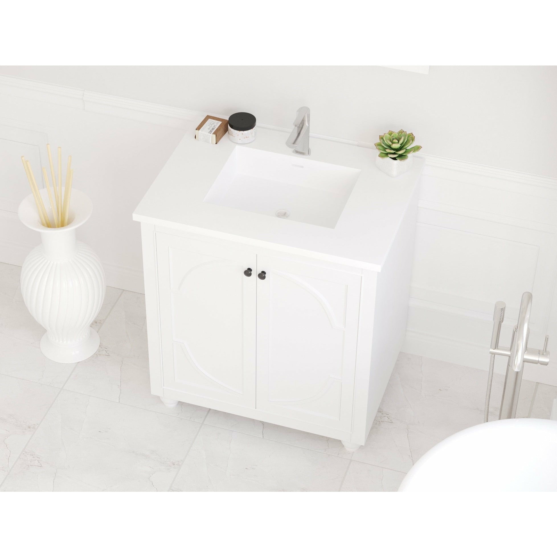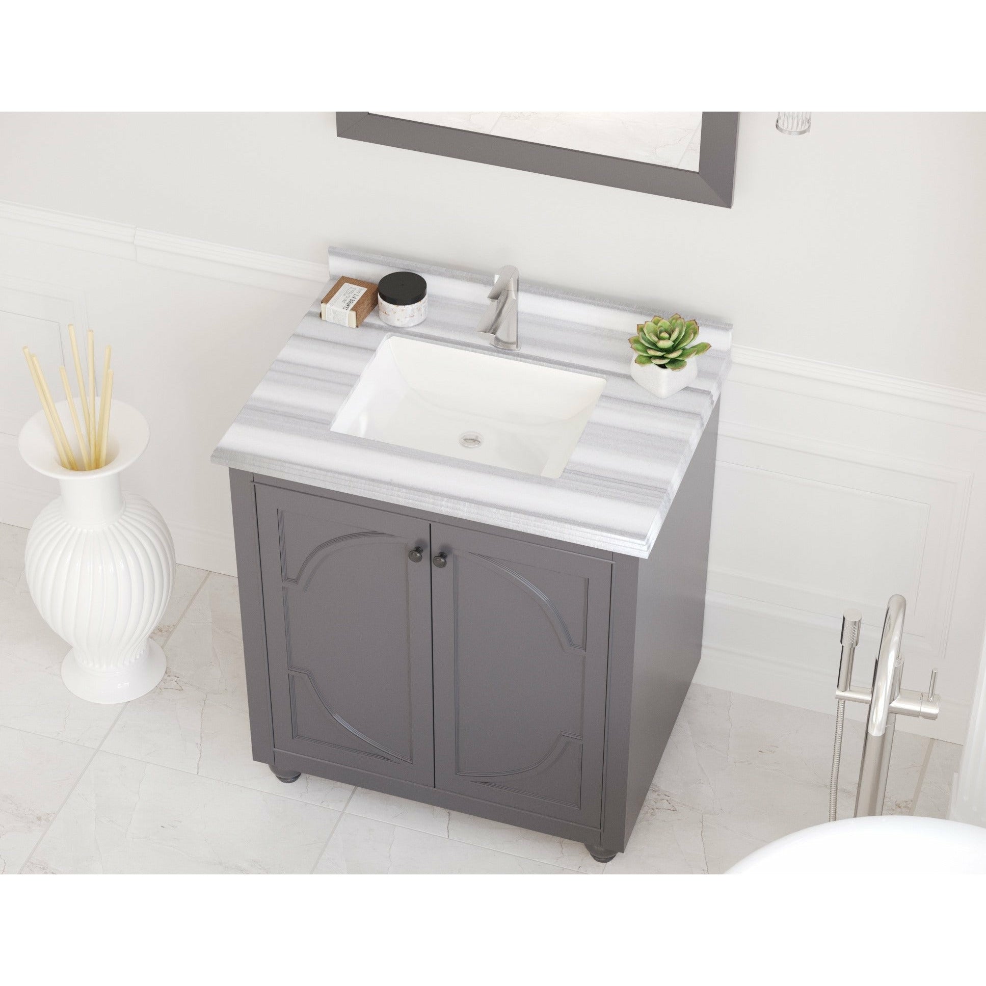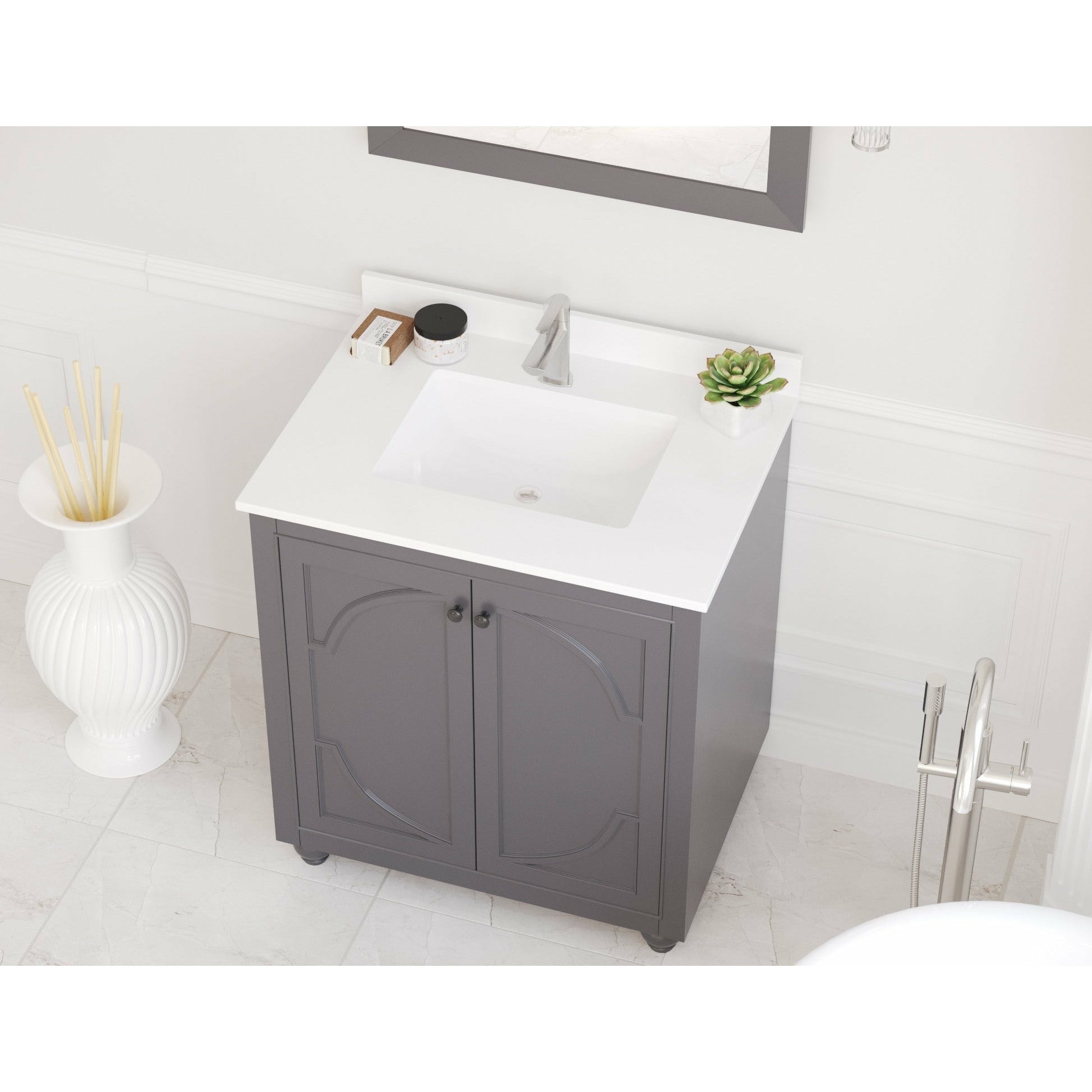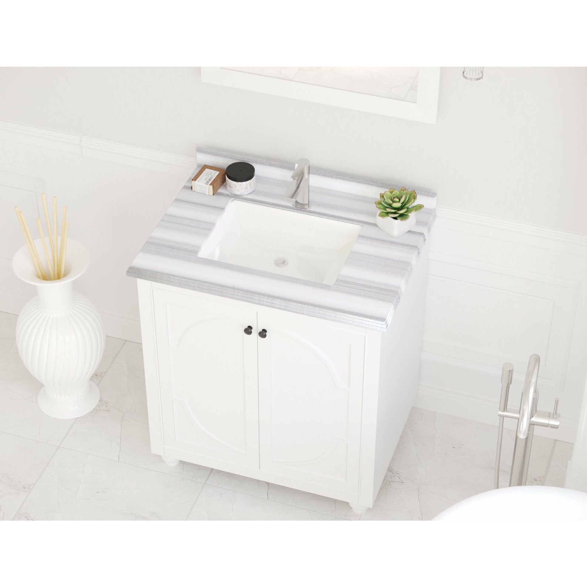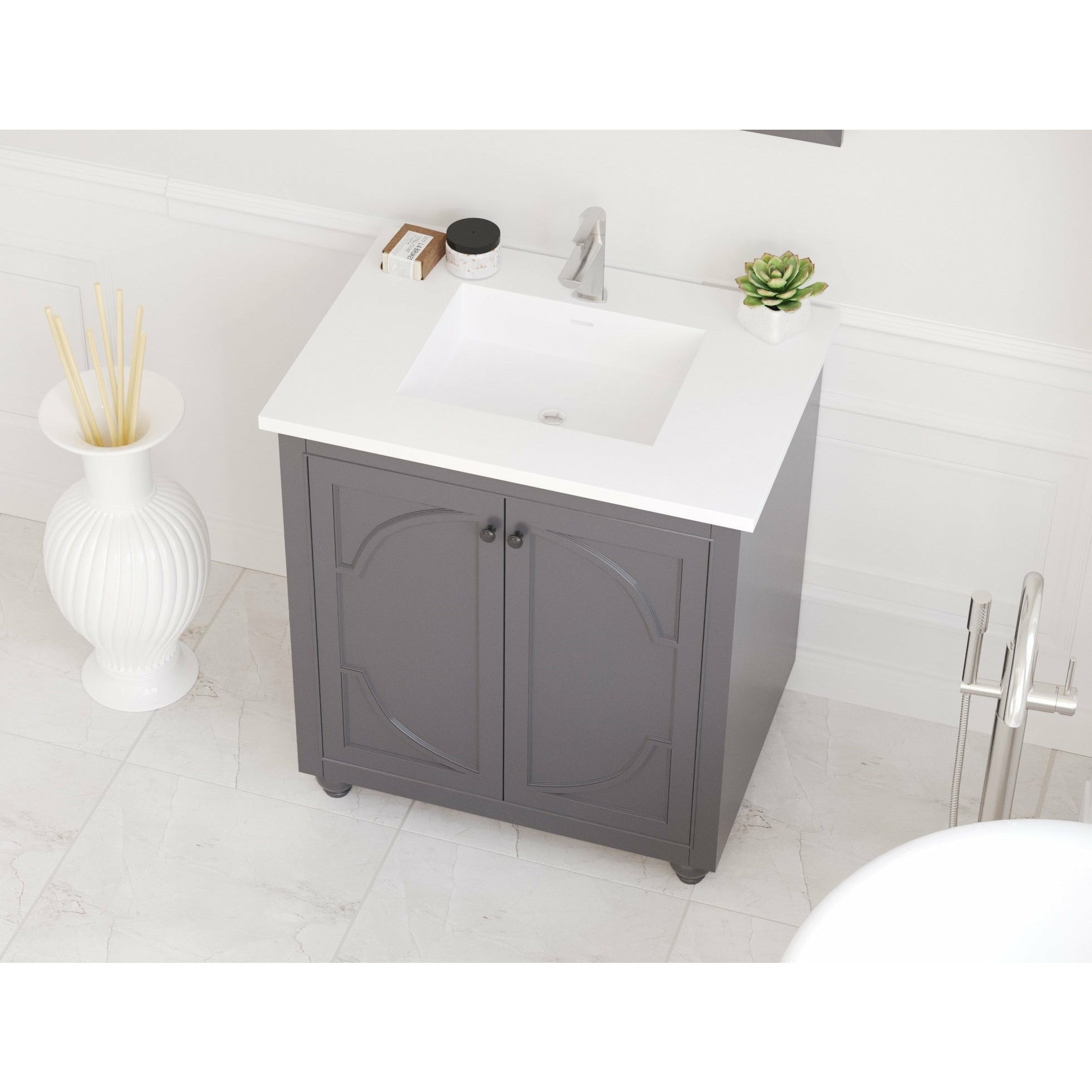 The Odyssey collection is a “work of art” fashioned into a vanity of worth, function, and style. From the top of the countertop, finished so eloquently by the double OGEE edge, to the grain within the finish, lavishly covering the cabinet in 2 colors: Classic White and Maple Grey. The brilliance of the well-thought out concept continues with open shelves and top drawer (on the 36” or larger). This vanity also comes with an optional Toe-Kick assembly to cover the freestanding legs for a “built-in” approach. Available in single sink options in 24”, 30”, 36”, 48”, and double sink option in 60”.