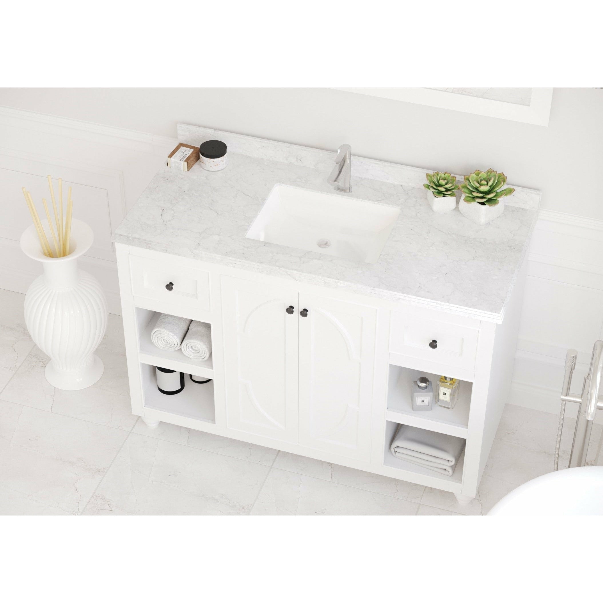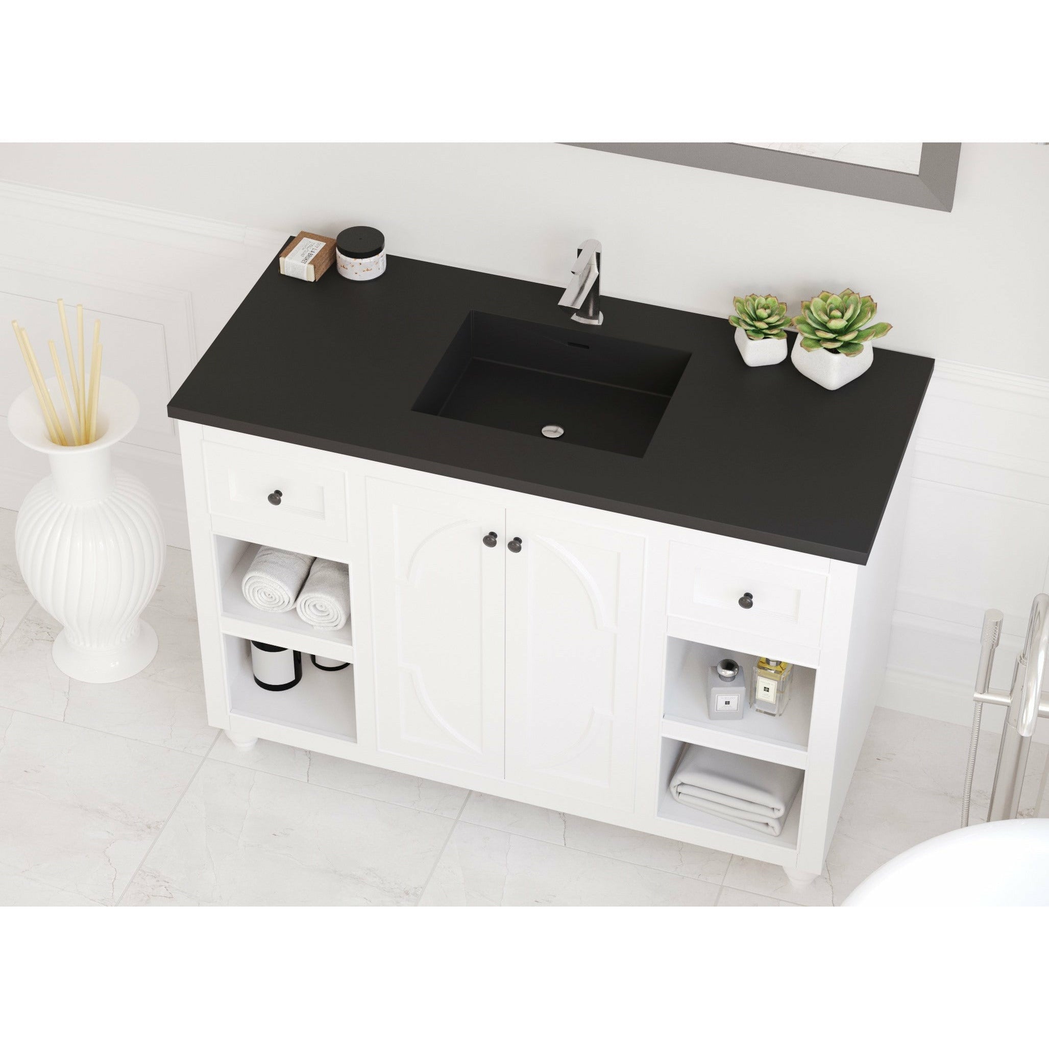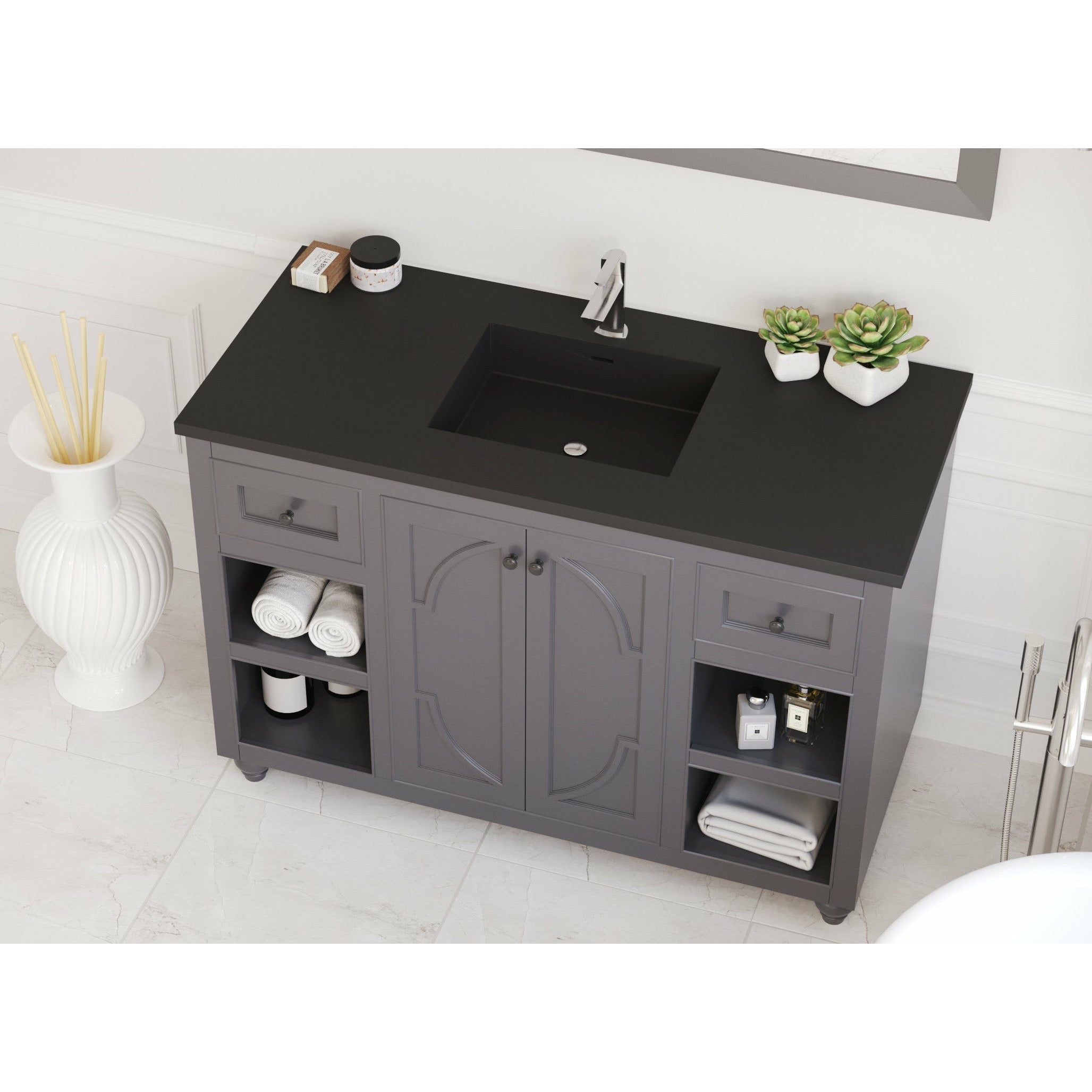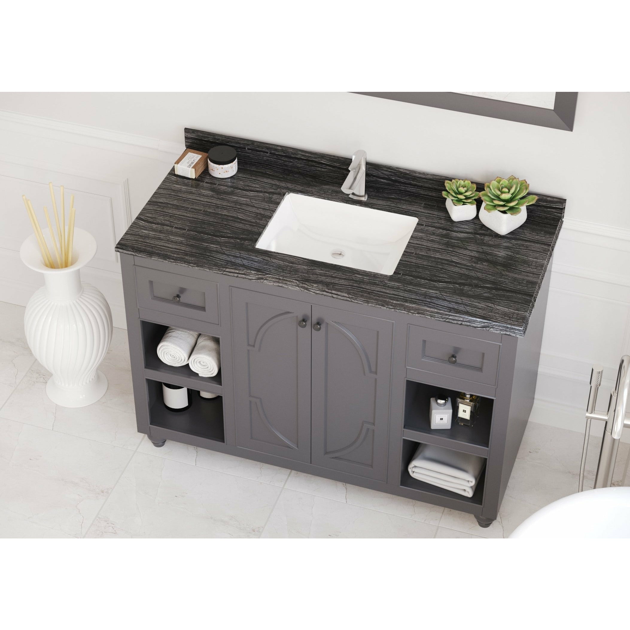 Odyssey collection is a “work of art” fashioned into a vanity of worth, function, and style. From the top of the countertop, finished so eloquently by the double OGEE edge, to the grain within the finish, lavishly covering the cabinet in 2 colors: Classic White and Maple Grey. The brilliance of the well-thought out concept continues with open shelves and top drawer (on the 36” or larger). This vanity also comes with an optional Toe-Kick assembly to cover the freestanding legs for a “built-in” approach. Available in single sink options in 24”, 30”, 36”, 48”, and double sink option in 60”.
