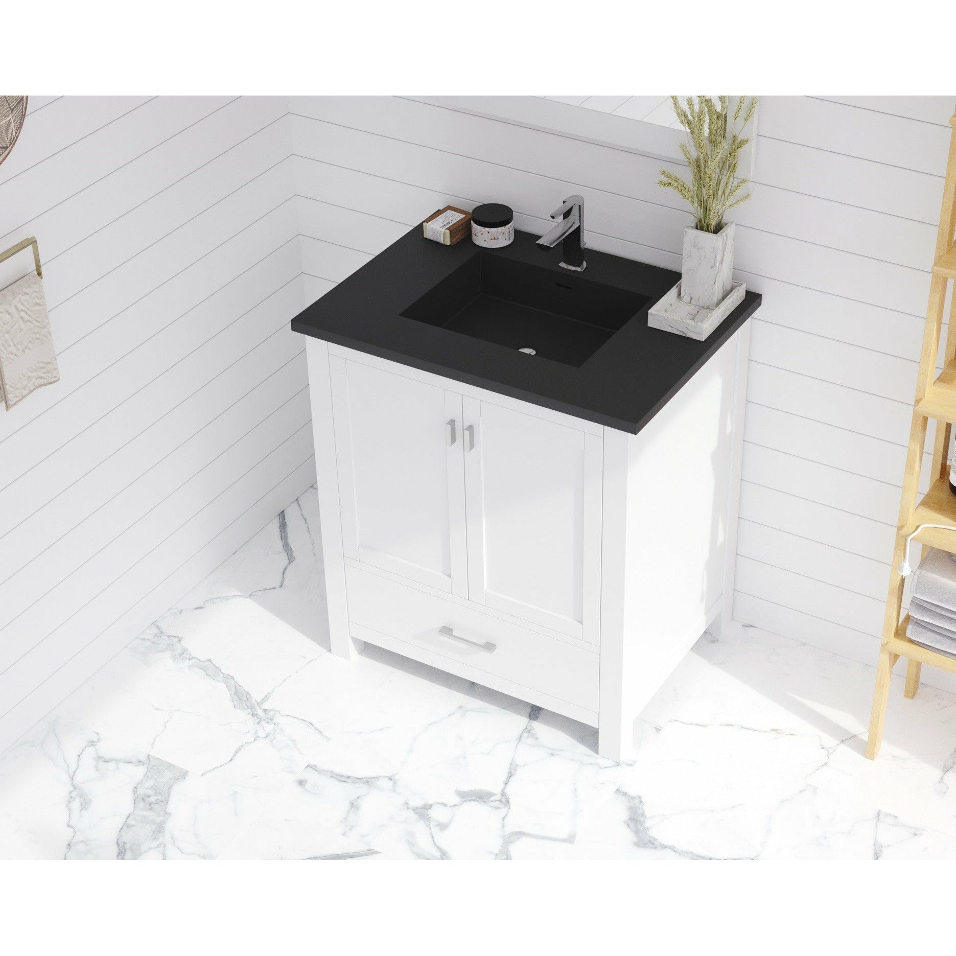 Q: What storage and features does the Laviva Wilson 30" Vanity offer?