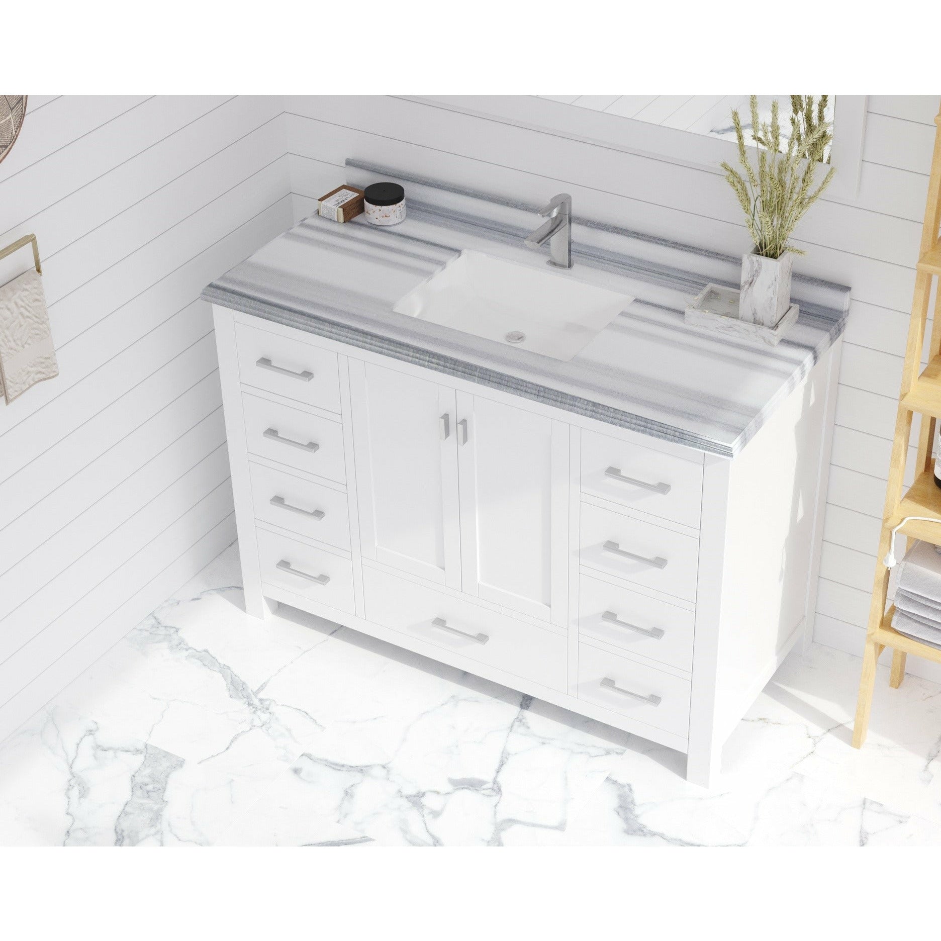 Q: What storage and features does the Laviva Wilson 48" Vanity offer?