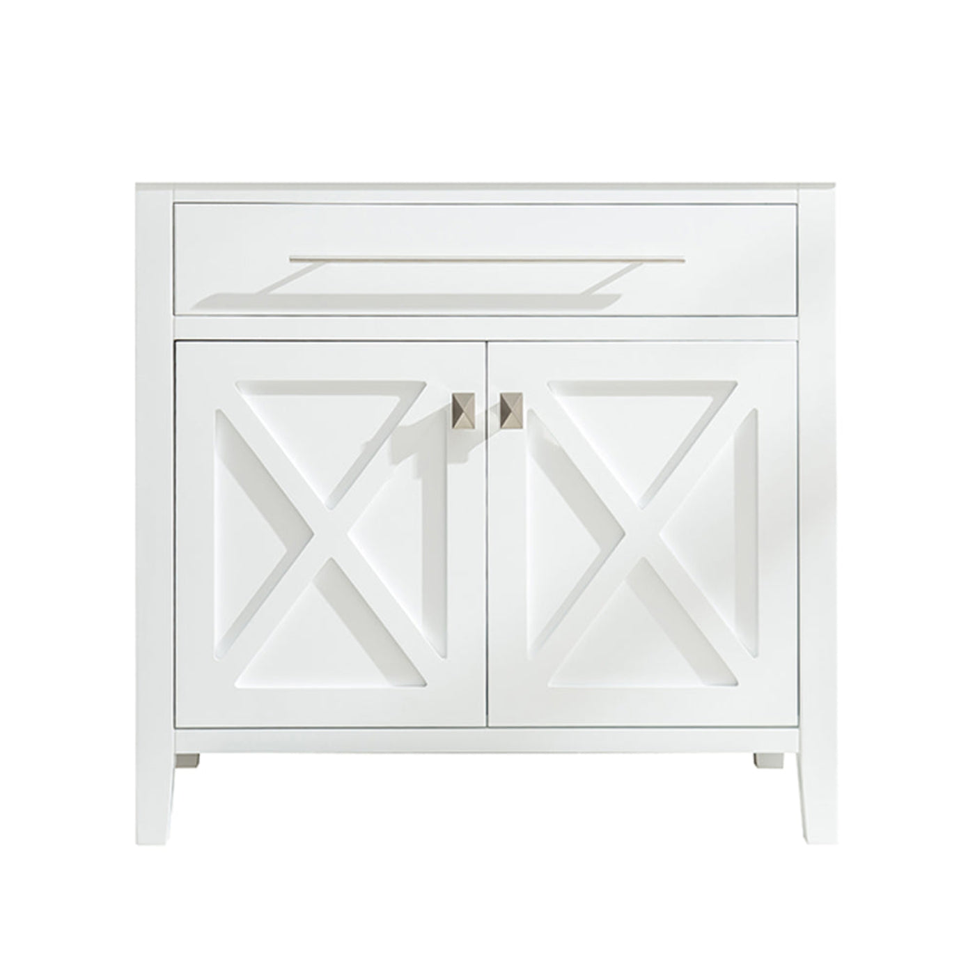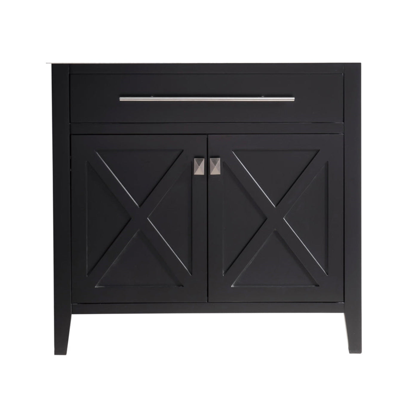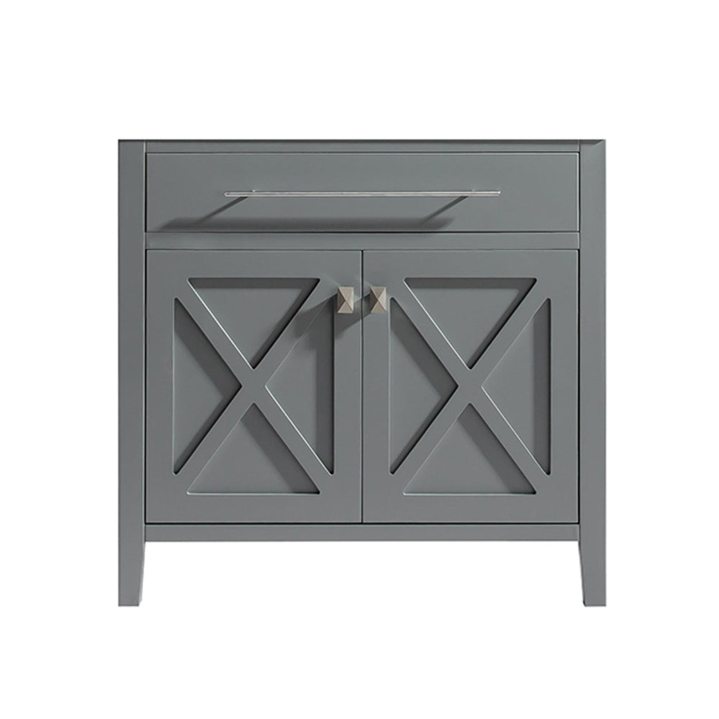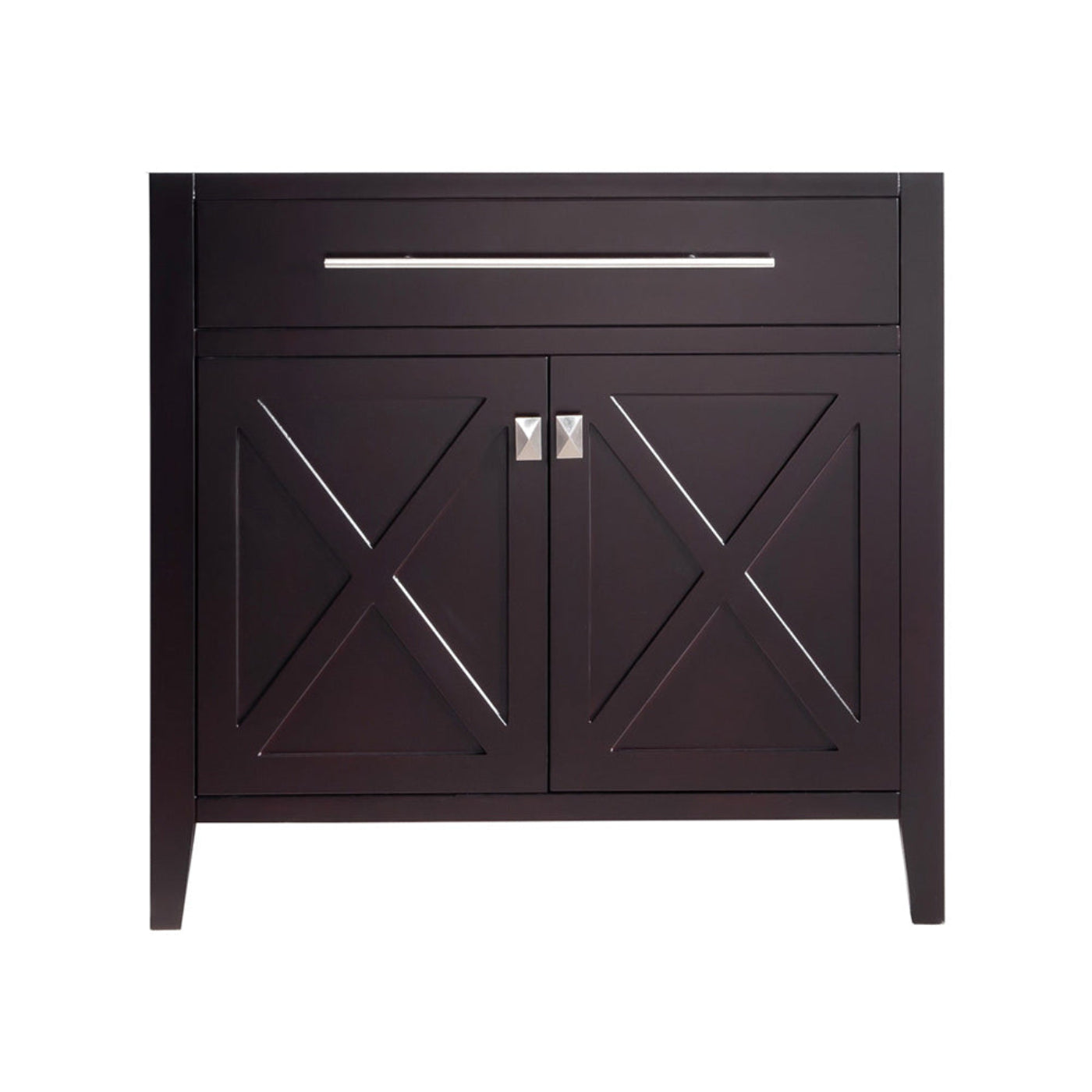 A no-frills example of a classy act, that’s confident of its clean and simple style, is the Wimbledon Collection. “X” does mark the spot of the two doors front and centered showcase. Its elegant and refined contribution is exhibited by it unique towel bar handle on the top of the cabinet. Once you open the doors, you’ll be surprised by the dual levels of shelves and the humongous space for storage. With your selection of the Wimbledon collection, you’ll become the champion of your selective taste. You’ll know you’ve scored highest by your guests’ compliments! Available in single sink option in 24” and 36” or double sink option in 60”. Also available in the following finishes: Brown, White, Espresso, and Grey.