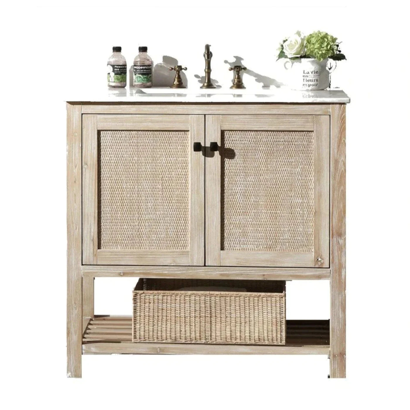 Legion Furniture WH5136 36 Inch Solid Wood Vanity in White Wash with Carrara Marble Top, No Faucet