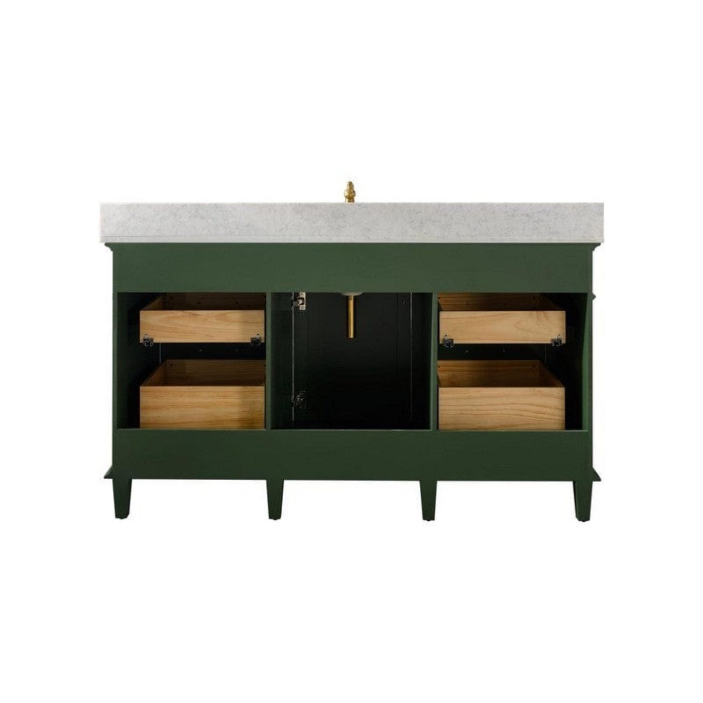 A perfect complement to a contemporary space, sharp lines of modern design with classic furniture styling. The Carrara White marble countertop provides a dramatic contrast with the White cabinet. Simple, bar-style pulls and knobs adorn the spacious drawers and doors, which conceal ample storage space for all your bathroom accouterments.