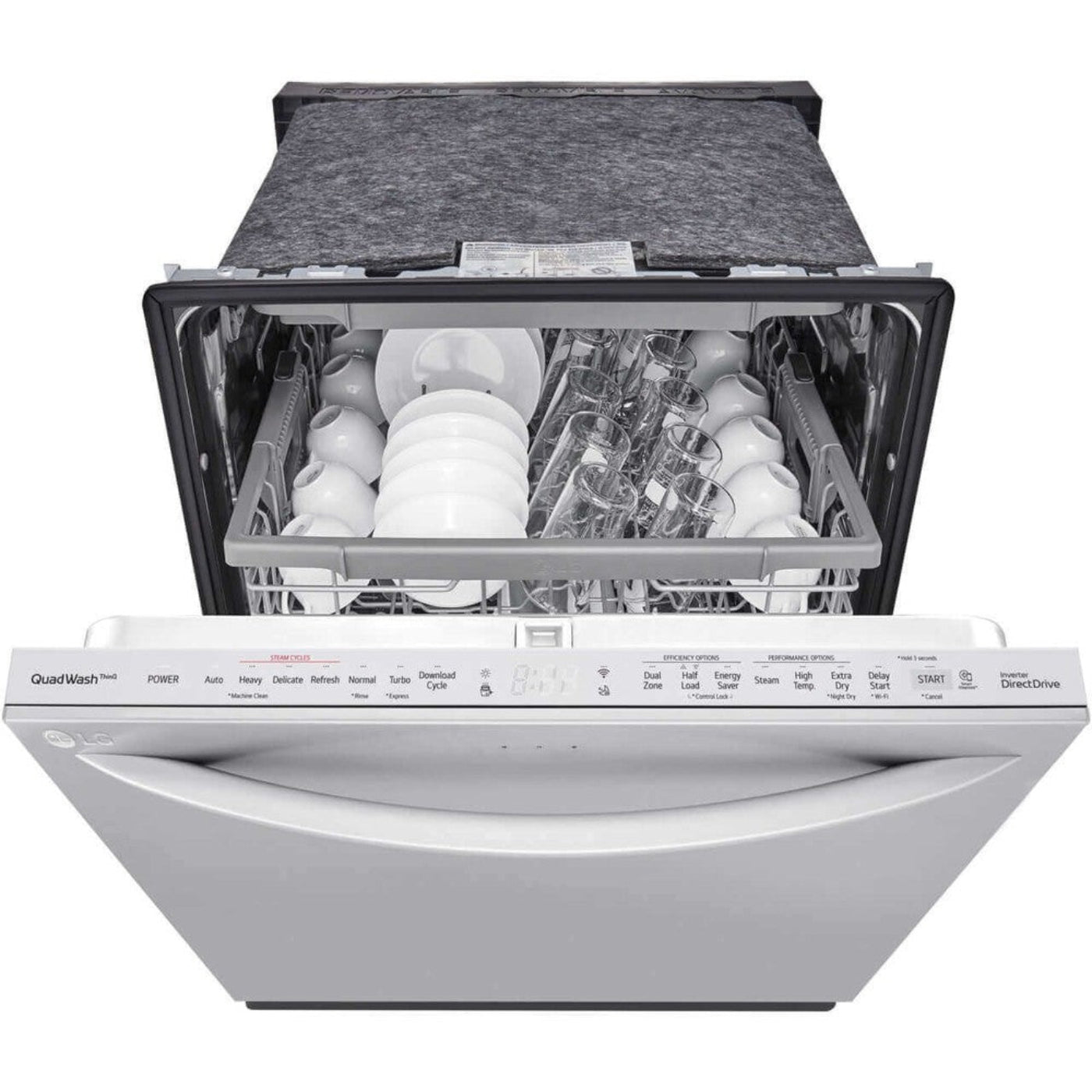 A: This dishwasher offers powerful steam cleaning with TrueSteam, which helps to eliminate stubborn stains and sanitize dishes effectively. The 3rd rack provides additional space for utensils and small items, maximizing the interior capacity. Wi-Fi connectivity allows you to control and monitor your dishwasher remotely using the LG ThinQ app. The top control panel offers a clean, modern look while keeping controls easy to access.