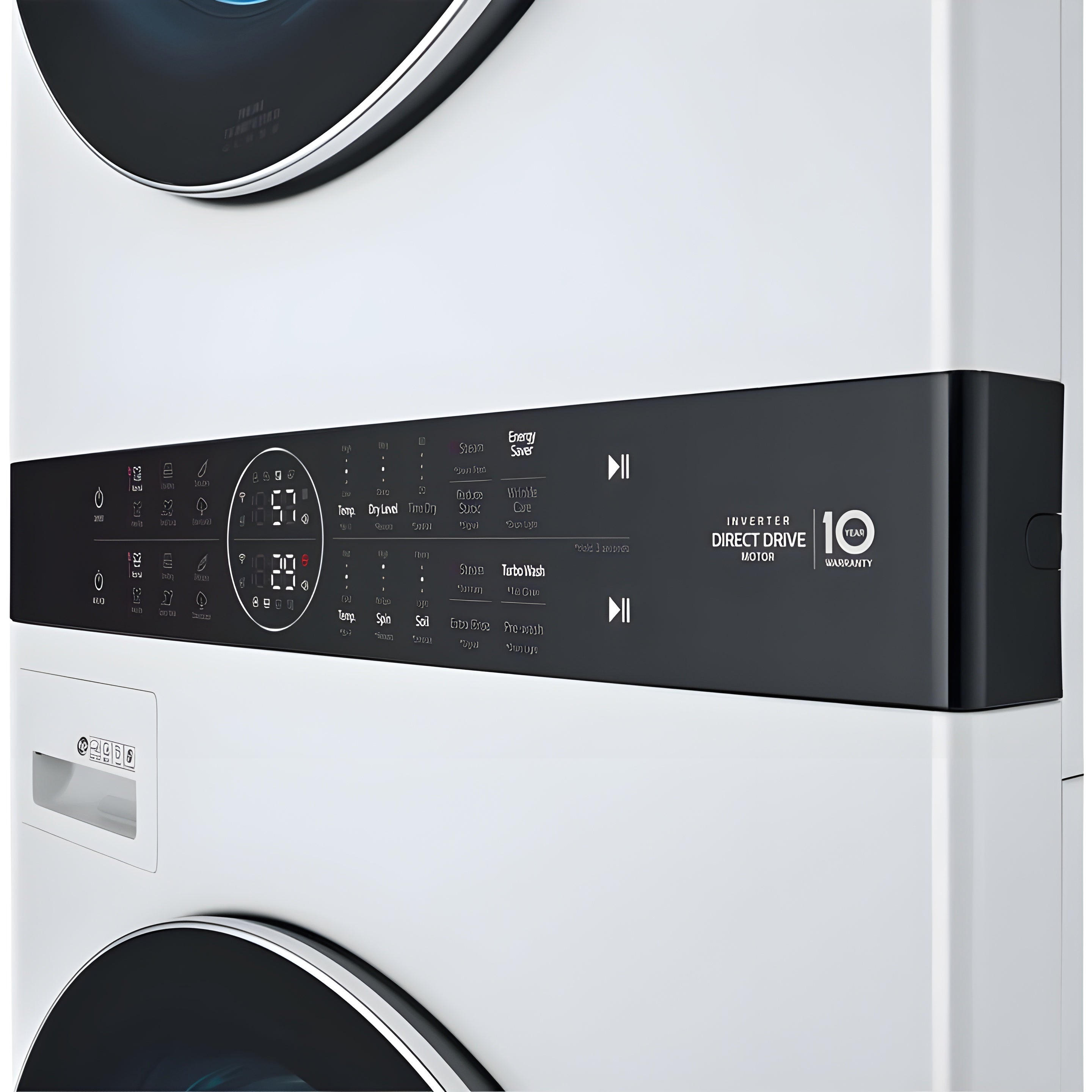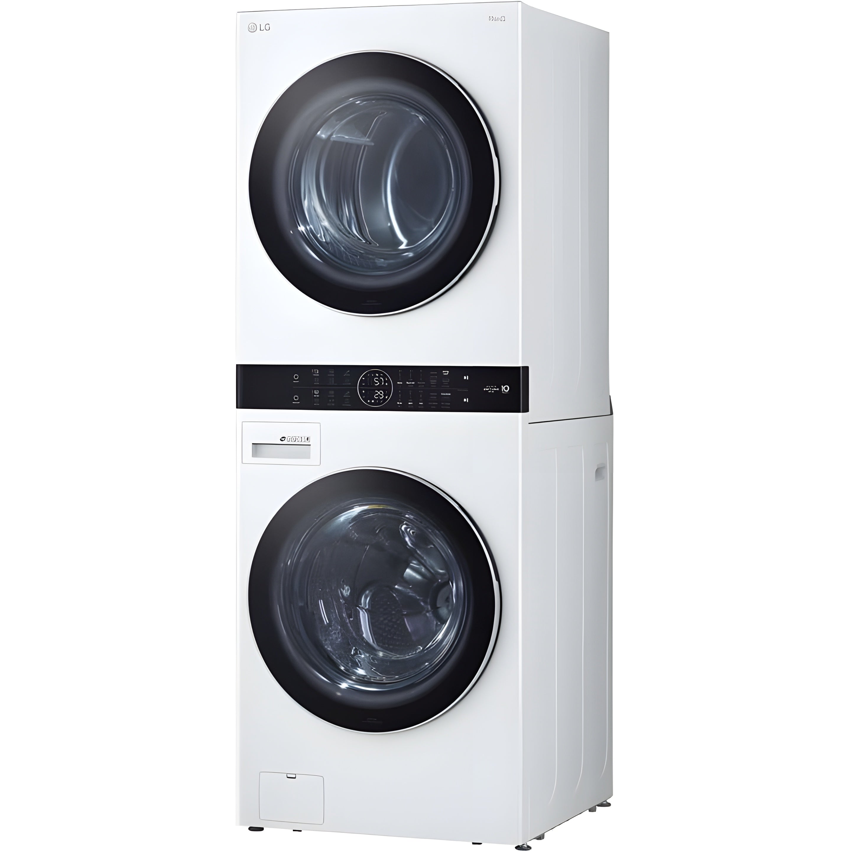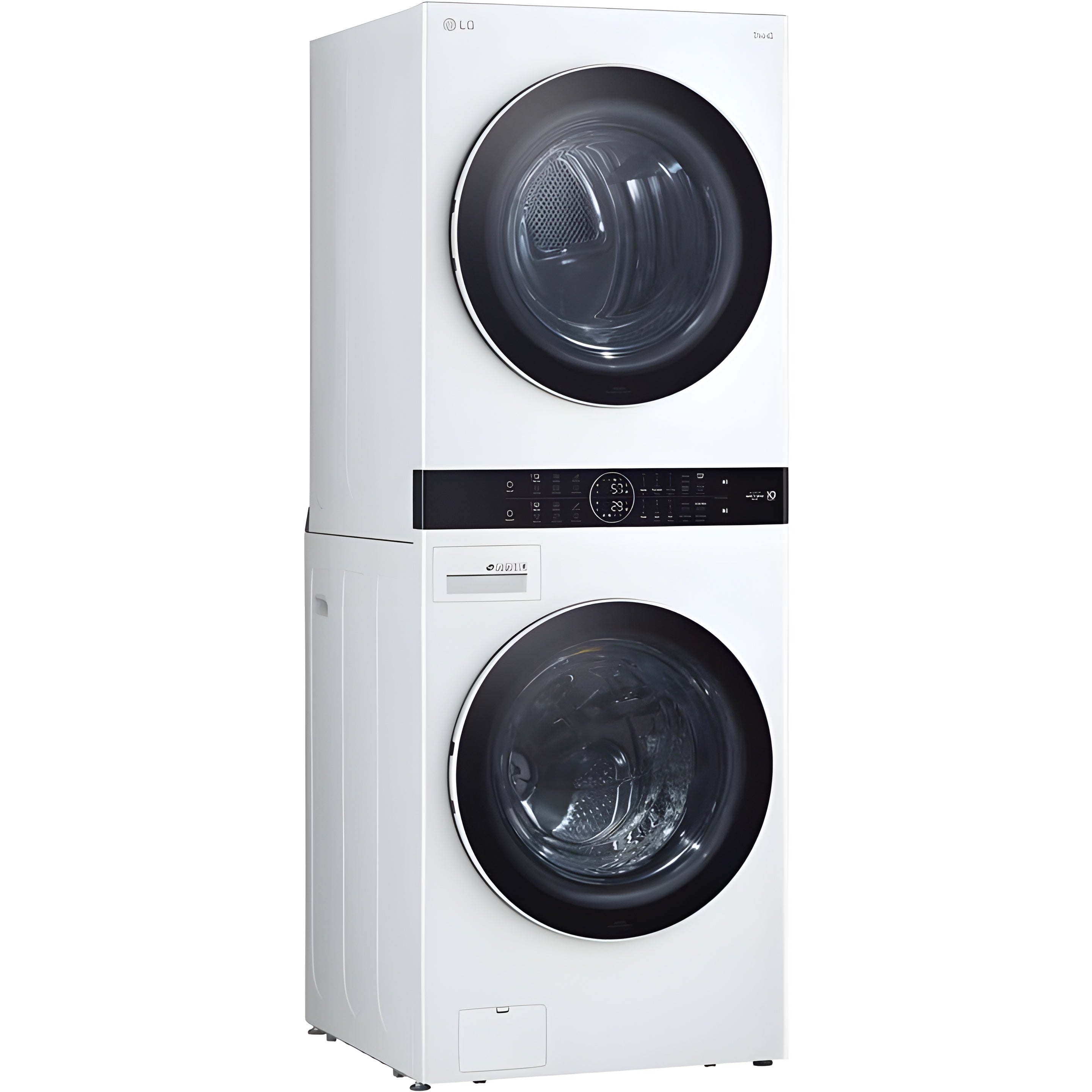 Full-size and fully featured, with the washer on the bottom and dryer on top, the sleek single-unit LG WashTower takes up half the space, giving you room to add a sink, a folding table, or whatever you like. Unlike conventional stacked laundry pairs, LG’s exclusive Center Control panel is perfectly positioned with both washer and dryer controls at just the right height for your convenience. This WashTower features built-in intelligence that utilizes sensors throughout the unit to detect fabric texture and load size to automatically select the perfect wash/dry cycles for your clothes. With Smart Pairing, the washer and dryer work together to select compatible cycles, making it the ultimate laundry pair. Our tempered glass doors and chrome accents provide this laundry WashTower with the premium look that makes it the perfect addition to any home.