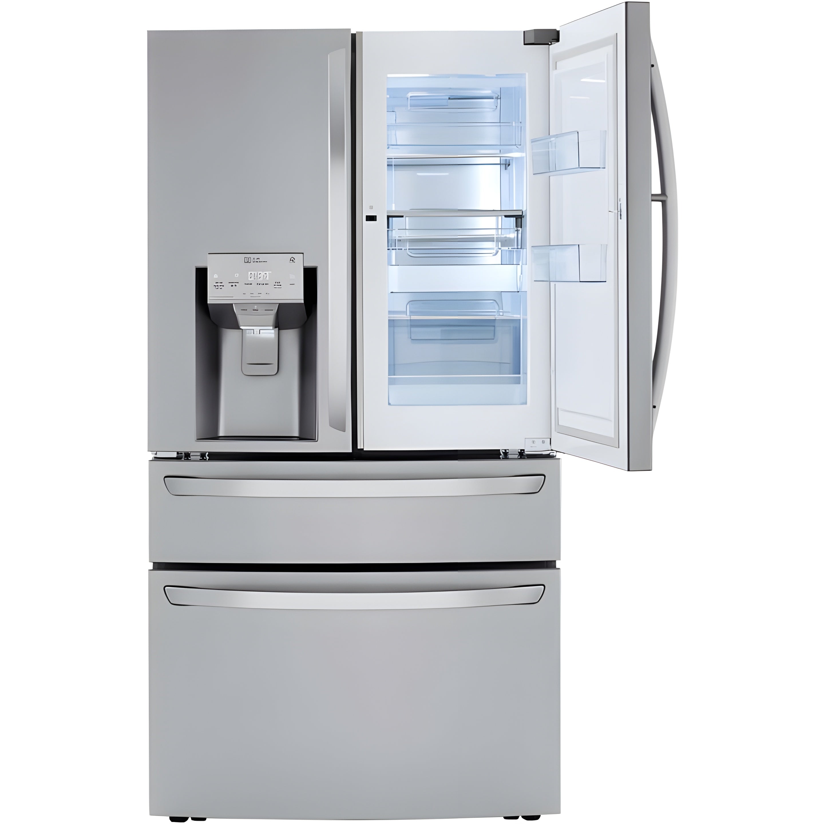 With LG's larger 30-cu. ft. capacity refrigerator, you'll never have to worry about having enough storage space for your favorite foods. This 4-door refrigerator and freezer comes in a sleek yet practical PrintProof finish that easily wipes clean.