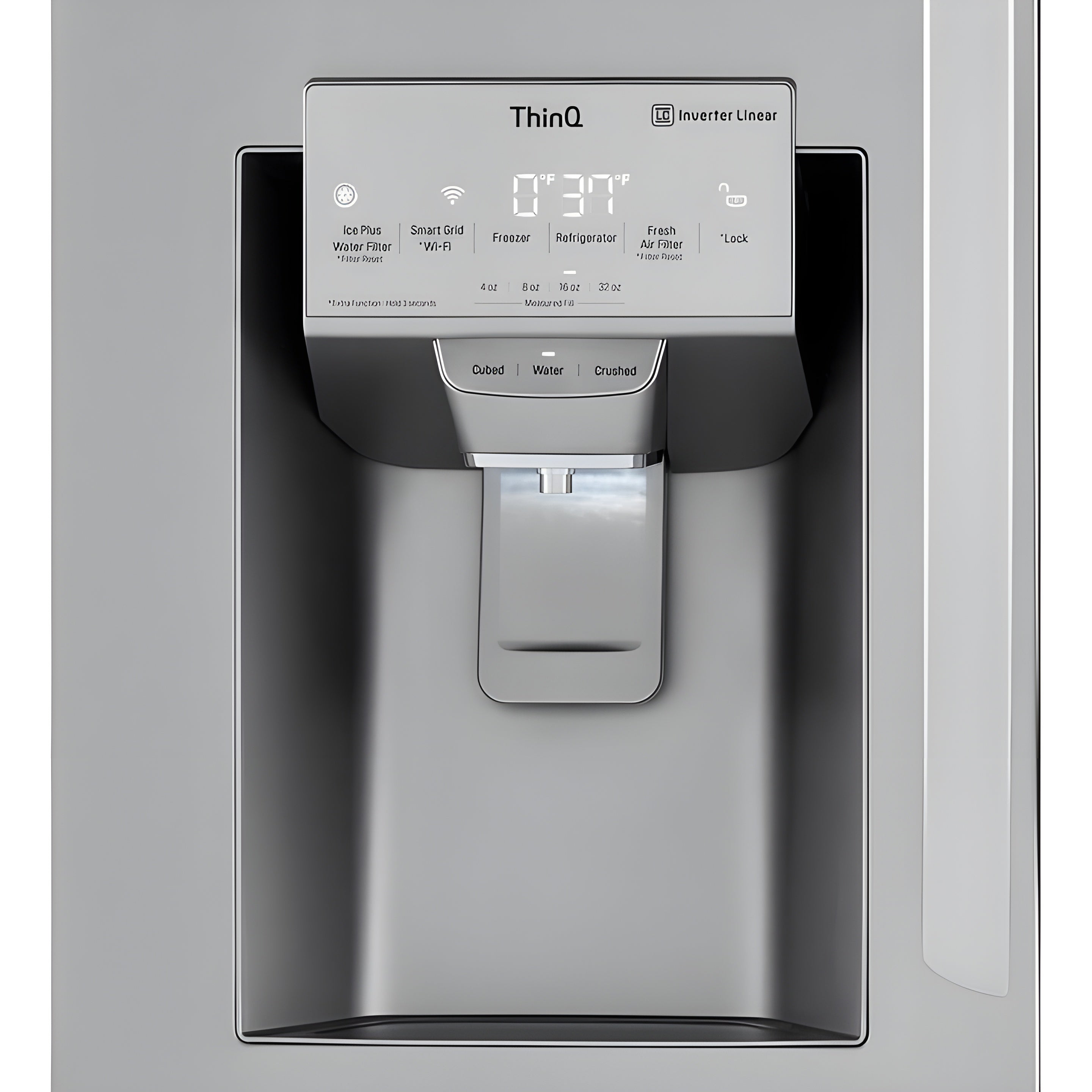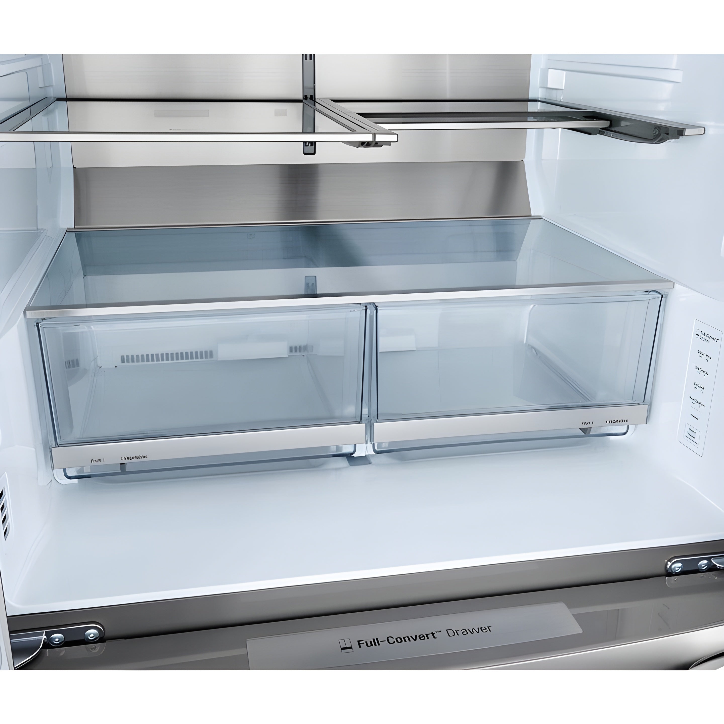 The LG 4-Door French Door refrigerator features a generous 23-cu. ft. interior capacity so that you'll always have space for more of your family's favorite foods. The counter-depth design of this LG refrigerator allows you to enjoy that seamless built-in look that stands flush with preexisting cabinetry.