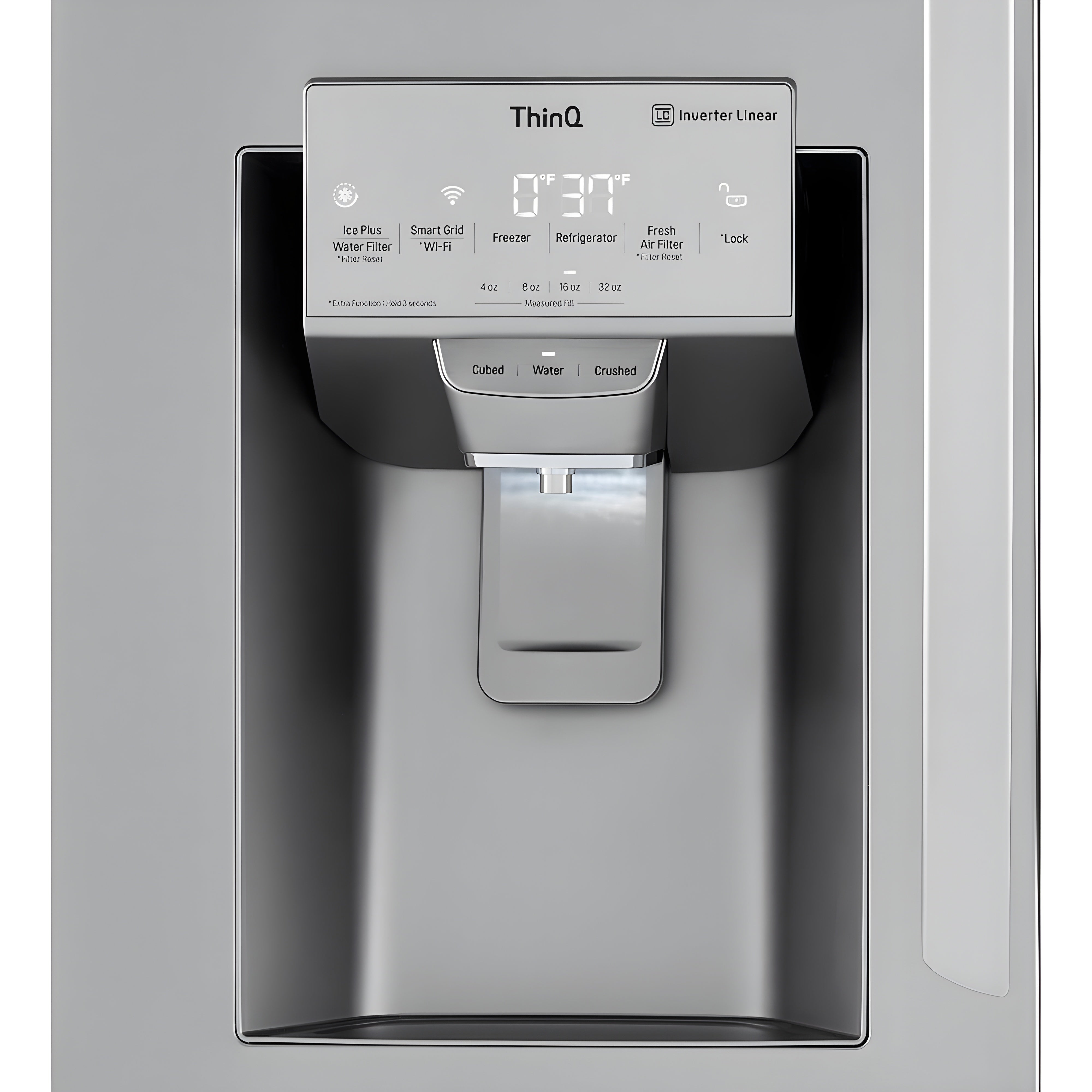 The LG 4-Door French Door refrigerator features a generous 30-cu. ft. interior capacity so that you'll always have space for more of your family's favorite foods.