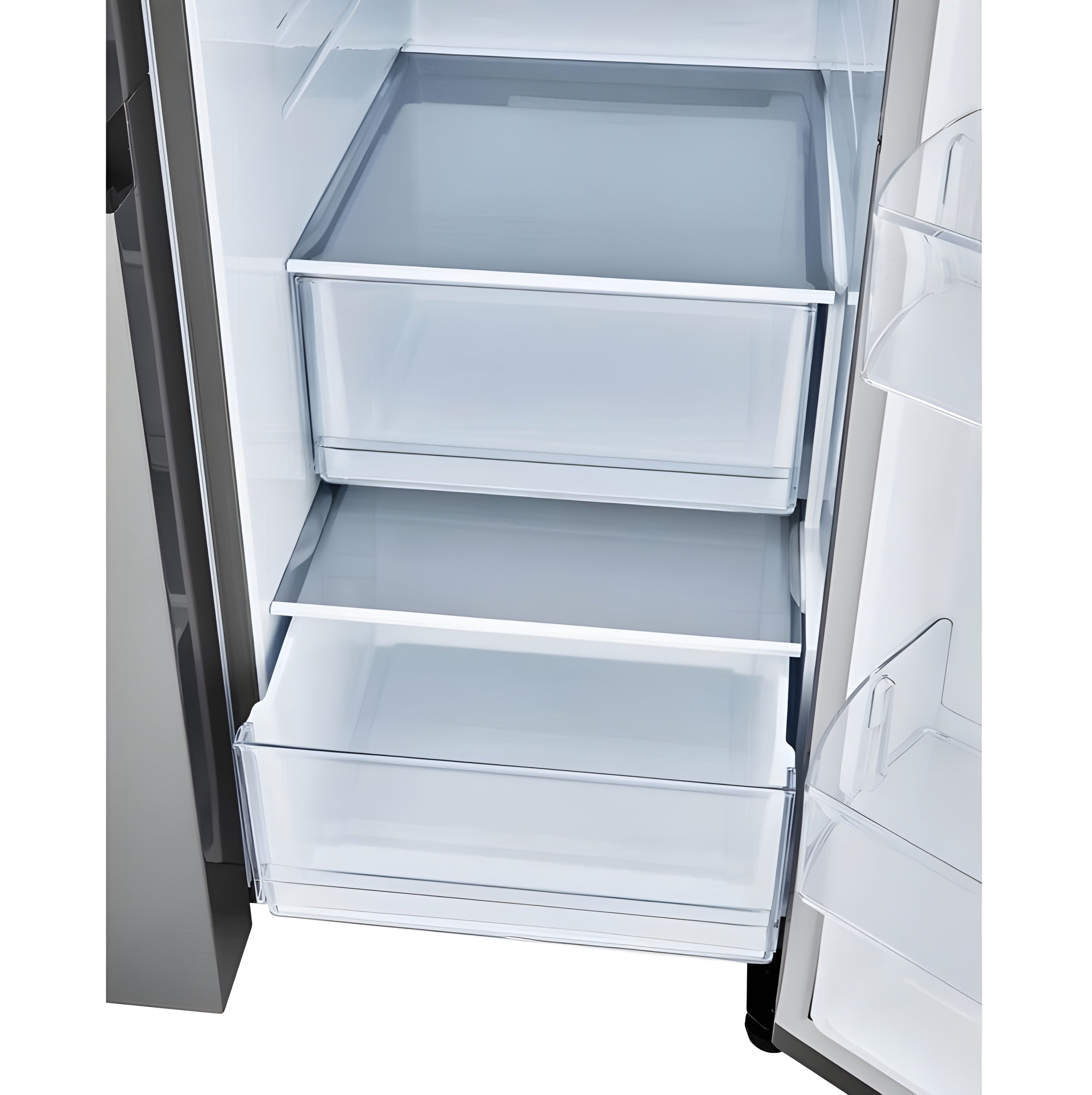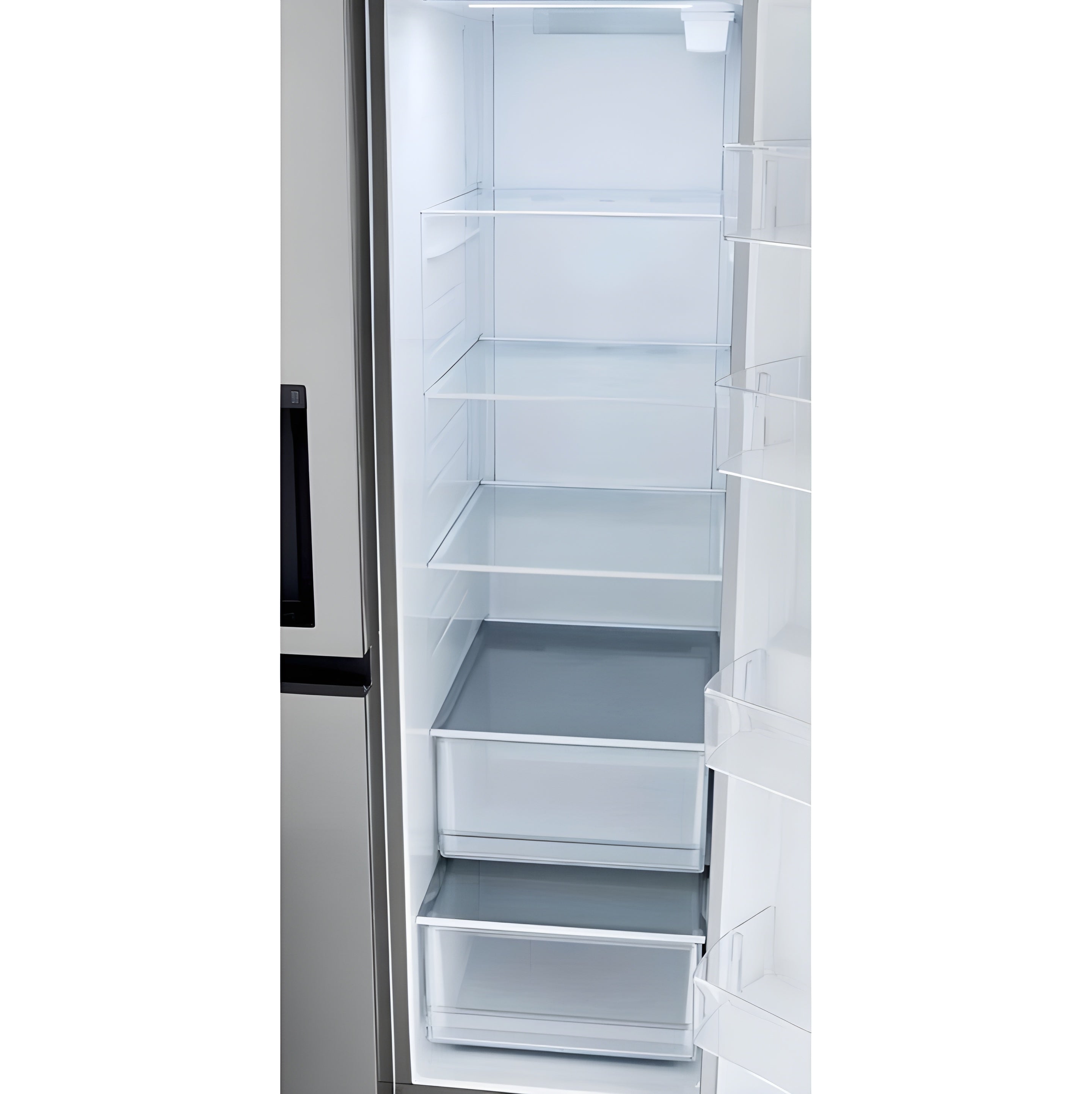 Side-by-Side Design – Easy access to both the refrigerator and freezer, with organized compartments and door storage that maximize space and efficiency.