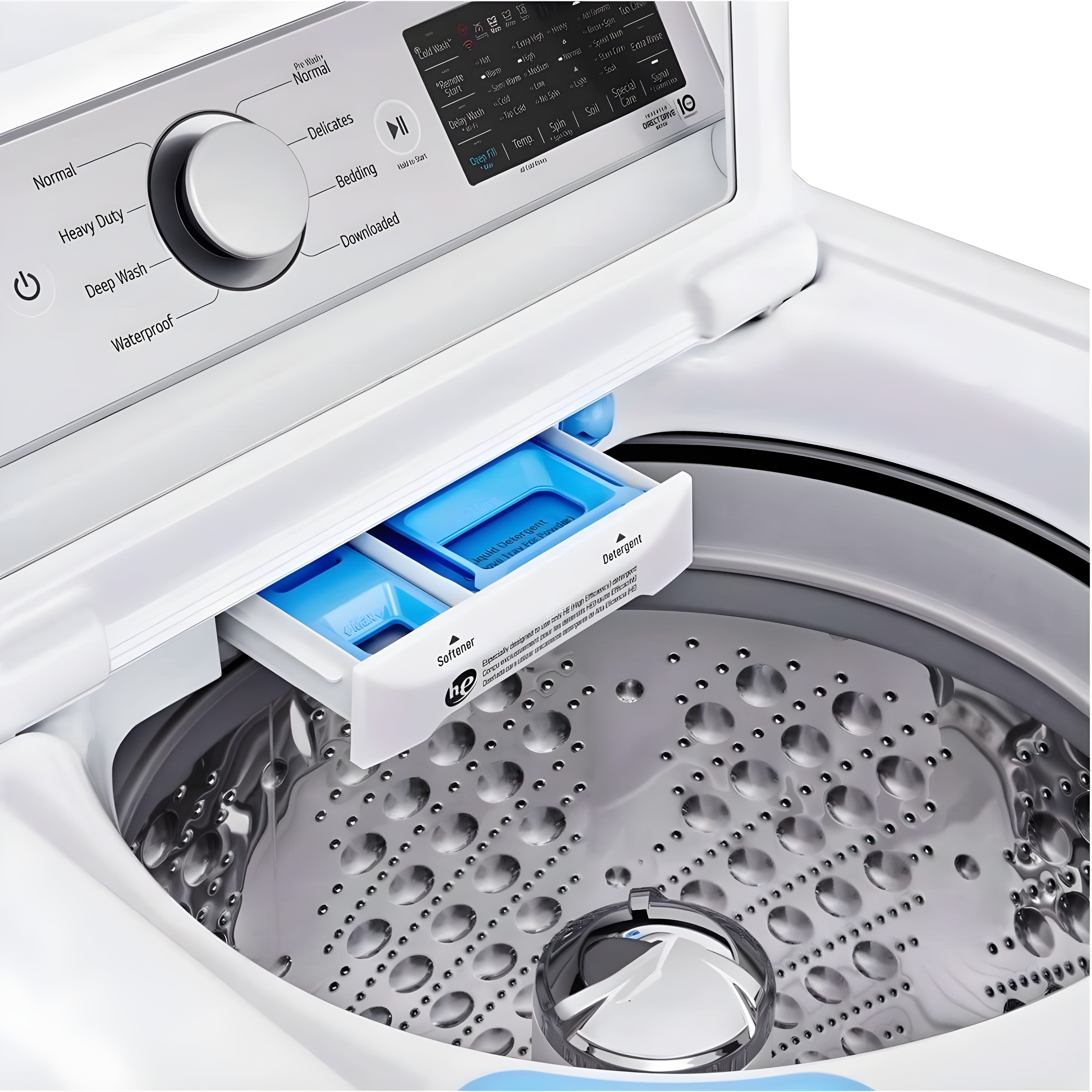 Q: What makes the LG 5.3-Cu. Ft. Mega Capacity Smart Wi-Fi Enabled Top Load Washer (WT7405CW) a great choice?