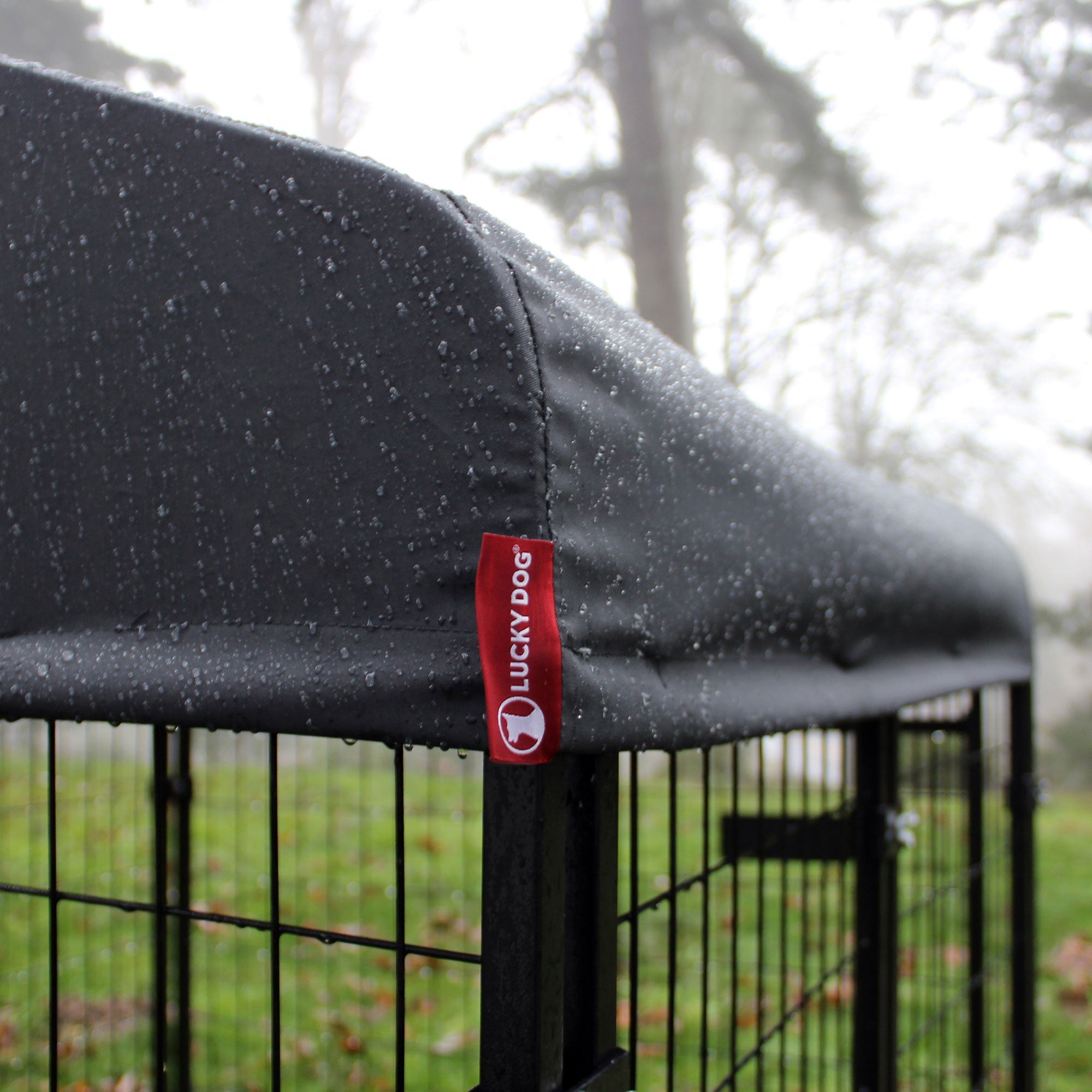 An all-steel frame features a powder-coat finish that delivers a strong and protected setting for your animal. The waterproof polyester cover offers UPF 50-plus protection and is designed for ultimate comfort. Featuring a premium style that will compliment any yard, the cover includes hidden hook and loop attachments.
